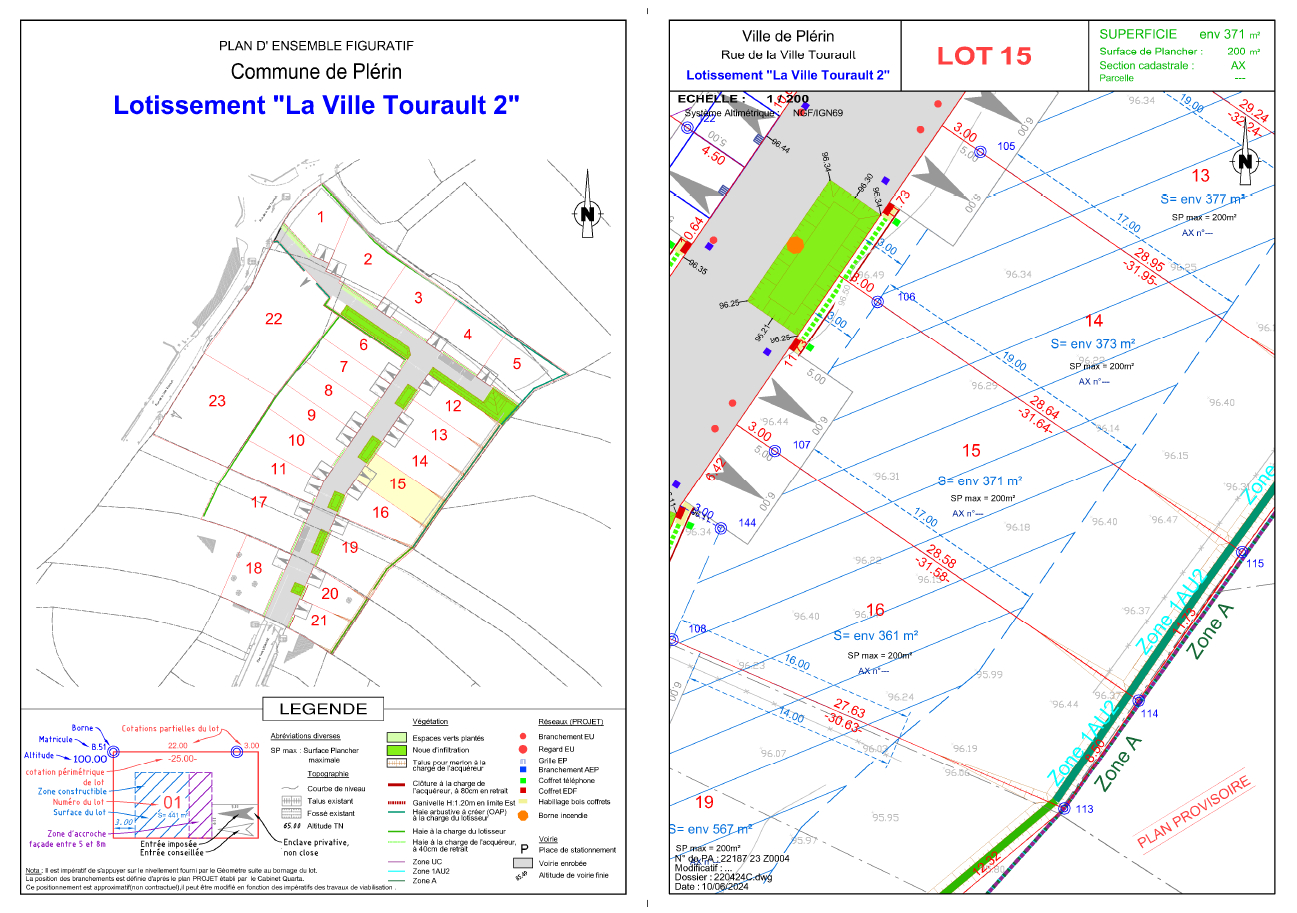 ACCES CONSEIL IMMOBILIER vous présente ce terrain constructible viabilisé d'une surface de 371 m² situé dans un nouveau lotissement "LA VILLE TOURAULT 2" à PLERIN. LIBRE DE TOUT CONSTRUCTEUR Proche commerces et écoles (4.80 % honoraires TTC à la charge de l'acquéreur.)