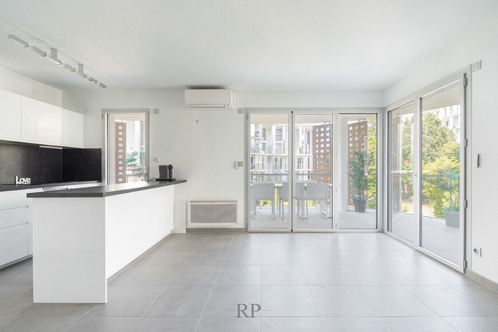 Au sein d'une copropriété à l'architecture singulière édifiée en 2020, découvrez un appartement de type 2, potentiellement transformable en type 3, de 55m2 avec sa terrasse de 31m2. Il se compose d'une entrée, d'une pièce à vivre avec grandes baies vitrées, d'une cuisine ouverte, aménagée et équipée, d'une chambre et d'une salle d'eau. L'appartement est en bon état, équipé de climatisation réversible. Au calme absolu d'une résidence alliant modernité et verdure, avec gardien. Un double box pourra être proposé en sus. Copropriété de 802 lots - dont 360 lots habitation. Charges annuelles : 1800 euros. Grégory Doukhan (EI) Agent Commercial - Numéro RSAC : - .