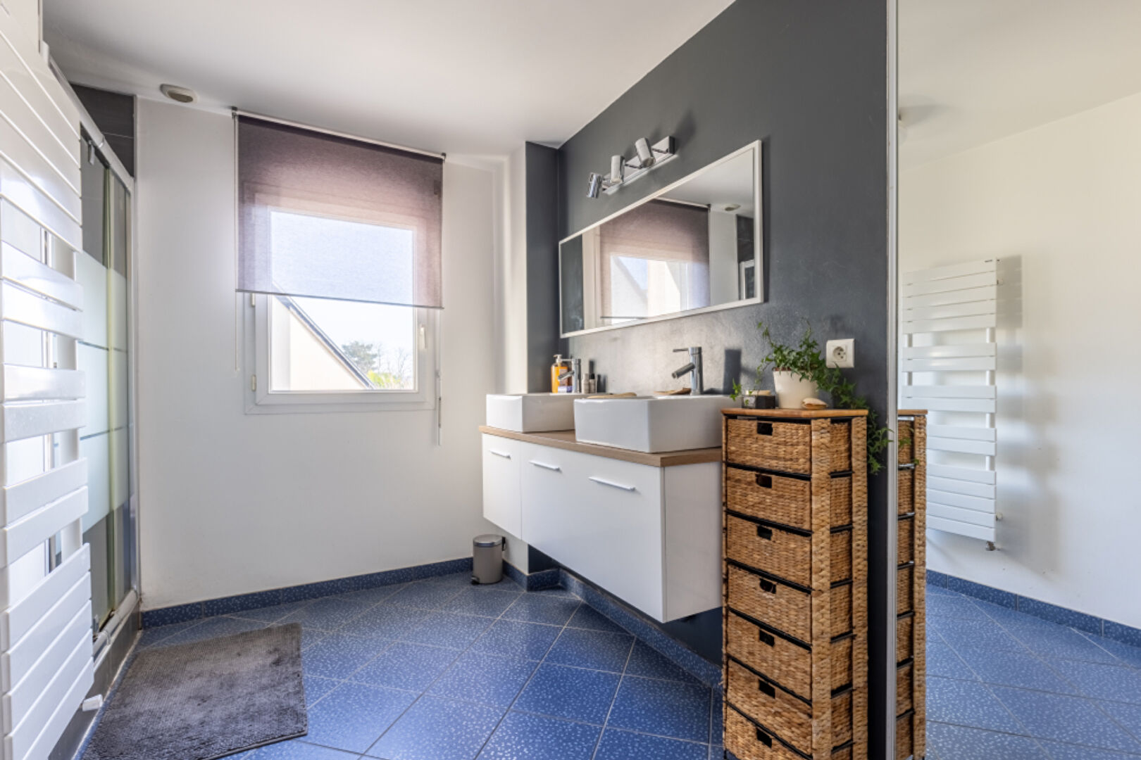VENDU CHEZ CABINET BARTH IMMOBILIER - MAISON de 200m2 - MONTGERMONT Retrouvez nos biens en vidéo sur notre compte Instagram : barth_immobilier Maison familiale de 205m² à Montgermont - Lumineuse, spacieuse et idéale pour toute la famille ! A quelques minutes du centre de Montgermont, de ses commerces et écoles, maison moderne et lumineuse située au calme dans une impasse. Avec ses 205m² habitables, elle vous offre des espaces généreux et fonctionnels. Dès l'entrée, un hall spacieux de 12m² vous mène à une vaste pièce de vie d'environ 60m², baignée de lumière grâce à ses grandes baies vitrées. Le salon/séjour, prolongé par une terrasse orientée plein sud, est un véritable espace de convivialité. La cuisine ouverte, avec son îlot central, est à la fois pratique et agréable, et s'accompagne d'une arrière-cuisine et d'un cellier. La suite parentale, située au rez-de-chaussée, vous offre un véritable havre de paix avec sa salle d'eau privative et son dressing. Un WC avec lave-mains complète ce niveau. A l'étage, une grande mezzanine de 24m² dessert 4 chambres spacieuses, toutes avec placard. Vous y trouverez également un bureau, une salle de bains et un WC séparé. Les atouts de cette maison : un parquet en chêne dans la pièce de vie, des peintures neuves, du chauffage au sol dans le séjour, une aspiration centralisée, de nombreux rangements, ainsi qu'un grand garage de 30m² attenant à la maison, offrant des espaces de rangement supplémentaires. A l'extérieur, un joli jardin ensoleillé de 500m² avec terrasse. De plus, deux places de stationnement devant la maison viennent compléter l'ensemble. Référence : 1001. (3.50 % honoraires TTC à la charge de l'acquéreur.) Tom MEREL (EI) Agent Commercial - Numéro RSAC : 938 954 237 - RENNES.