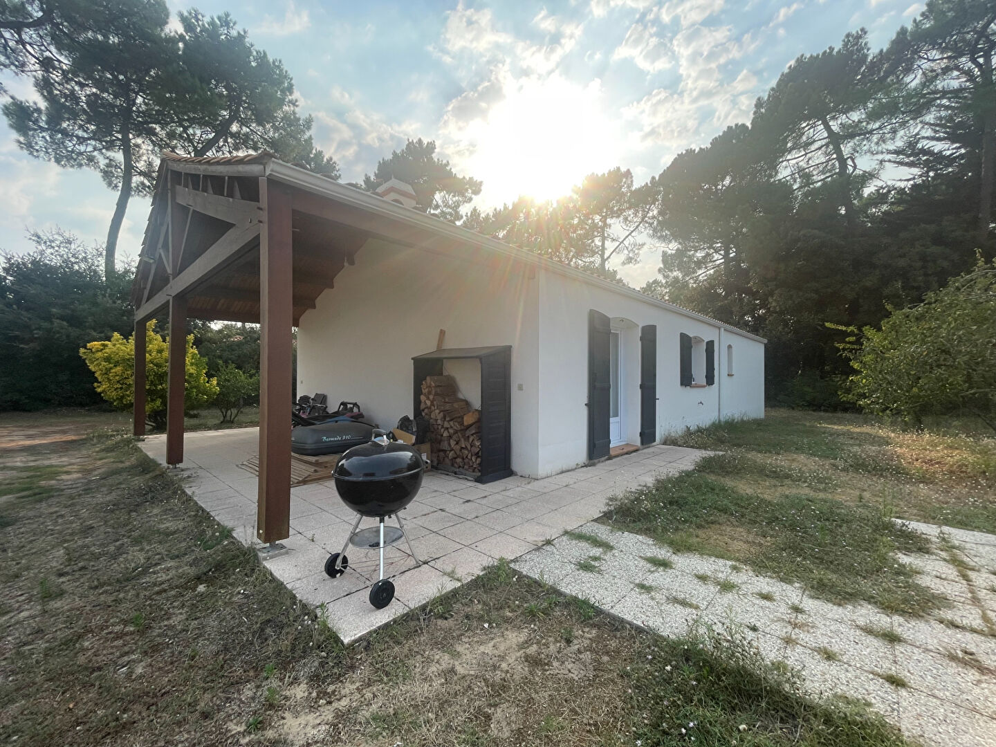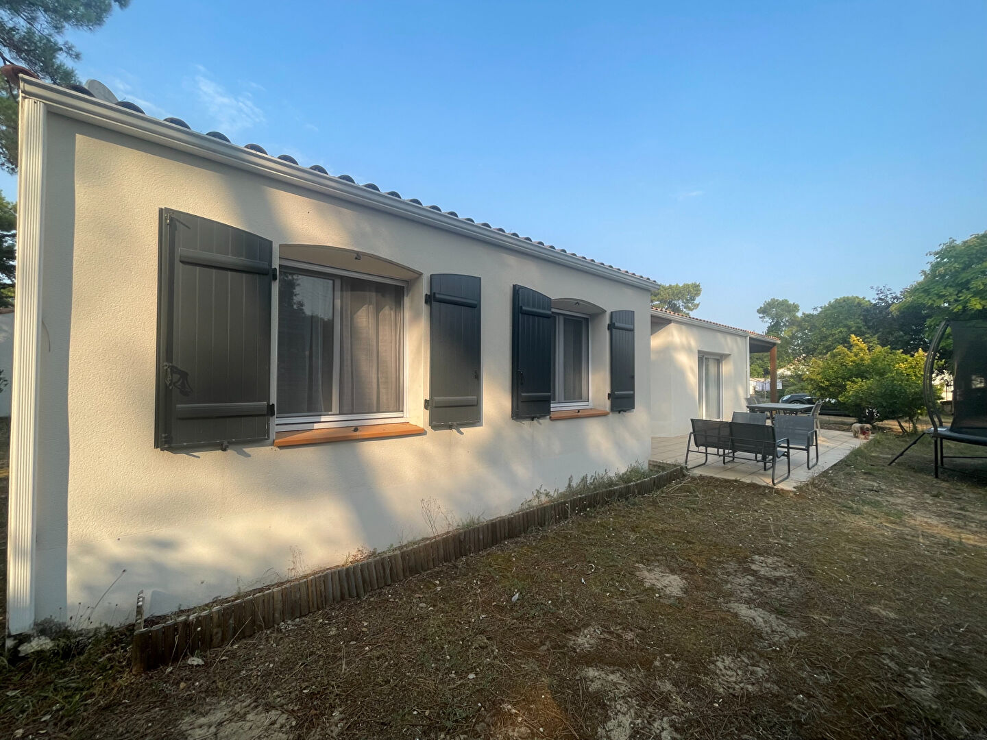 L'agence du Littoral vous présente : Maison de plain-pied située en lisière de forêt domaniale. Cette maison est composée : hall d'entrée donnant sur une grande pièce de vie traversante avec une cheminée et une cuisine ouverte aménagée et équipée donnant sur une terrasse, une buanderie, un dégagement avec placards, un wc indépendant, une salle de bains et trois chambres. Attenant à la maison un préau de 24 m². Le tout sur un terrain entièrement clos de 1002 m² avec un cabanon en bois. Situation : piste cyclable, 100 mètres de la forêt, 2.5 km de la plage des Demoiselles et 2 km des commerces. A visiter très vite !! réf 403 Agence du Littoral - Agence immobilière à votre service sur le secteur de Saint-Jean-de-Monts et ses alentours. Contactez-nous au 02.51.59.17.70. (5.00 % honoraires TTC à la charge de l'acquéreur.)