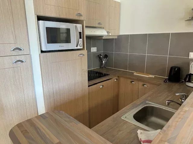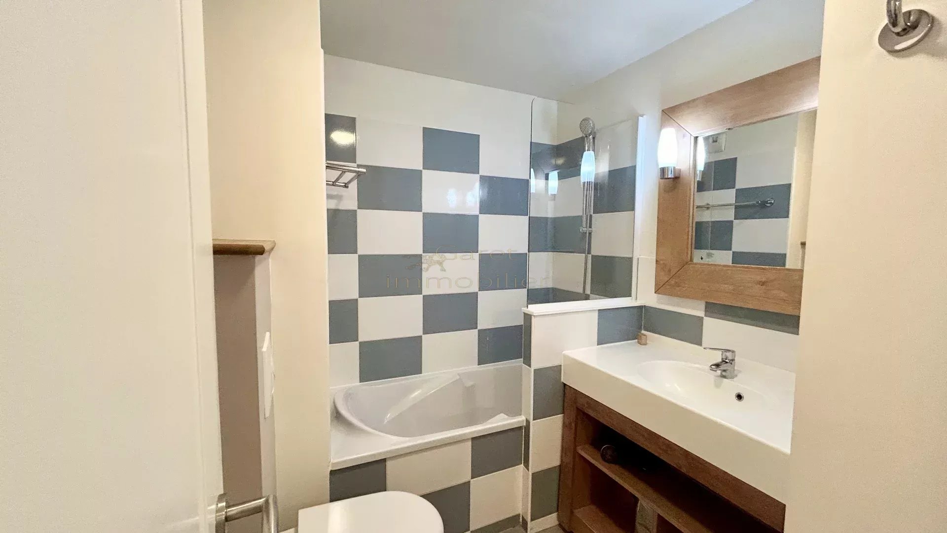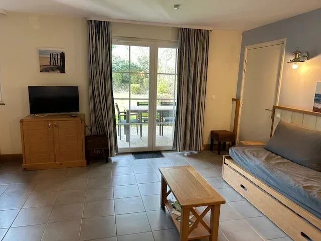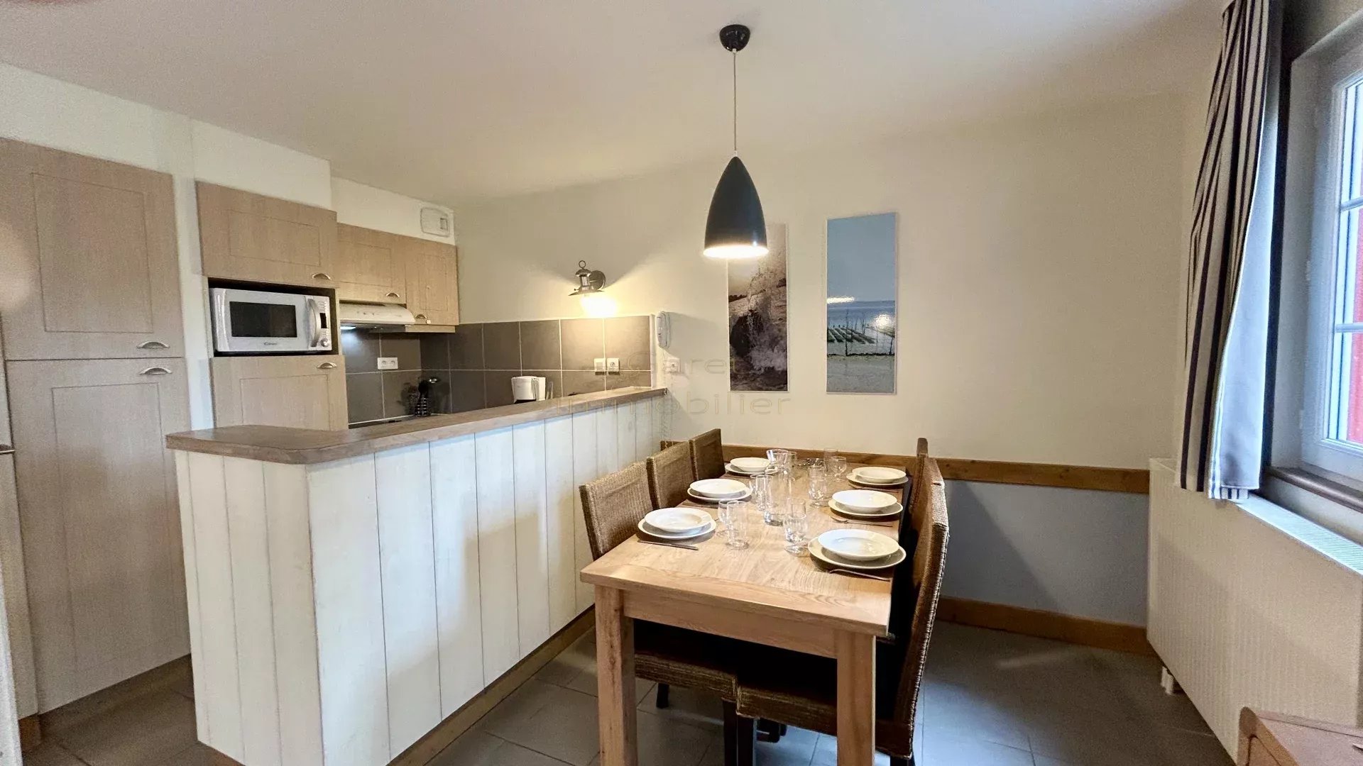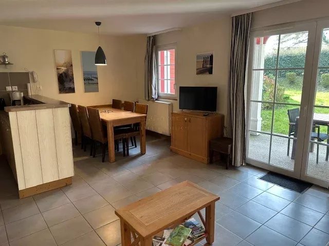 Appartement dans le domaine de belle dune, comprenant : un séjour avec cuisine ouverte donnant accès sur une terrasse en Rez de jardin, 2 chambres, une salle de bain avec toilette, une salle de douche, un toilette et un parking. Résidence sécurisée et entretenue