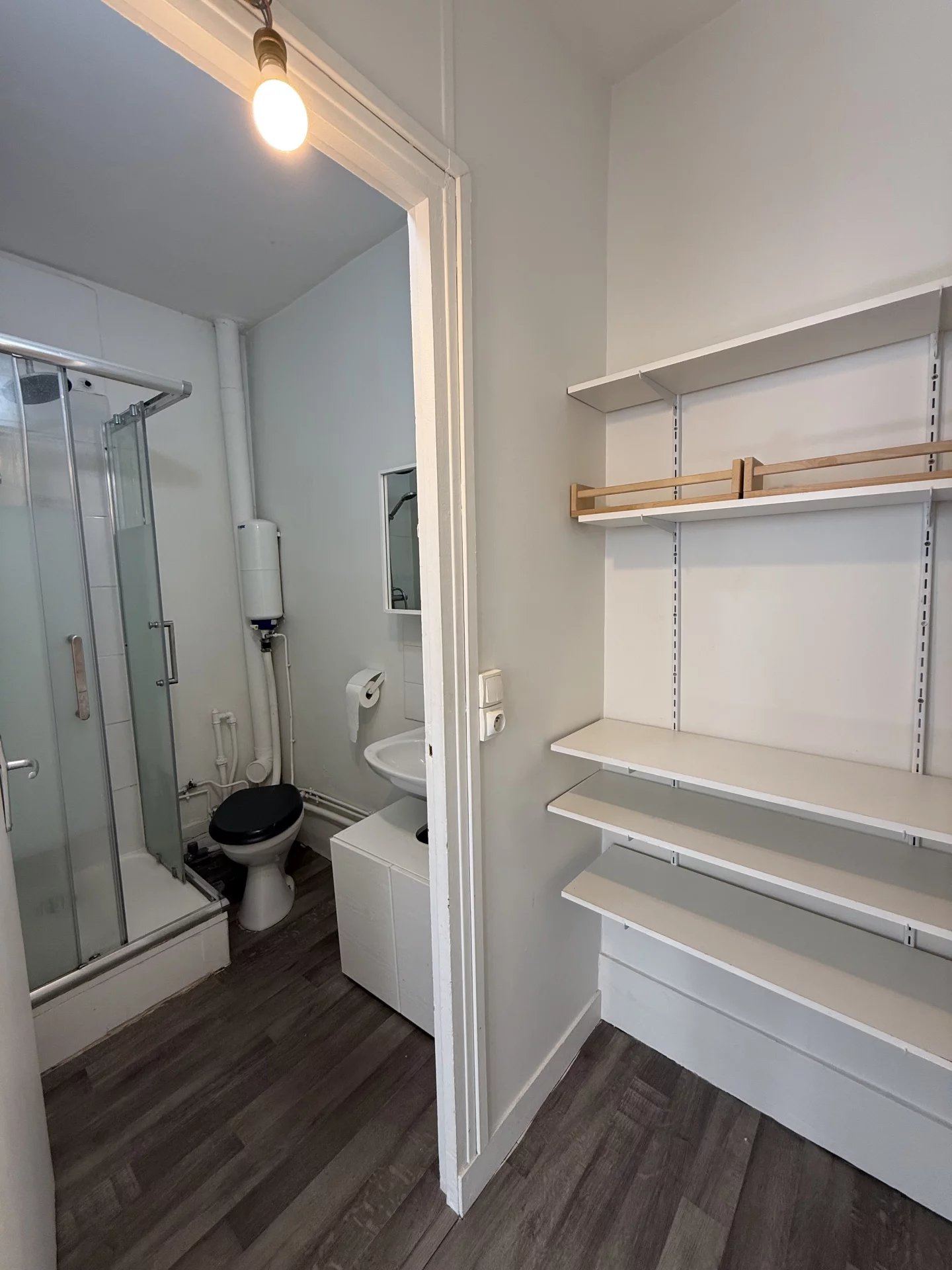 Dans un immeuble 1930, au 2ème étage sur cour très calme, lumineux, studio de 27,28 m² comprenant une pièce principale, une cuisine, une salle d'eau avec wc, un dressing. Bon état général. Chauffage et eau chaude compris dans le loyer. A 6 mns du métro Mairie de Montrouge.