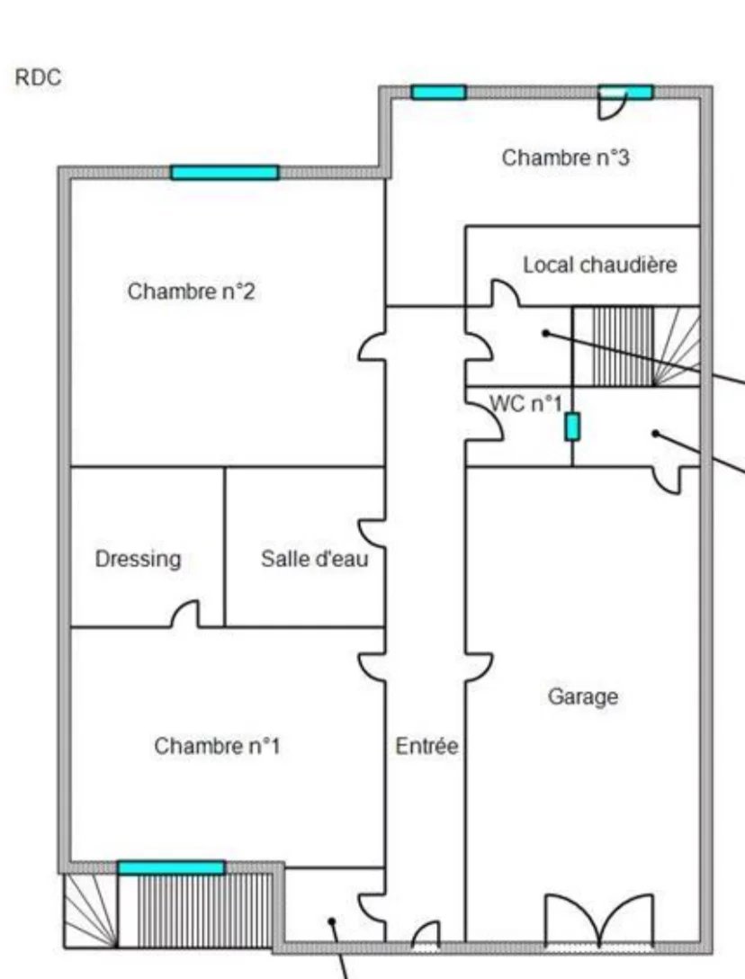 Le rdc comprend 3 chambres, une sde et un garage.