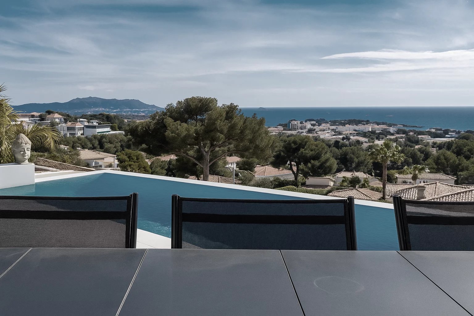 🏡 Nicolson présente une villa contemporaine construite en 2021, en pleine vue mer panoramique, exposée plein sud, à Bandol.