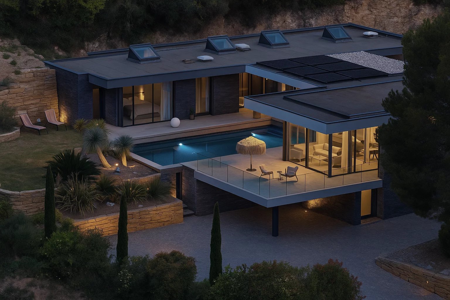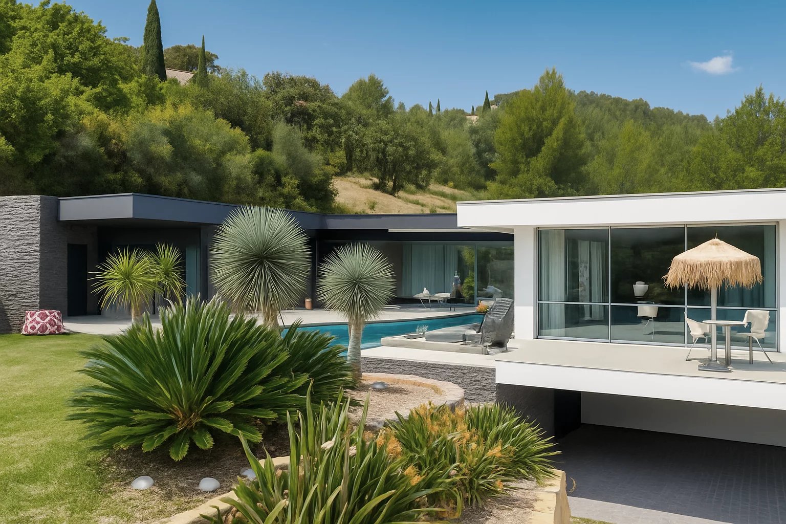 Nicolson Realty présente une villa remarquable nichée dans les vignes à quelques enjambées du centre du village de Cassis. Surface habitable environ 300 M2 Garage 2 voitures > 50 M2 Nombreux espaces de stockage et rangements Piscine Terrain 3000 M2 Bénéficiant d'une localisation recherchée avec une vue panoramique sur les vignes, la propriété se fait discrète tout en bénéficiant d'une position dominante et ensoleillée. La construction contemporaine date de 2012, en forme de "U" et accueille un patio central, lieu d'implantation de la piscine et d'une terrasse semi couverte ( couverture bioclimatique avec ouverture électrique ), à l'abris de tous les vents. L'ensemble des pièces sont baignées de lumière grâce aux grandes baies vitrées pleine hauteur, offrant au séjour et à la salle à manger un panorama exceptionnel. La suite parentale de 45 M2 comprend dressing et salle de bains + douche. Une seconde chambre implantée à l'opposé bénéficie d'une terrasse et d'une salle de douche. Elle pourra servir également de bureau et bénéficie d'un accès indépendant. Les deux autres chambres de l'étage se partagent la dernière salle de bains / douche. La cuisine est ouverte et dispose d'un célier en arrière plan. Au même niveau un espace de stockage fermé permet de ranger les salons de jardin. La vie de plain pieds est rendue possible grâce à l'ascenseur PMR qui relie la partie inférieure de la maison ou se situent les 2 garages fermés, les espaces de stationnement couverts, l'atelier et l'espace de stockage/cave, et enfin la 5ème et dernière chambre, à vivre comme un appartement indépendant, d'une surface de plus de 45 M2. Cet espace pourrait faire l'objet d'un usage en salle de sport ou salon cinéma ou studio indépendant. Propriété à découvrir dans un secteur de Cassis qui offre tous les avantages du calme en toute saison, de l'accès facile, et d'une distance atteignable à pieds ou à vélo du village. Propriété dont les extérieurs sont faciles à entretenir. Contact : Antoine VERDET +33612691215