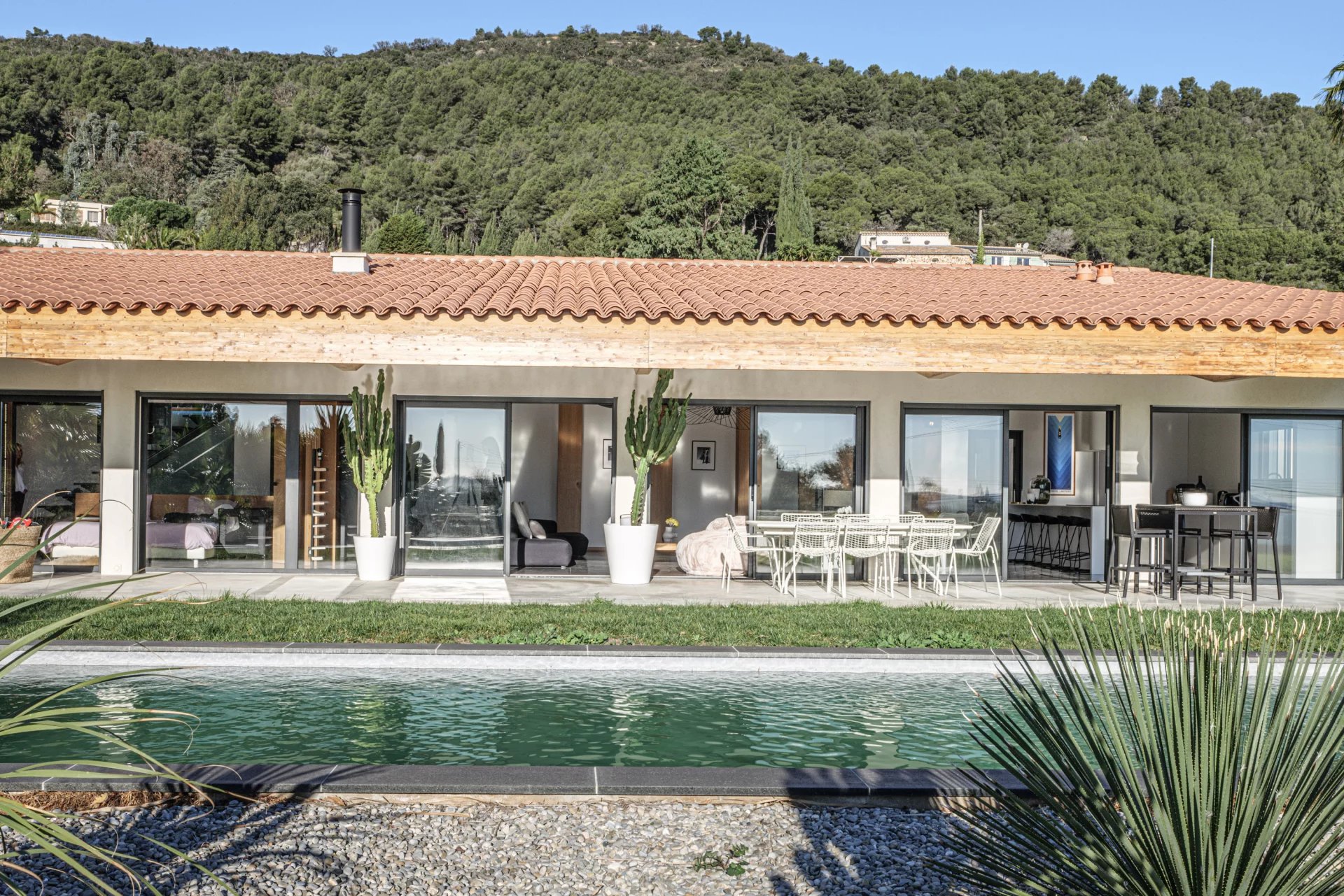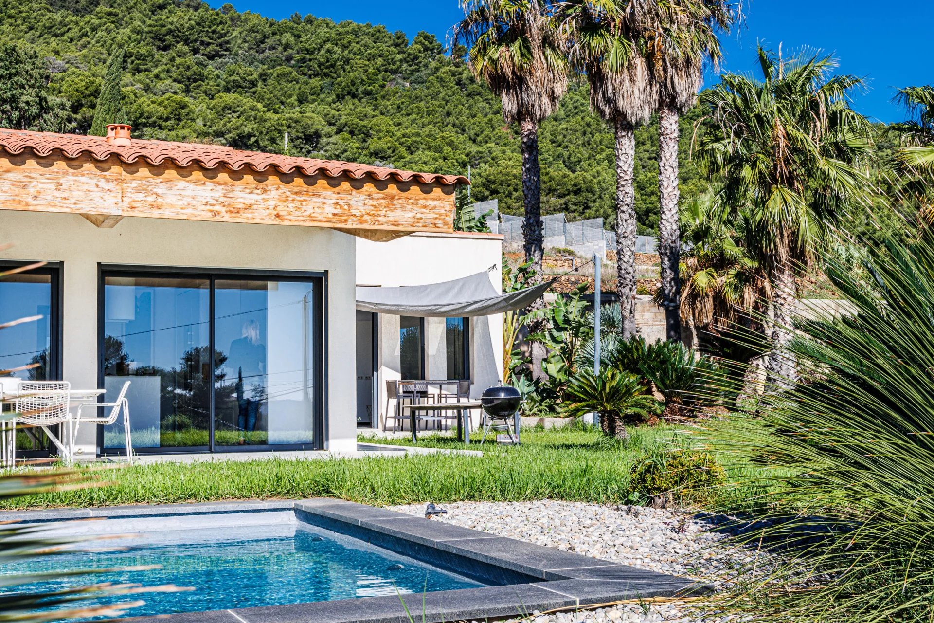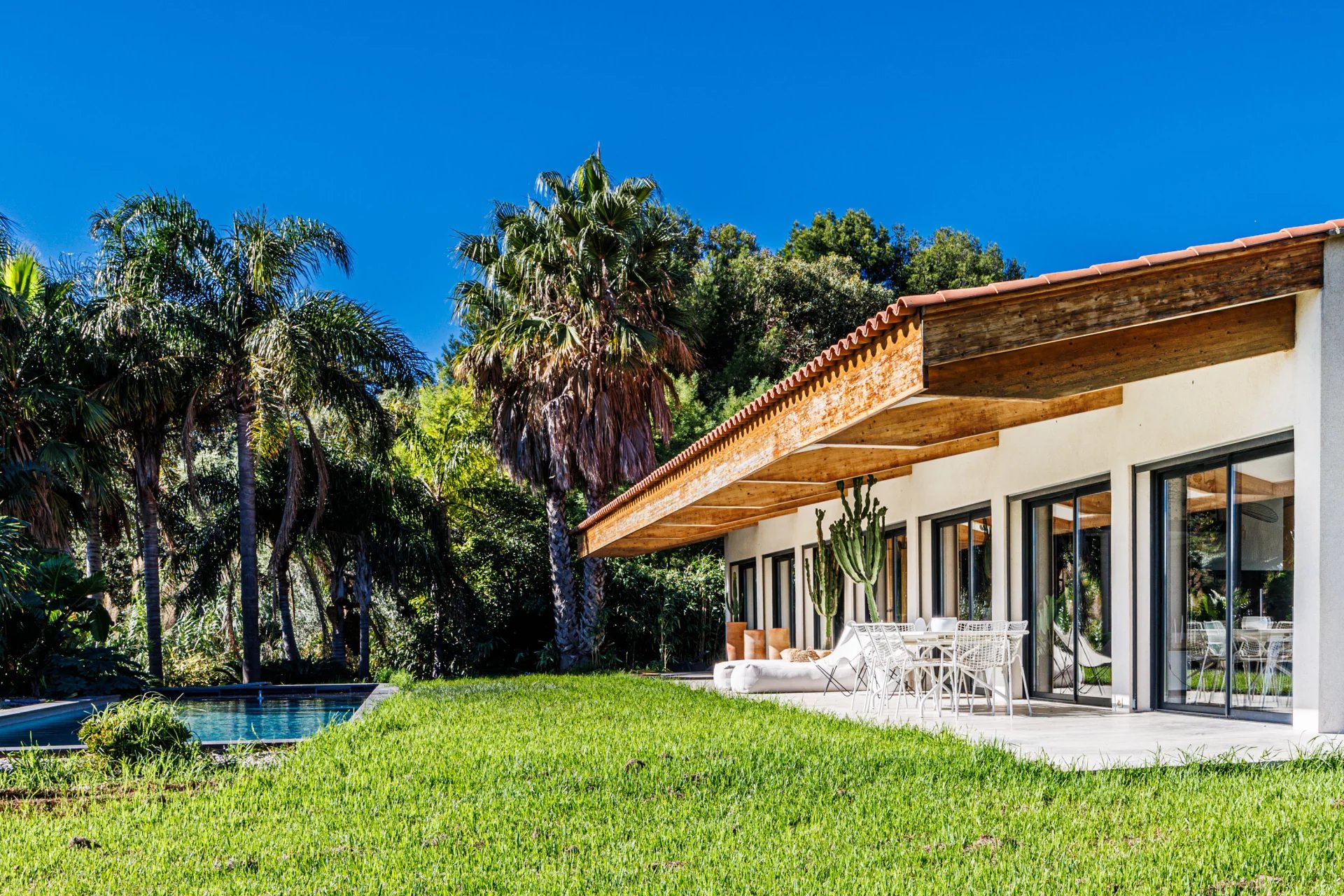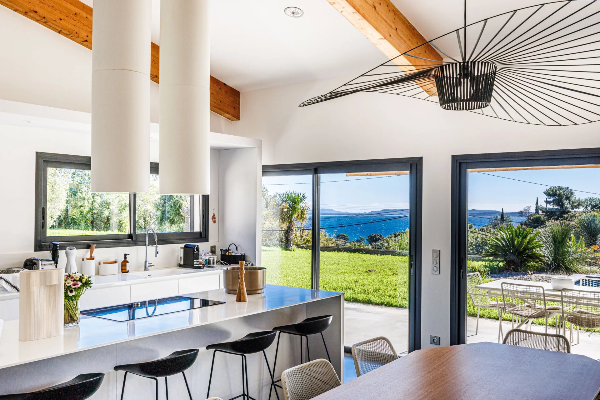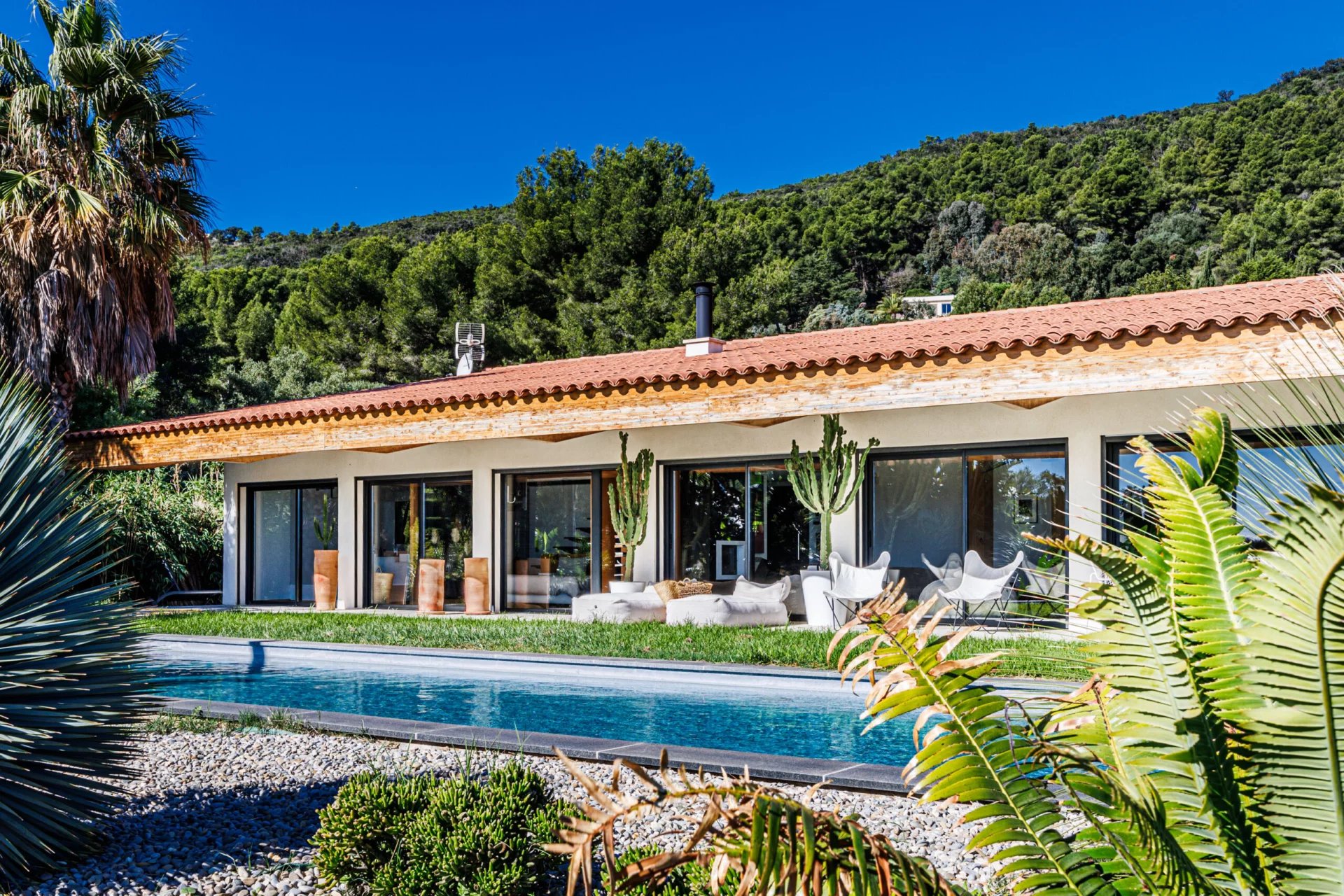 Nicolson Realty a le plaisir de présenter en exclusivité à Carqueiranne une villa récente d'environ 200 M2, avec vue mer. La maison est localisée au Canebas, sur le chemin du Bau rouge avec une vue mer. La construction est récente dans un style purement "LOFT". La maison principale accueille une grande pièce de vie avec cuisine ouverte, et une chambre en enfilade avec son dressing, salle de bains, tout ceci face à la piscine et la vue mer. La seconde maison est également composée d'un séjour ouvert sur la cuisine, d'une chambre et sa salle d'eau. Les deux maisons sont habitables indépendamment l'une de l'autre tout comme elles peuvent être facilement réunies. Notre avis : Une vie de plain pieds à moins de 15 minutes à pieds et 5 minutes en vélo de la première plage et du village, ce sont déjâ des privilèges rares sur cette partie du littoral. La commune de Carqueiranne est prisée, le quartier du Bau Rouge a conservé son authenticité. Une maison à découvrir. Contact Antoine VERDET + 33612691215