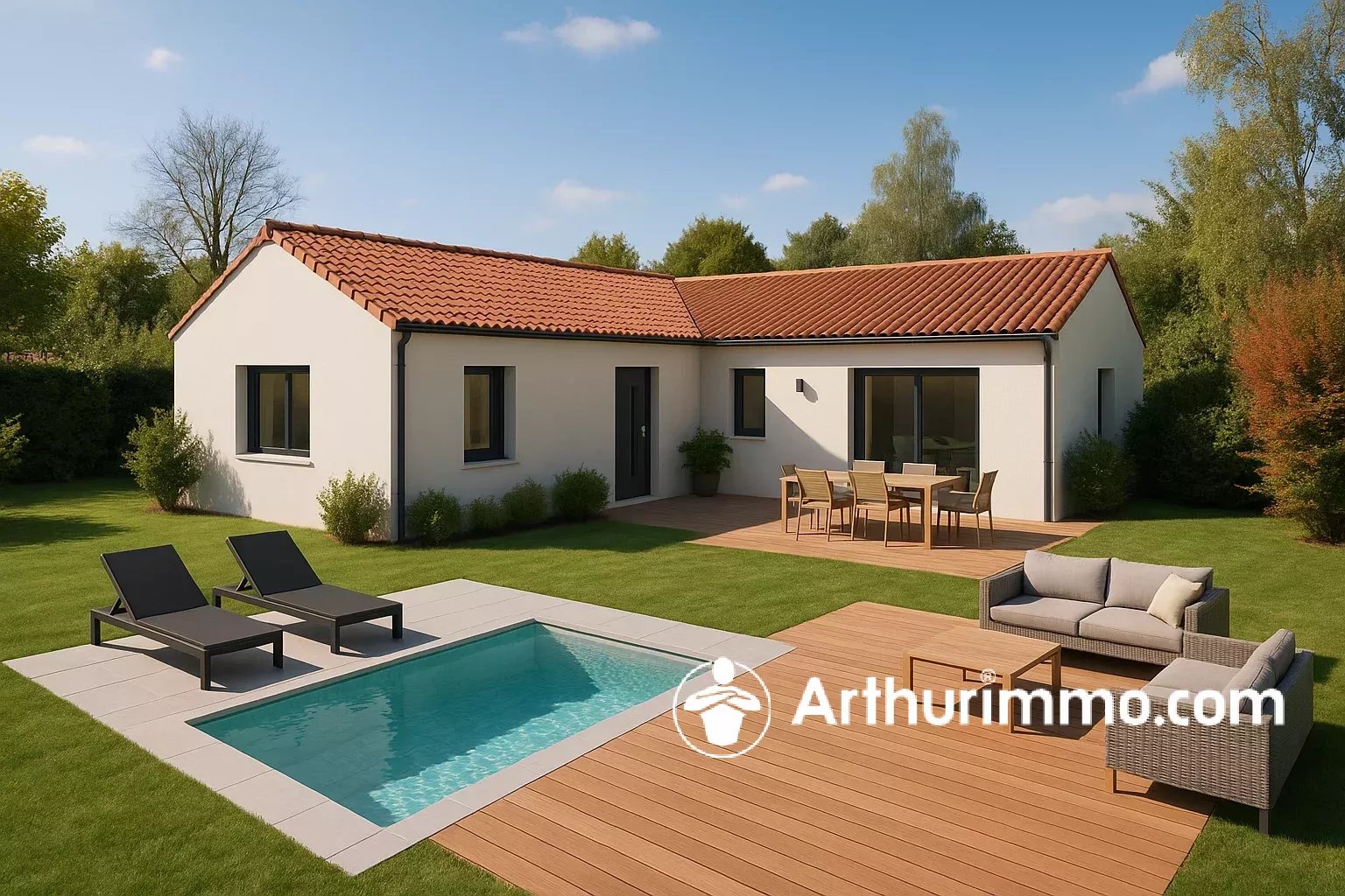 Arthurimmo.com Belfort vous propose ce superbe terrain constructible totalement plat de 10,79 ares au calme , à la campagne, avec vue dégagée sur vergers et champs. Viabilités en bord de parcelle. CU opérationnel et études de sols réalisés. Terrain au 3/4 clos. Commune en ANC donc assainissement individuel à prévoir. Image générée par l'IA pour une maison en forme de L avec terrasse et piscine