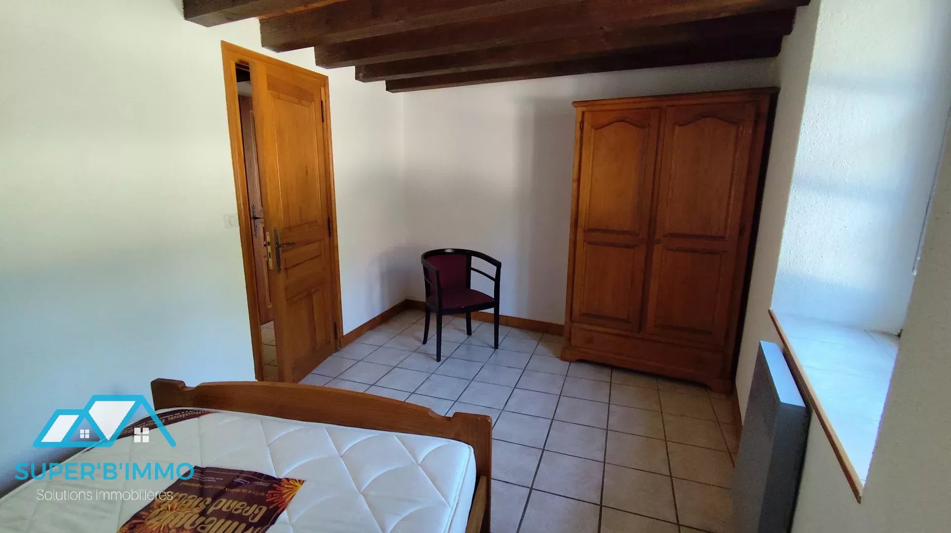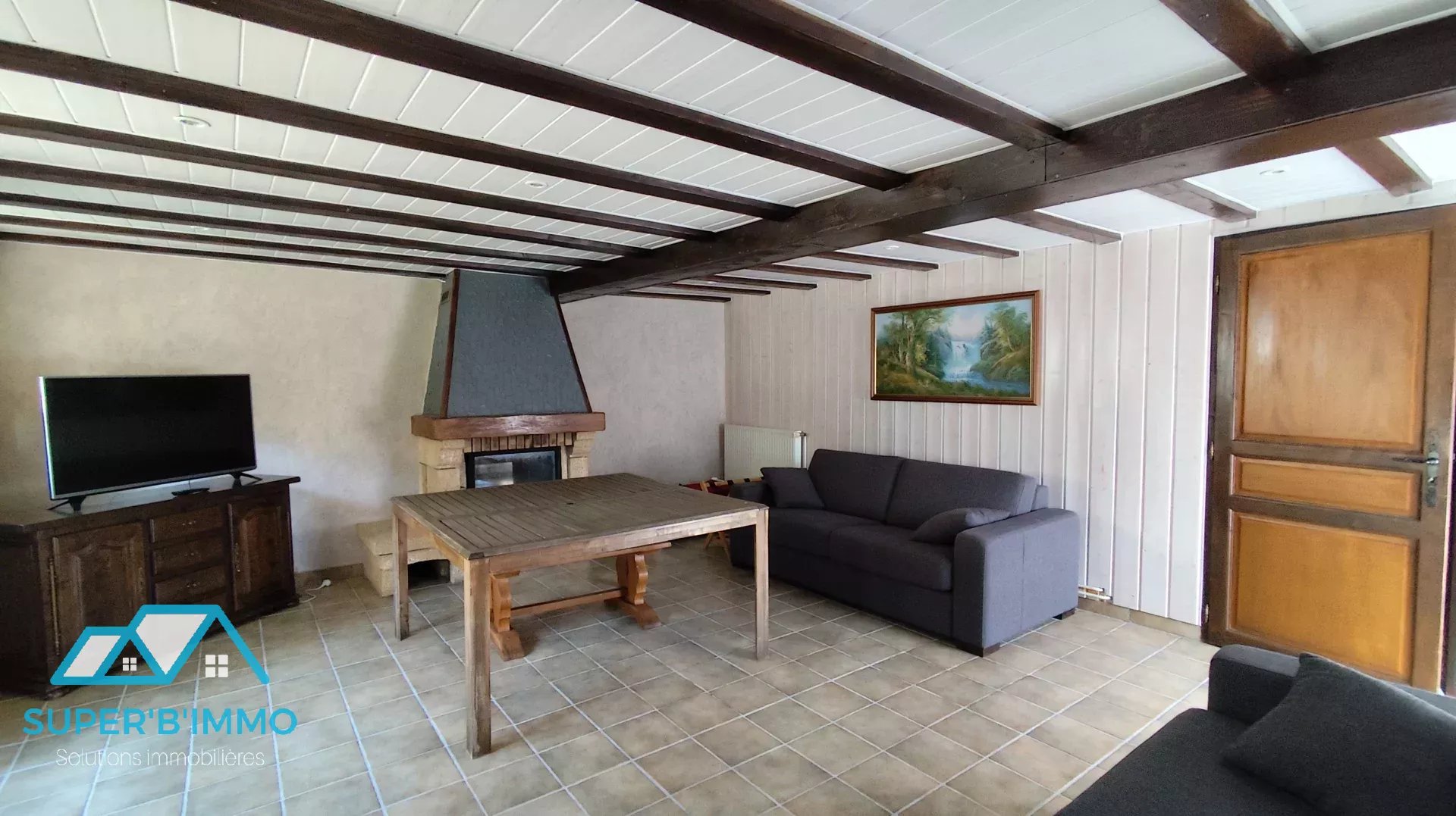 Le deuxième logement (indépendant) d'environ 110 m2 Est accessible depuis une cour commune avec le voisin est comprend une belle pièce de vie avec une cheminée en pierre qui donne accès une cuisine moderne aménagée dans une cave voutée.