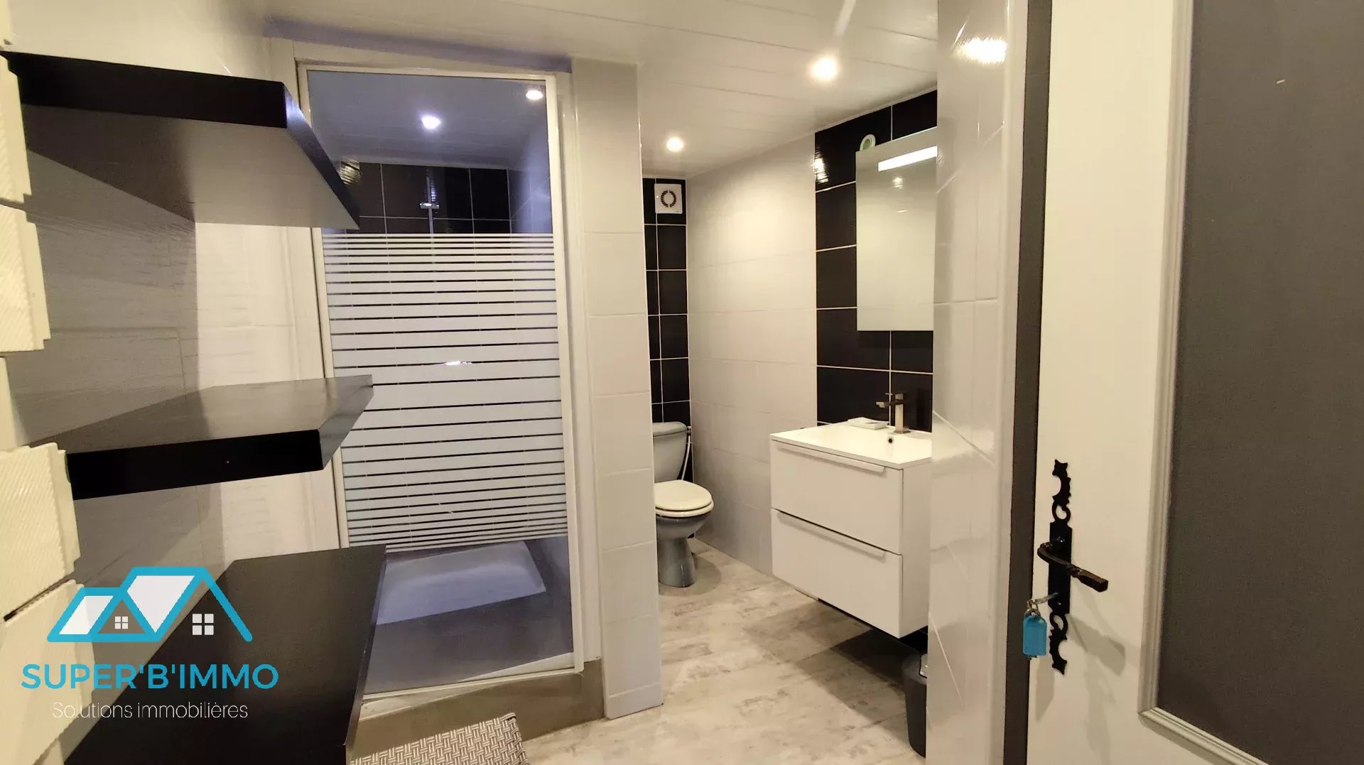 Depuis une terrasse couverte on accède au premier logement (environ 65 m2) avec une belle pièce de vie (cuisine équipée) , une chambre et une salle de douche/wc . Un escalier permet de rejoindre une mezzanine/ salon avec balcon et une grande chambre lumineuse.