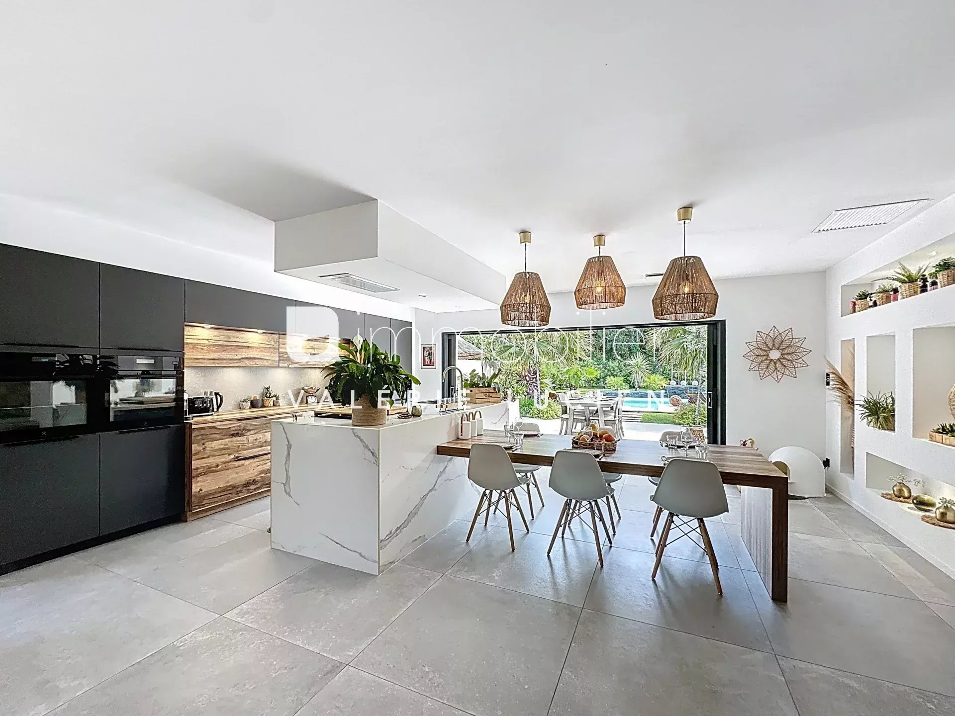 Notre agence immobilière de Saint-Rémy-de-Provence a sélectionné cette superbe maison contemporaine. À seulement 5 minutes de Saint-Rémy-de-Provence, au cœur du charmant village de Maillane, cette élégante maison contemporaine entièrement rénovée vous séduira dès le premier regard. Pensée pour offrir un cadre de vie en harmonie avec la nature environnante, elle conjugue avec subtilité modernité, confort et ouverture vers l’extérieur. Dès l’entrée, la lumière vous accompagne et vous guide vers une vaste pièce à vivre baignée de clarté : cuisine dinatoire haut de gamme ouverte sur un salon chaleureux, le tout donnant sur une grande terrasse ensoleillée et un jardin paysager luxuriant. Un second salon plus intimiste offre un espace détente propice aux moments de calme. Au rez-de-chaussée, deux belles chambres se partagent une salle d’eau fonctionnelle avec WC. À l’étage, l’espace parental offre une belle suite avec dressing, salle d’eau, WC séparés et accès à une grande terrasse plein sud, à aménager selon vos envies. En complément, un appartement indépendant d’environ 35 m² avec son propre accès (et possibilité de communication avec la maison) accueille vos invités ou s’adapte à tout projet de vie. Il se compose d’un salon, d’une cuisine équipée, d’une chambre et d’une salle d’eau avec WC. Le jardin, entièrement clos et soigneusement végétalisé, accueille une piscine au sel avec fontaine, éclairage intégré, et offre une véritable oasis de tranquillité, sans vis-à-vis ni nuisances. Parmi les prestations : domotique, pompe à chaleur gainable, forage, arrosage automatique, alarme… Aucun travaux à prévoir, tout a été pensé pour un confort optimal, dans un cadre privilégié. Maison à vendre MAILLANE
