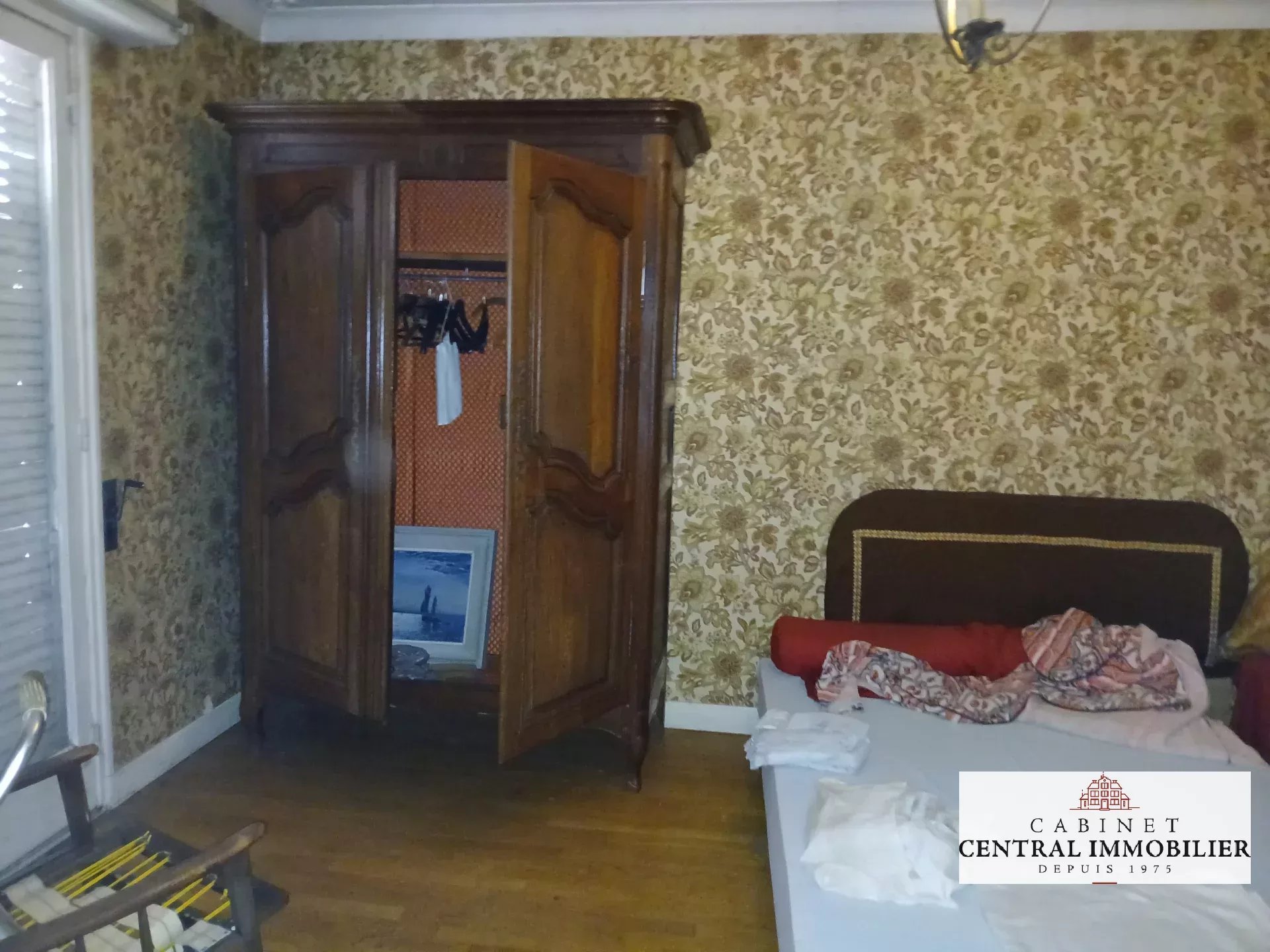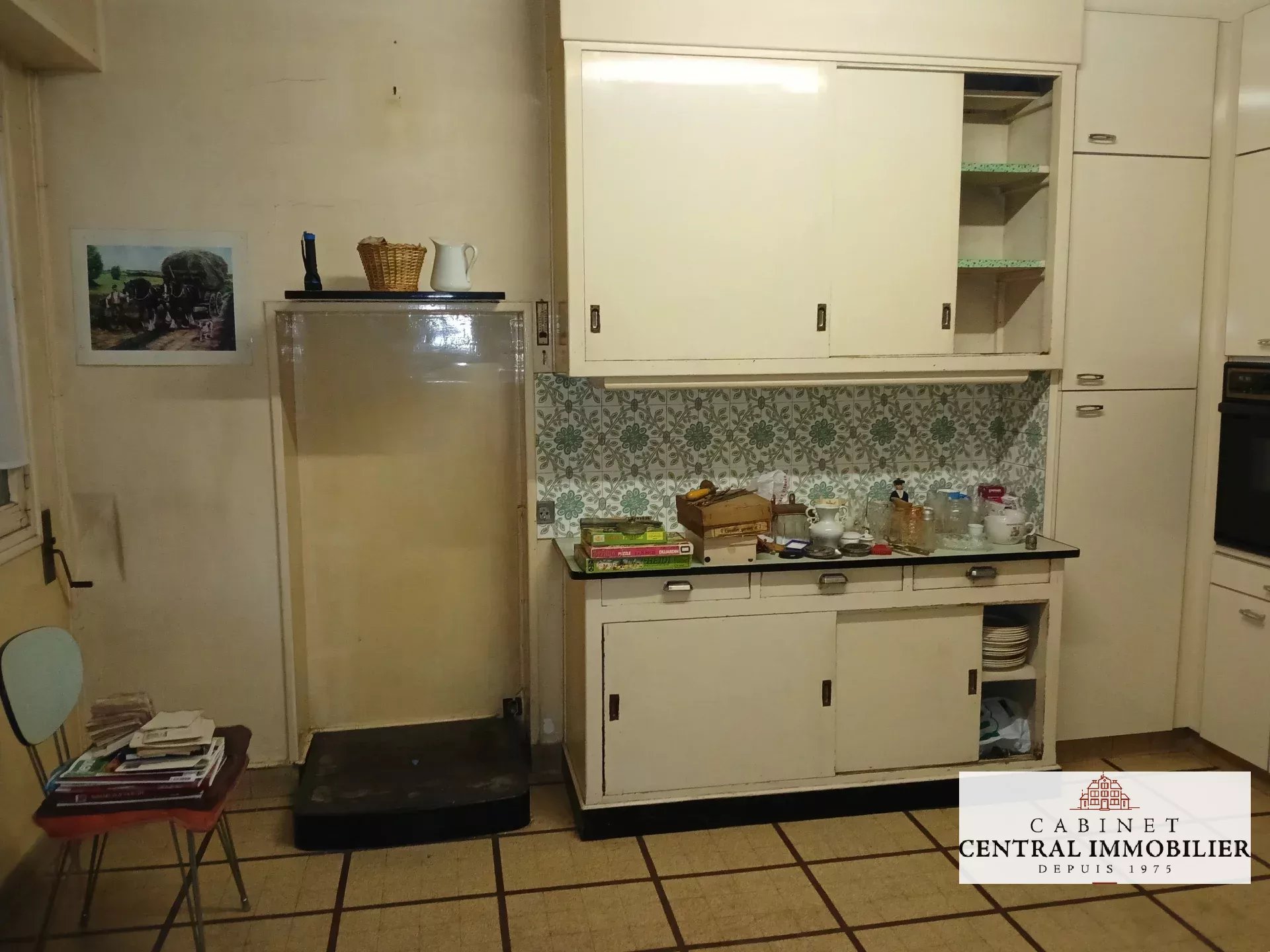 Maison comprenant : entrée carrelée, bureau de 8.50m² carrelé, chaufferie. À l'étage : palier carrelé, cuisine de 12.25m² carrelée, séjour de 14m² parqueté, wc carrelé. Au 2ème étage : palier parqueté, 2 chambres de 12.40m² et 13.40m² parquetées, petite pièce avec point d'eau. Au dernier étage : palier parqueté, 2 chambres de 11.75m² et 14m² parquetées, salle d'eau carrelée. Chauffage central fuel. Remise avec accès cave. Cour pavée. L'ensemble sur un terrain de 90m².