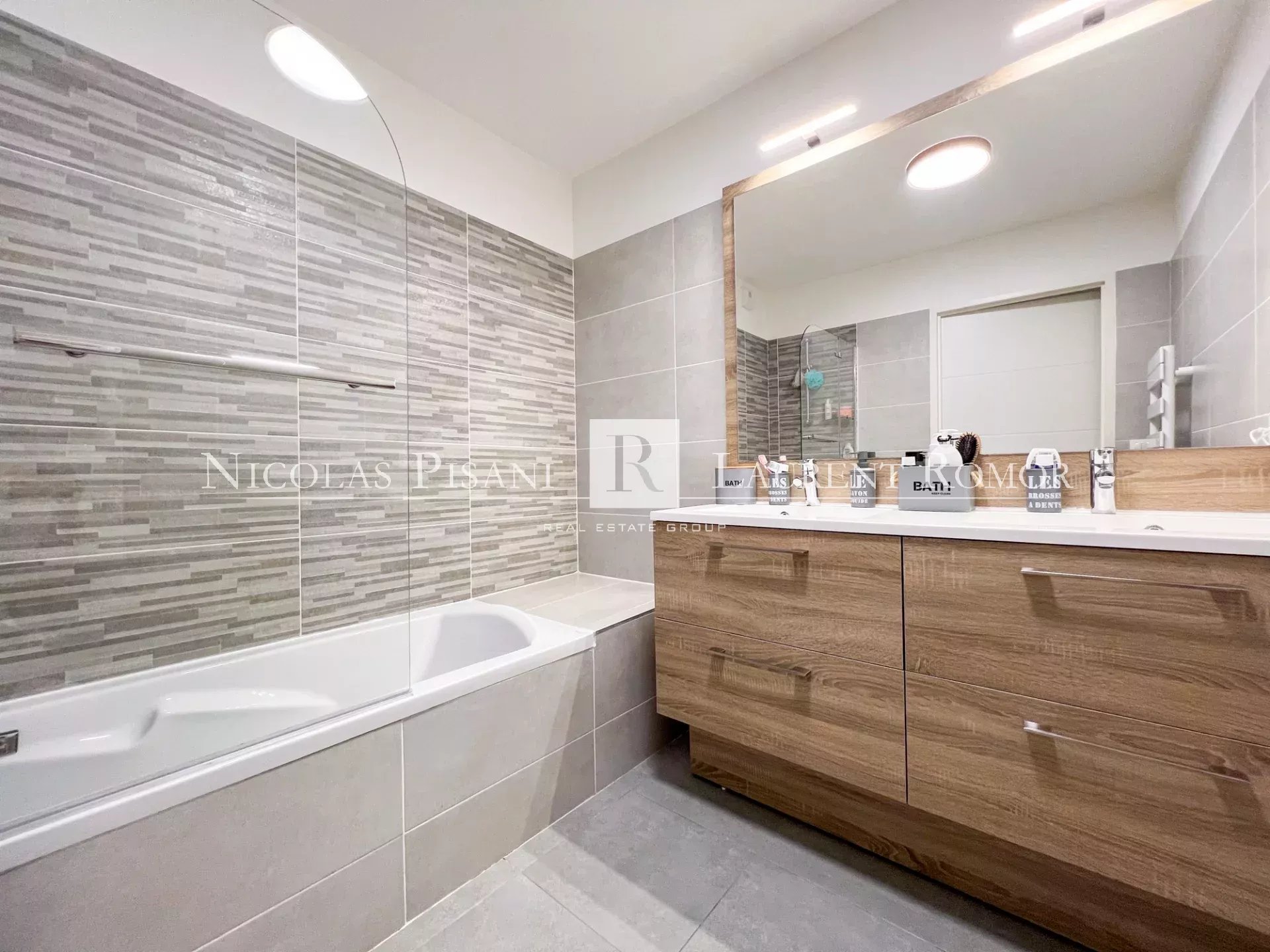 Situé dans un immeuble avec piscine et grand jardin paysager, bel appartement de type 3 pièces avec terrasse et jardin d'environ 50 m². Cet appartement d'une superficie de 61 m² se compose : Entrée, séjour et cuisine, 2 chambres, salle de bains, wc, terrasse et jardin, garage. Piscine en copropriété, accès pour personne handicapée, grand jardin paysager, calme, immeuble avec vue mer. Honoraires à la charge du vendeur.