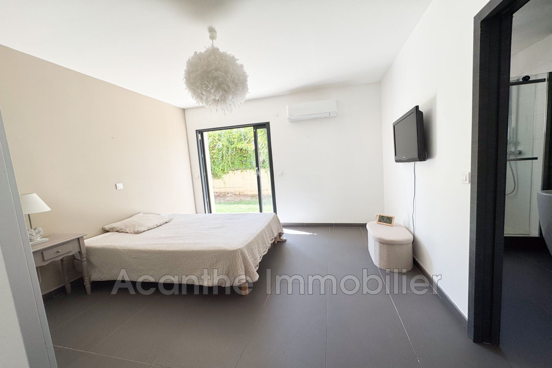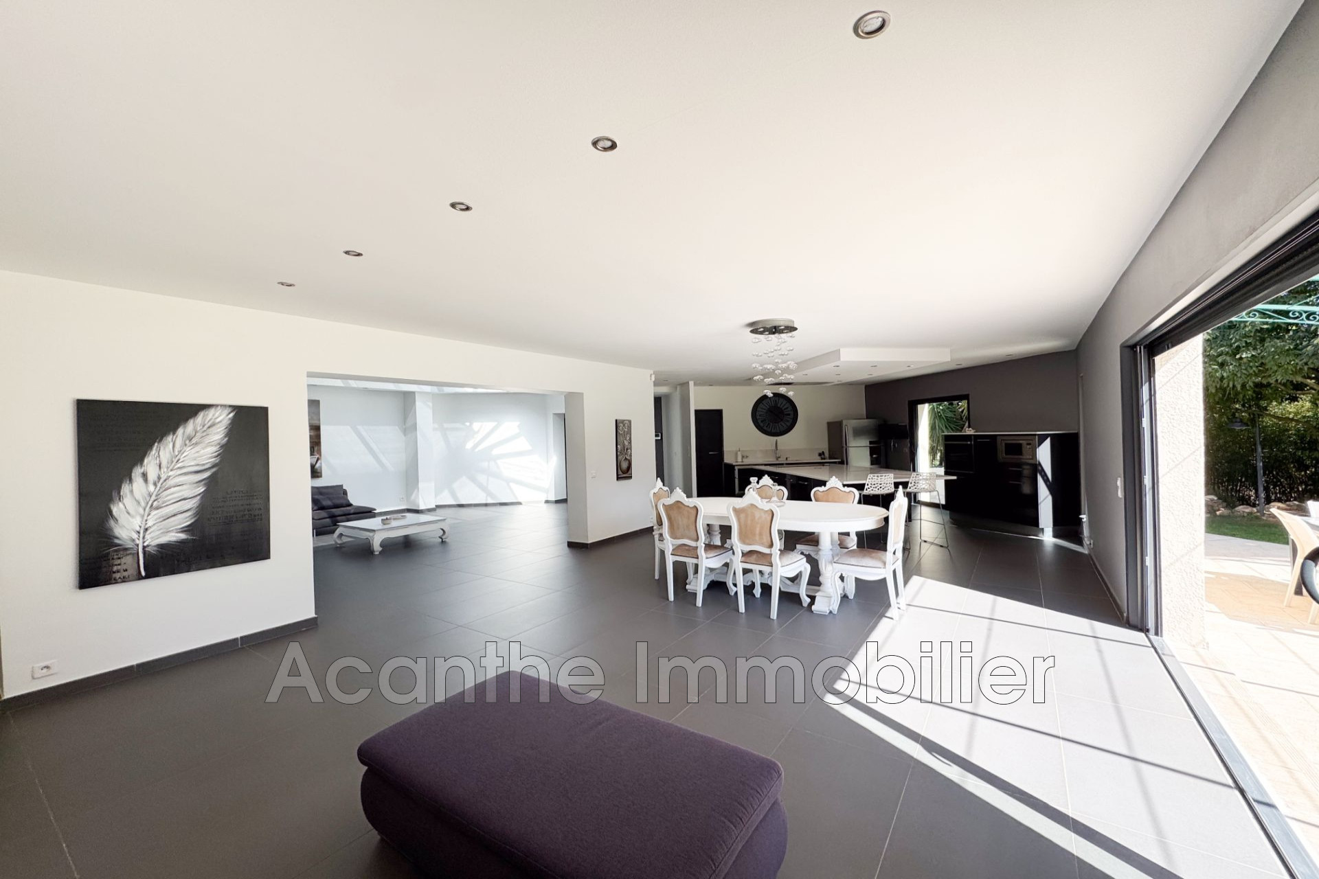 Élégante villa d'architecte de 220 m² avec dépendance de 34 m², nichée sur un parc arboré d'exception de 3 100 m². Entrez par un portail automatique, empruntez une allée bordée d'oliviers pour découvrir cette propriété raffinée, protégée par un écrin de verdure.