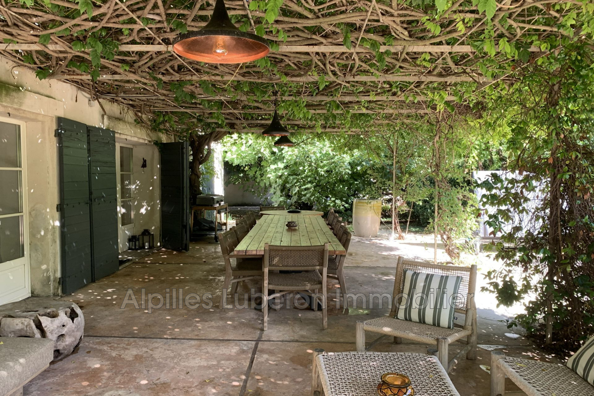 La terrasse qui court au sud du mas est délicieusement ombragée par une treille couverte d'une généreuse glycine et abrite un salon d'extérieur, une table qui peut accueillir 14 personnes et une plancha électrique.