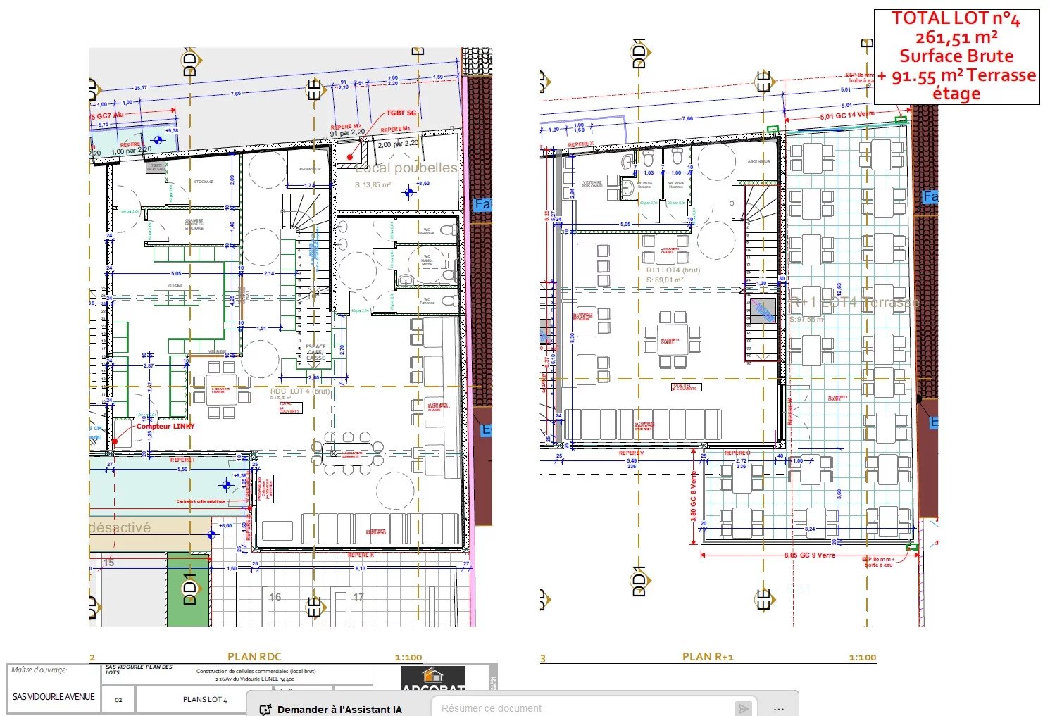 Superficie : 261m² (commerciale) + 91m² de terrasse