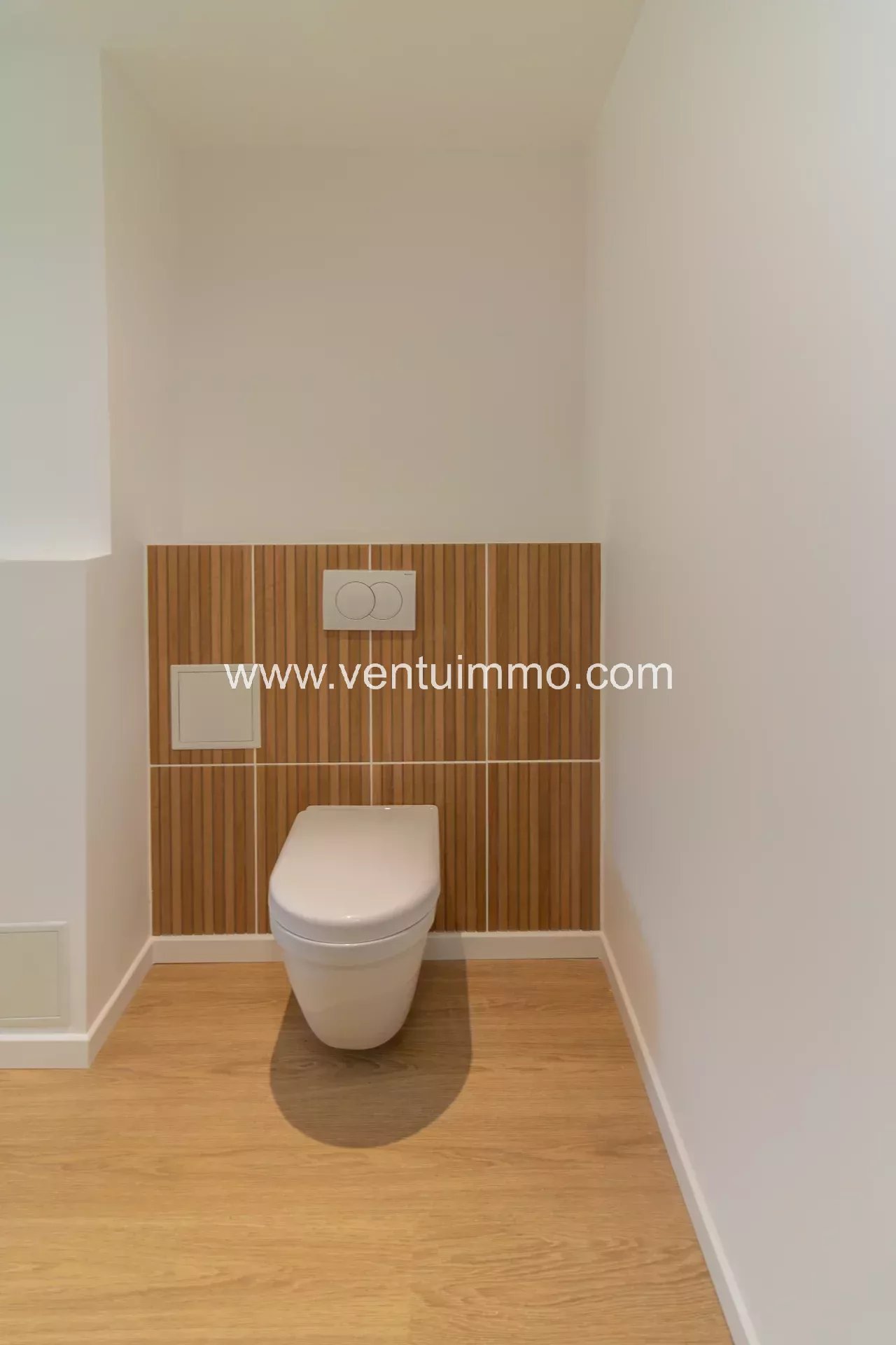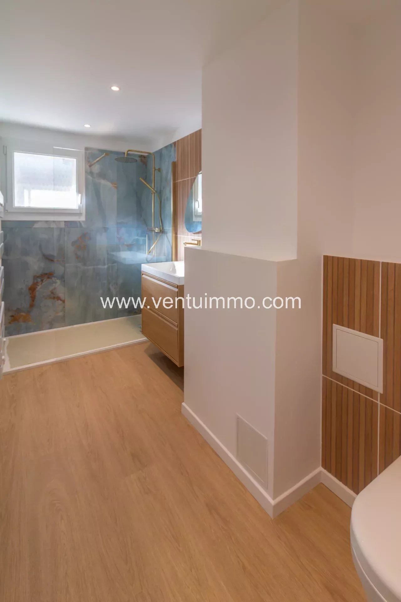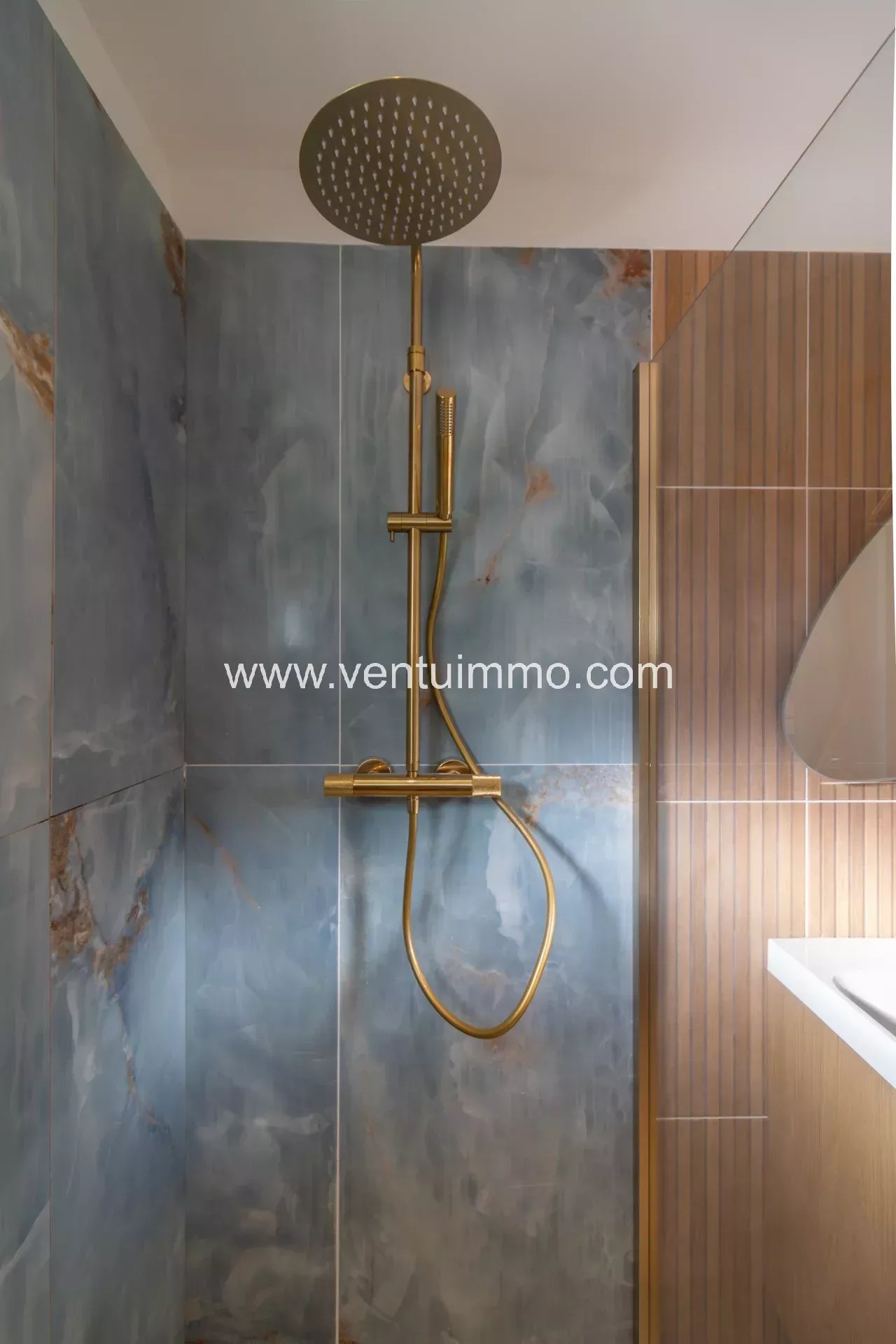 Au calme, magnifique deux pièces traversant refait à neuf composé d’un séjour climatisé, d'une cuisine contemporaine, le tout ouvert sur une très vaste terrasse de 39,59m2, d'une chambre climatisée ouverte aussi sur la terrasse, et d'une luxueuse et grande salle de douche à l'italienne avec wc.