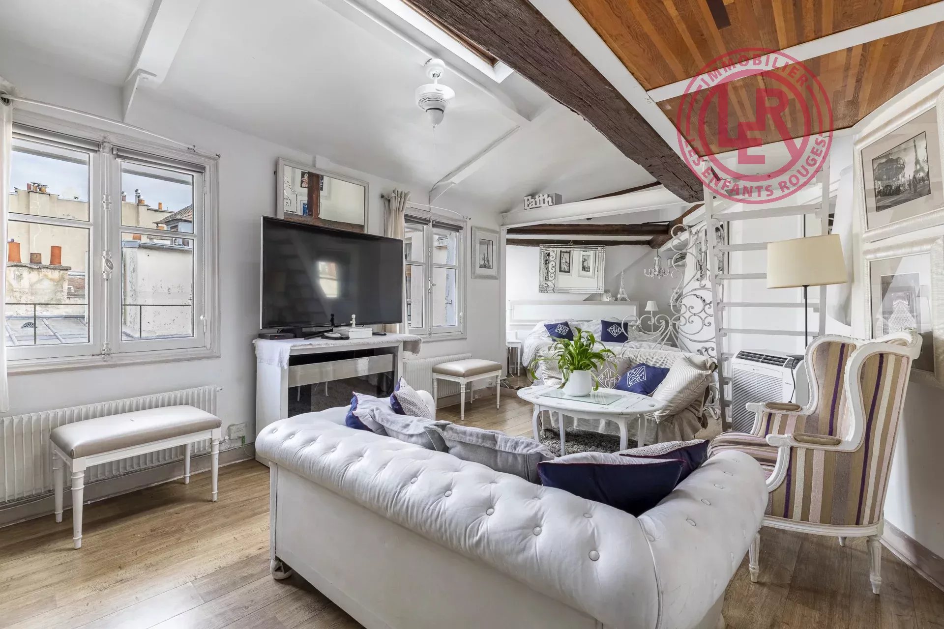 Situé au 4ème et dernier étage d'une copropriété bien entretenue, au coeur du quartier Saint-Germain-des-Pré, un appartement de 37m2 loi carrez et de 43m2 au sol, lumineux et donnant sur cour. Il se compose d'une grande pièce de vie avec une cuisine ouverte, d'un coin nuit, d'un second coin nuit sur la mezzanine, d'une salle de bain et de toilettes séparées. « Les informations sur les risques auxquels ce bien est exposé sont disponibles sur le site Géorisques : www.georisques.gouv.fr »