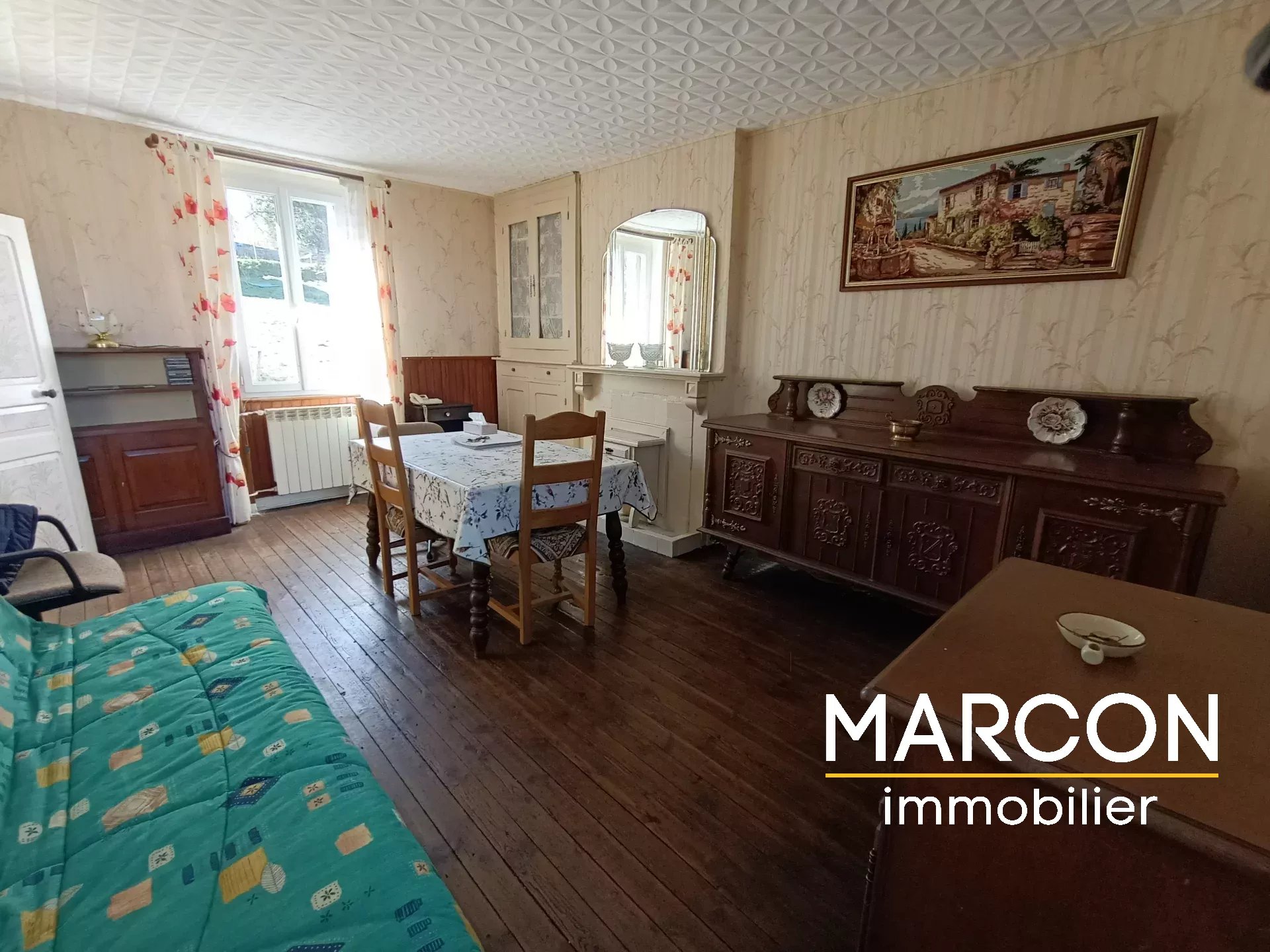 MARCON IMMOBILIER - CREUSE - LIMOUSIN - Réf 88893 - L'Agence Marcon Immobilier à AUBUSSON vous propose cette charmante maison située dans un petit village avec une vue dégagée sur la campagne, comprenant au rez-de-chaussée : une entrée qui dessert un salon-salle à manger, cuisine, salle d'eau et wc. 1er étage mansardé: un palier qui dessert deux chambres et un bureau. Sous sol: une chaufferie, une pièce. Un grand garage non attenant. Chauffage central au fioul. Le tout sur un terrain attenant de 1822 m². Prix : 66 600 € (honoraires d'agence inclus de 11% TTC charge acquéreur). (Prix : 60 000 € hors honoraires). Réseau de 3 agences en Creuse: Aubusson, Guéret et La Souterraine. 05-55-66-20-37