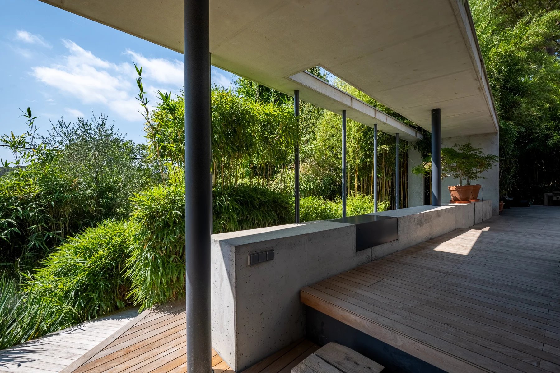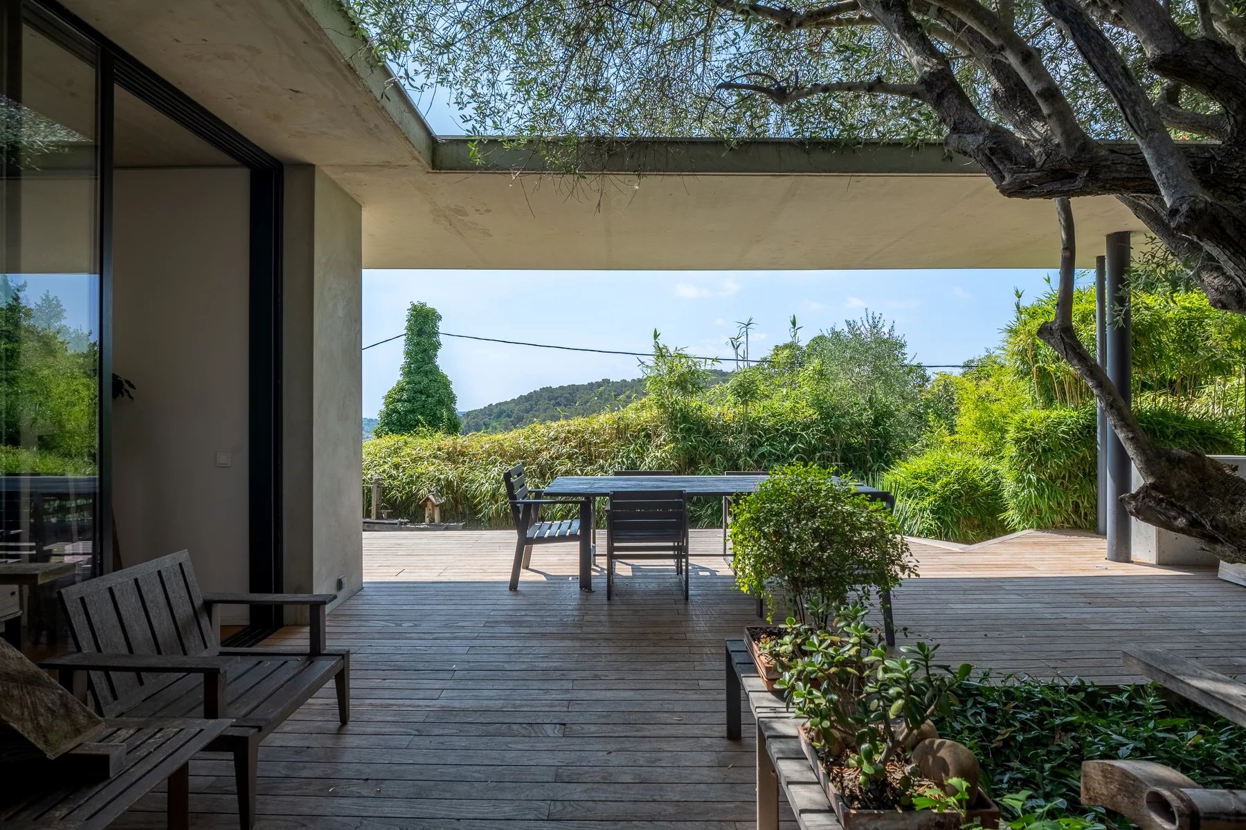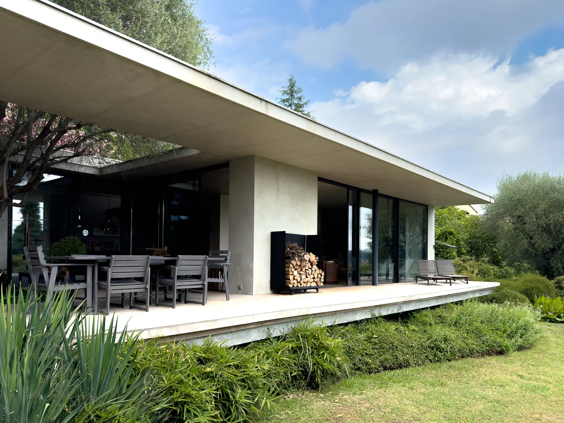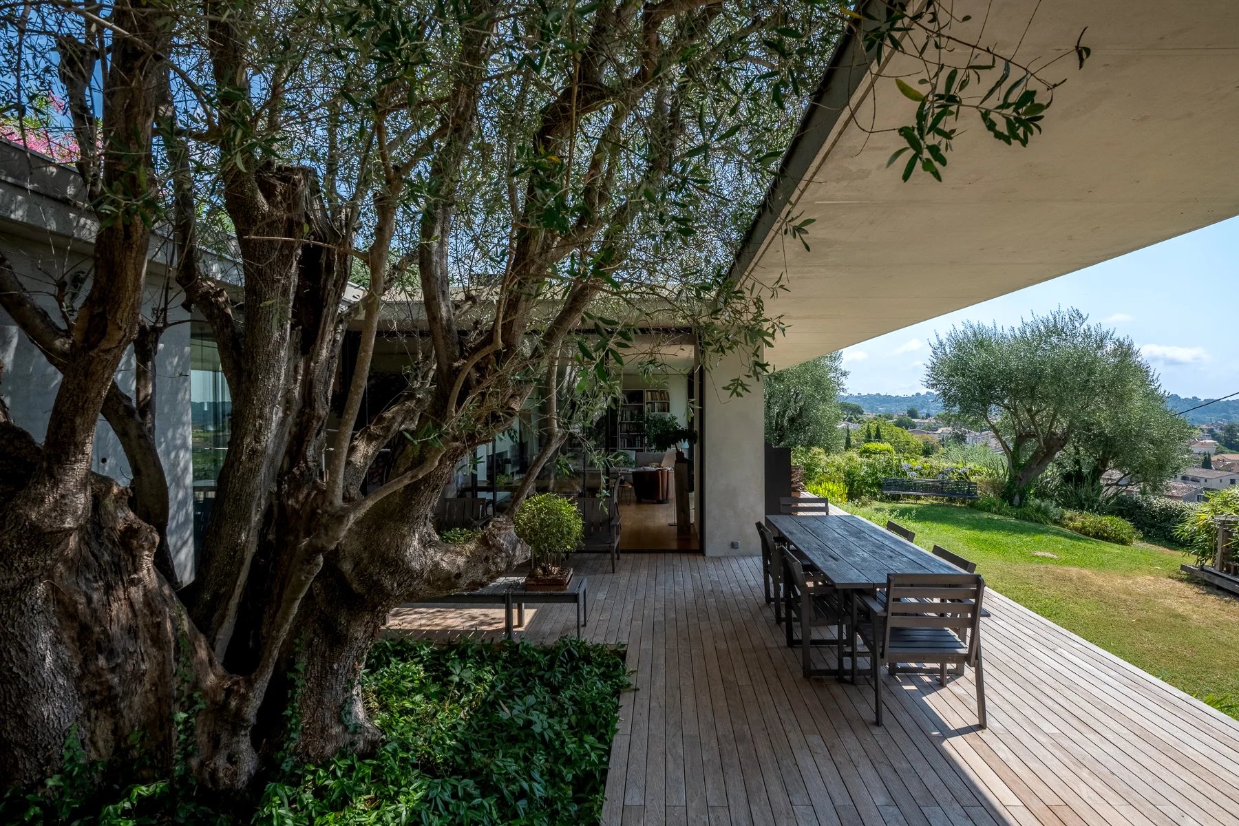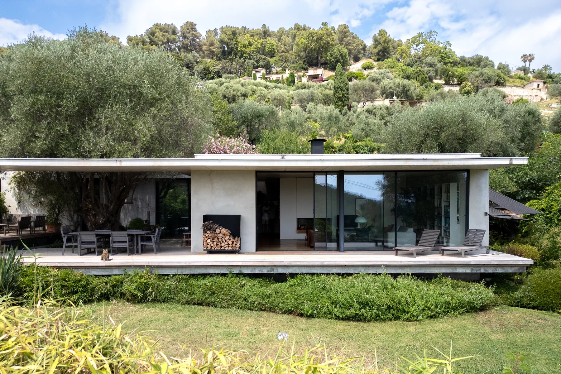 Nichée dans un écrin de verdure, à quelques pas du cœur du village de La Colle-sur-Loup, ancienne capitale de rose à parfum, cette villa de plain-pied à l’architecture néo-brutaliste de 2013, mêle avec audace lignes contemporaines, béton brut et lumière du Sud. Ici, l'esprit contemporain se conjugue à la douceur de vivre provençale. Dès l’entrée, le regard est happé par la perspective ouverte sur la mer, les collines et le village, grâce à de vastes baies vitrées qui baignent les espaces de lumière. La pièce de vie, ouverte et chaleureuse, rassemble salon avec cheminée, salle à manger et cuisine ouverte prolongée d’une arrière-cuisine discrète et fonctionnelle. Côté nuit, trois chambres, accompagnées de deux salles d'eau, deux WC et de nombreux rangements intelligemment pensés. À l’extérieur, la terrasse en teck court tout le long de la maison, véritable trait d’union entre intérieur et nature. Le jardin de 1 500 m² environ, plat, et paysagé, s’organise comme un lieu de ressourcement : bassins aux plantes aquatiques, jacuzzi enveloppé de bambous de multiples espèces, oliviers centenaires, potager, arbres fruitiers, espace barbecue intégré… Une invitation permanente à la détente, en toute intimité. Une maisonnette indépendante de 20 m² avec terrasse complète la propriété — parfait pour recevoir famille ou amis dans un cocon indépendant. Les annexes sont nombreuses et utiles : garage équipé pour véhicules électriques, remise, atelier, cave. Pensée pour un confort de vie durable, cette villa est classée A en performance énergétique (RT 2012 – BBC), équipée d’une construction anti-sismique, permis obtenu pour une piscine, située dans un site inscrit aux Monuments Historiques, à proximité immédiate du village et des commerces. Calme absolu, exposition plein Sud, vie à pied vers les commerces et les écoles : un bien rare dans un environnement préservé. Un bien d'exception, à découvrir sans tarder https://www.georisques.gouv.fr