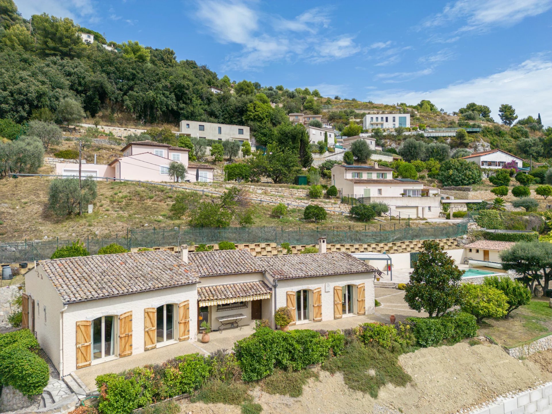 Nous vous présentons cette maison baignée de luminosité de part son exposition plein sud, sans vis-à-vis, au calme, sur la commune de Falicon érigée sur une parcelle de 1800m². Les espaces de vie et de nuit sont naturellement délimités. Ainsi nous trouverons un vaste séjour de plus de 50m² attenant à une cuisine actuellement fermée de 14m² ouvrant sur l'extérieur, son jardin complanté d'agrumes, sa piscine de 40m² et son pool house voisin. Côté nuit, trois chambres dont l'une avec sa salle d'eau, une salle de bains et des water-closet complètent le bien. La maison dispose de bons nombres d'annexes, une vaste cave de 70m², un double garage de 45m², un abri technique de 10... Les prestations sont intéressantes et nombreuses, notons parmi celle-ci, le chauffage de la piscine. La maison a toujours bénéficié d'un entretien soigné, et l'usage de nobles matériaux à la construction d'origine lui permet de bénéficier d'une conservation privilégiée.