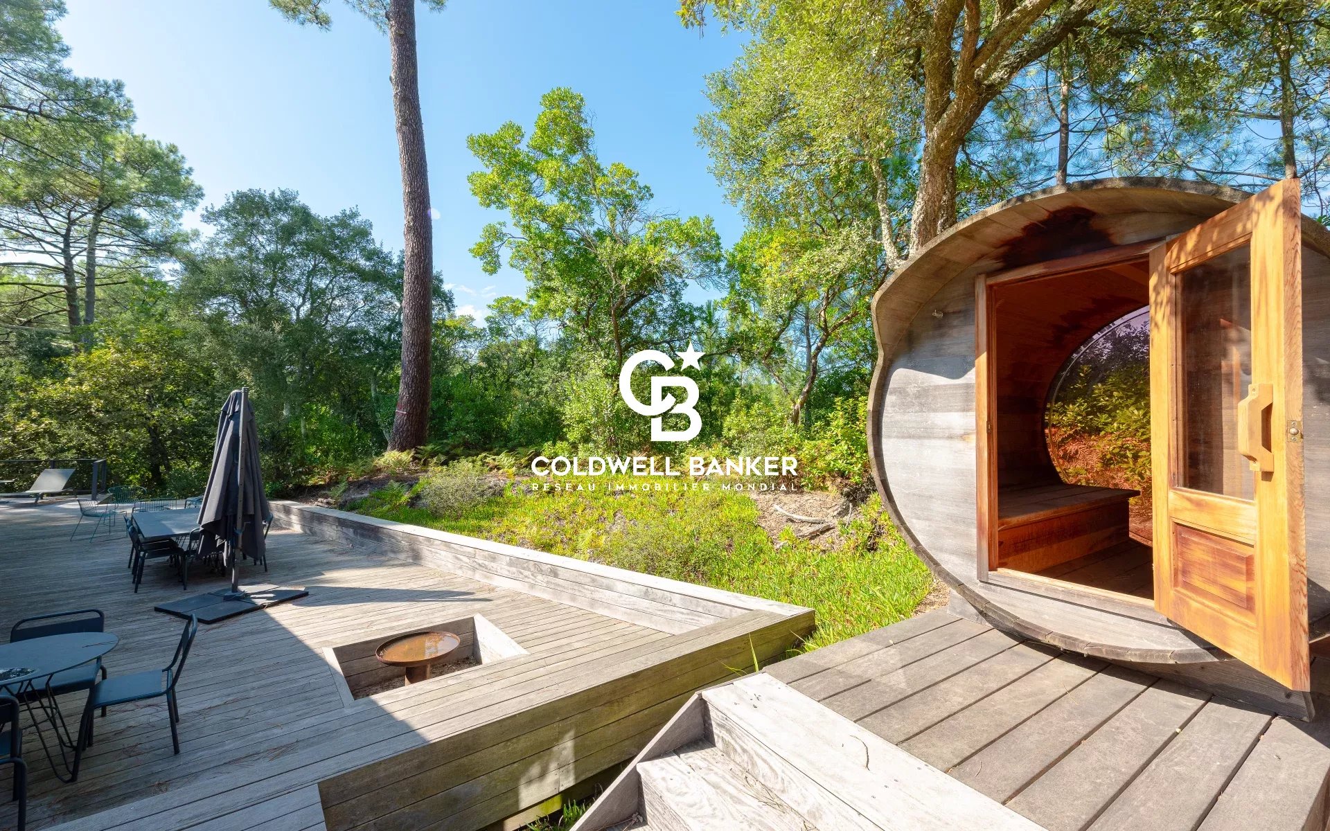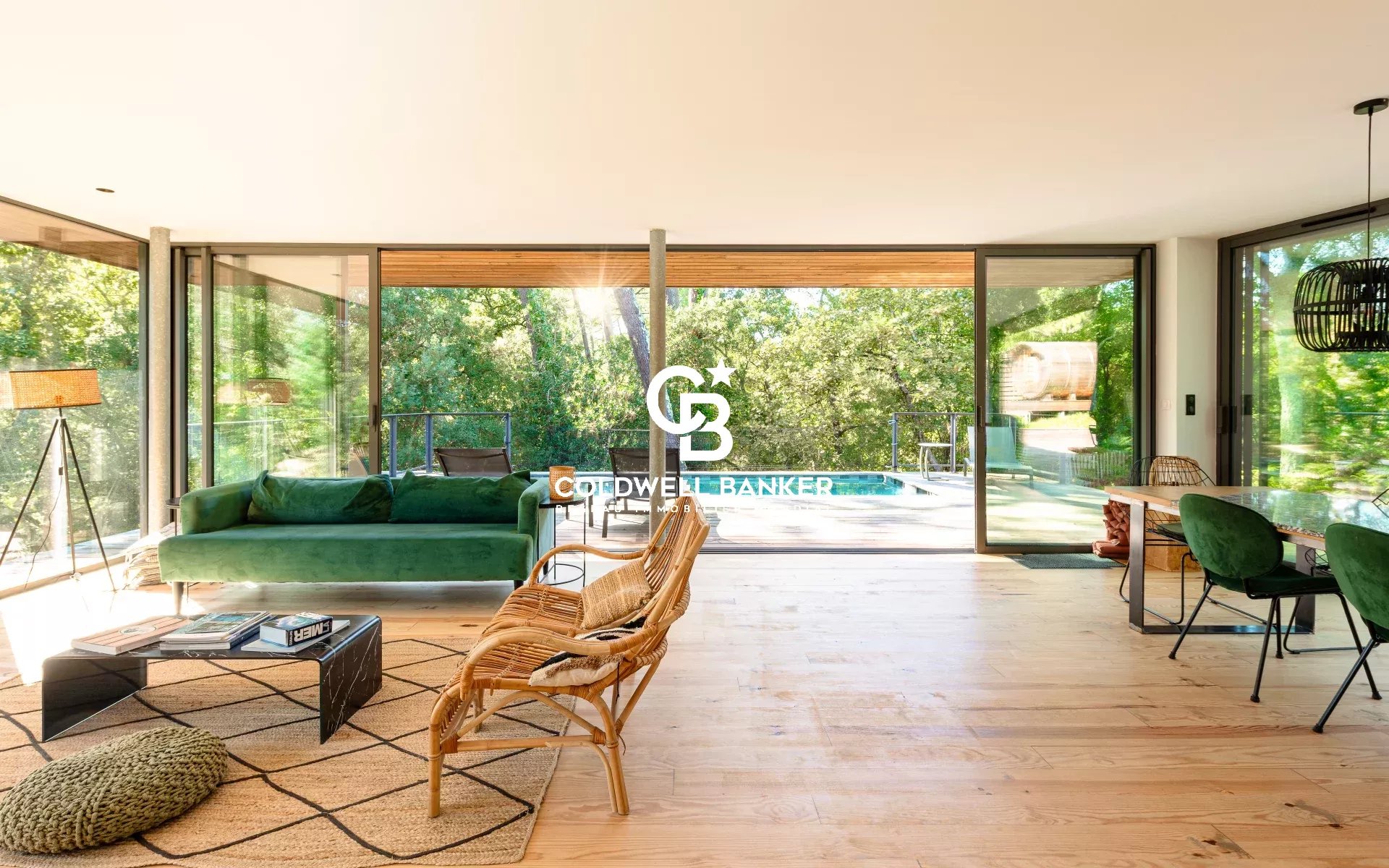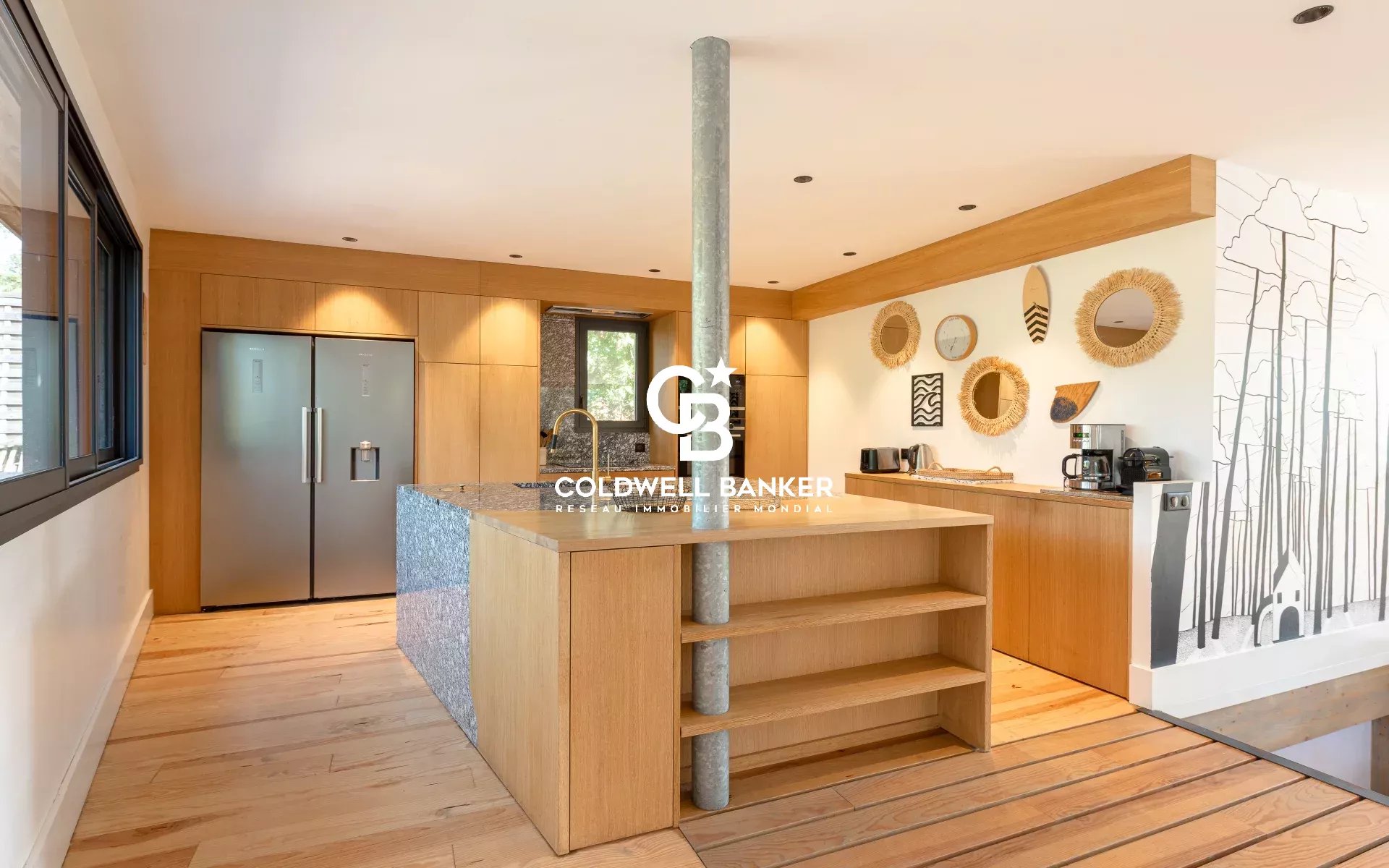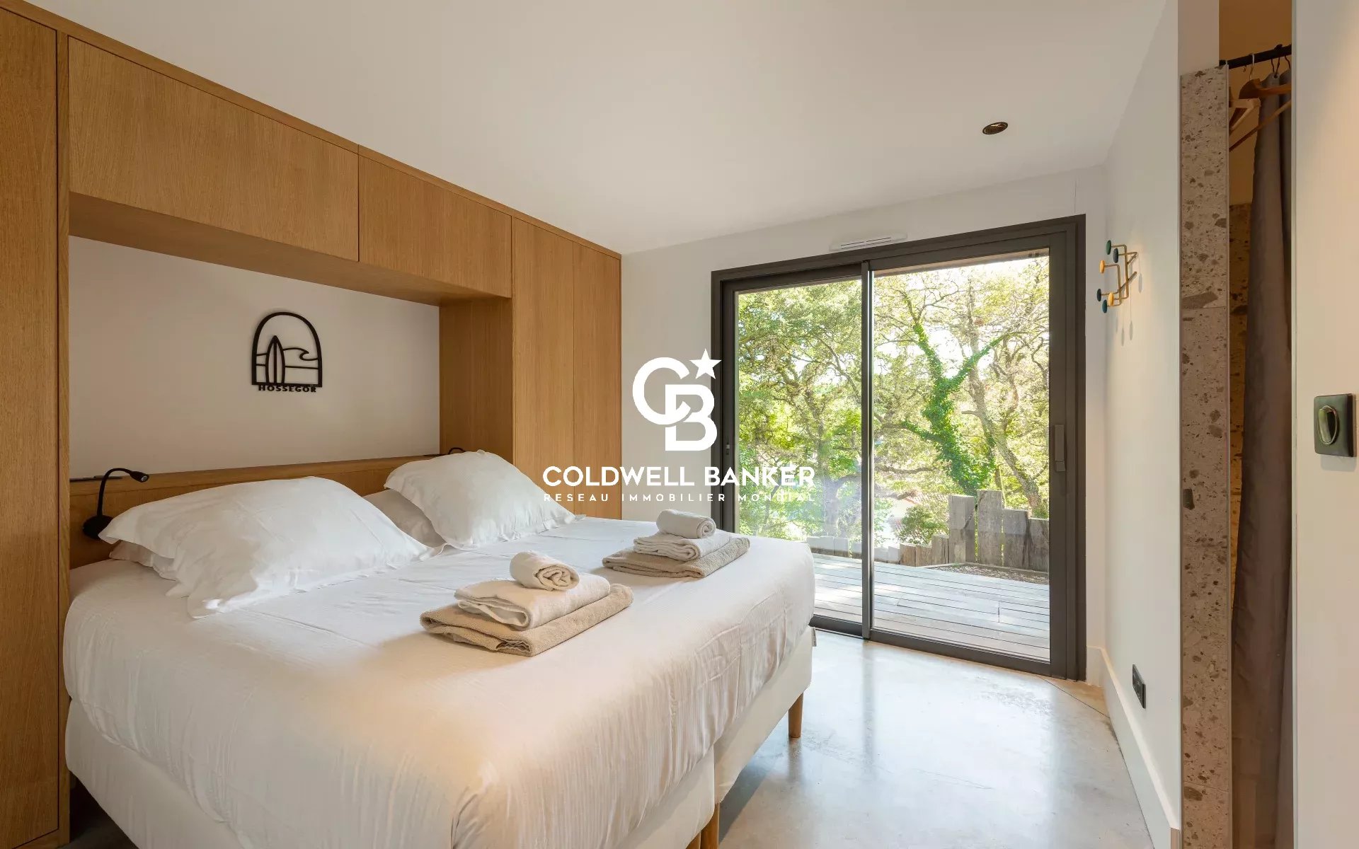 HOSSEGOR - ENVIRONNEMENT RARE - En co-exclusivité. À quelques minutes du lac d’Hossegor et du centre-ville accessibles à vélo, cette villa contemporaine d’exception se dévoile dans un environnement rare et préservé, au cœur d’un véritable écrin de verdure. Elle incarne avec justesse le luxe discret et l’art de vivre raffiné de la côte landaise.