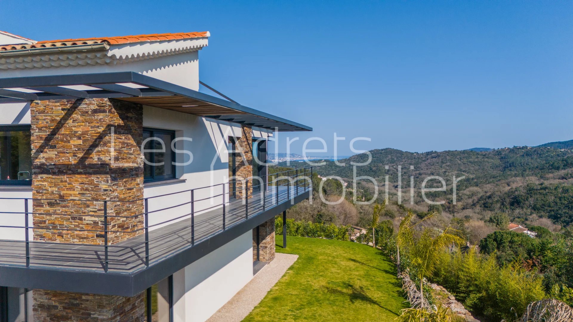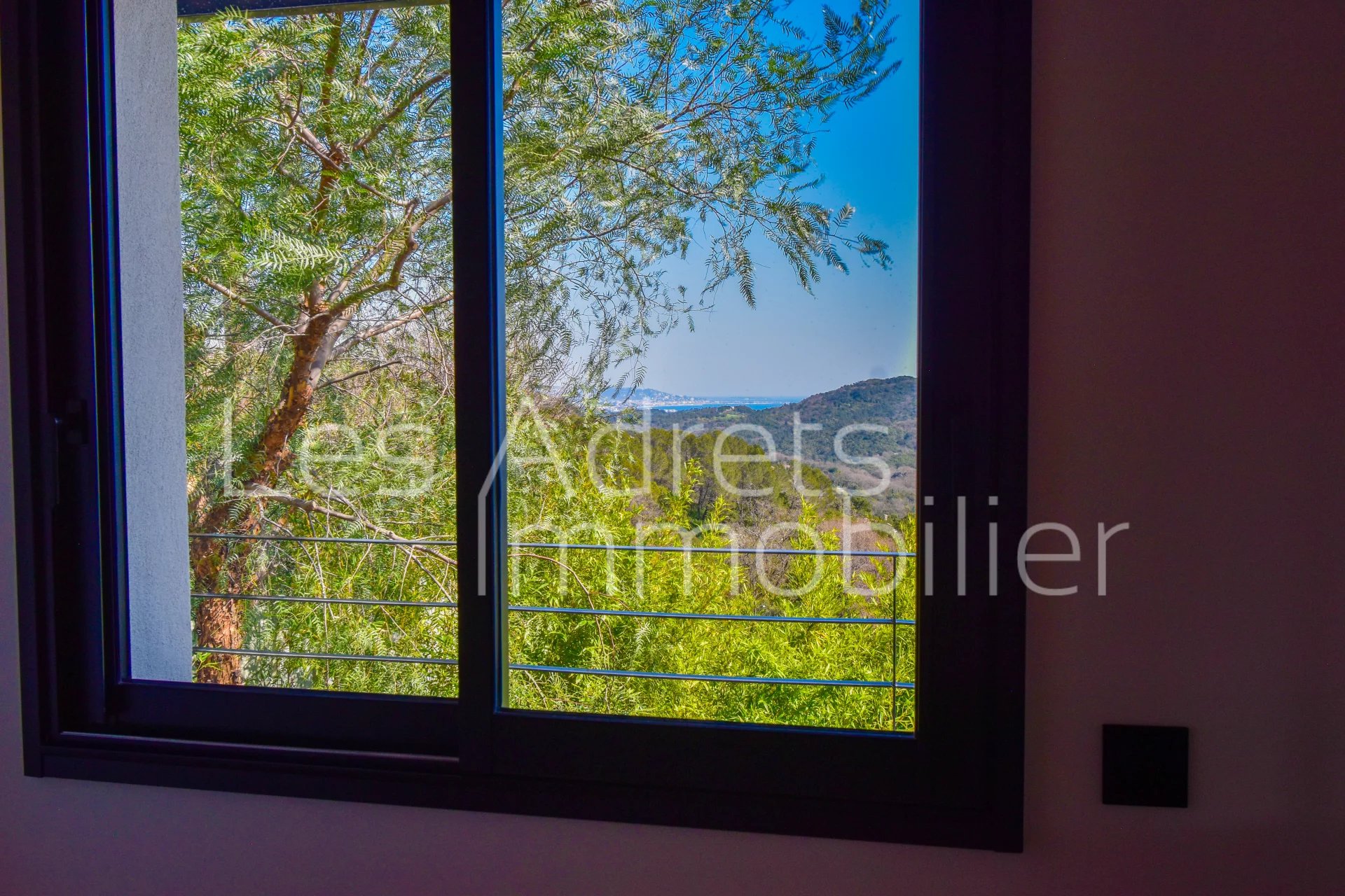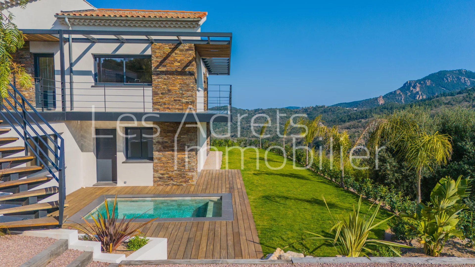 Située dans un quartier résidentiel calme, cette villa contemporaine rénovée offre environ 185 m² habitables répartis sur deux niveaux, avec une vue panoramique imprenable sur la mer Méditerranée, les roches rouges de l’Estérel et le massif environnant.