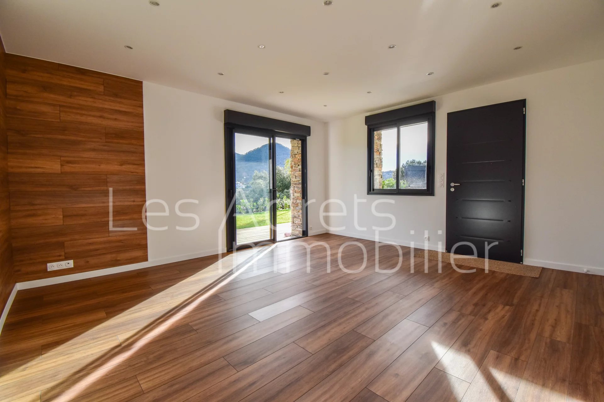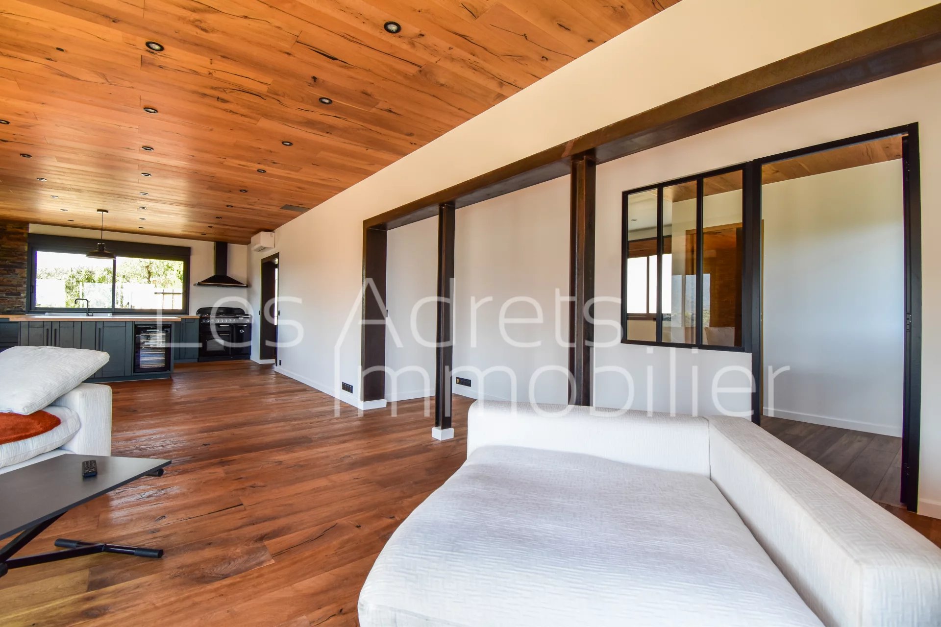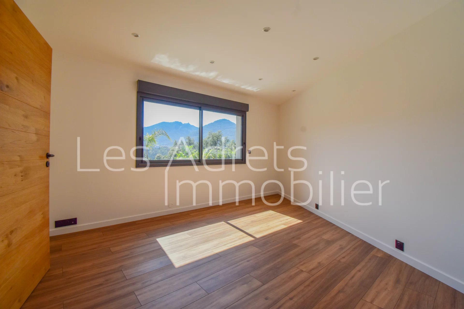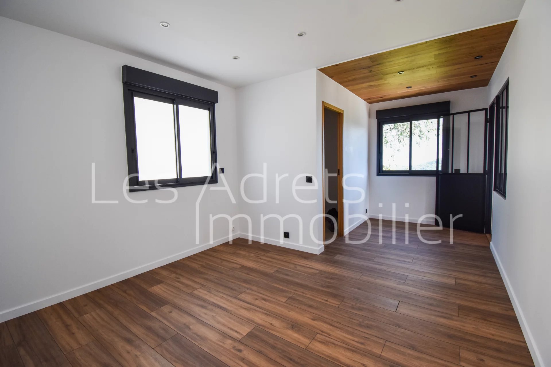 Située dans un quartier résidentiel calme, cette villa contemporaine rénovée offre environ 185 m² habitables répartis sur deux niveaux, avec une vue panoramique imprenable sur la mer Méditerranée, les roches rouges de l’Estérel et le massif environnant.