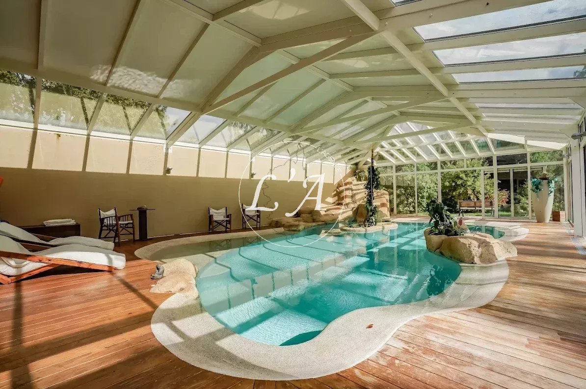 Derrière son allure authentique, la propriété déploie 18 pièces spacieuses et lumineuses : un séjour majestueux, 6 chambres raffinées, une bibliothèque empreinte de charme, une salle de cinéma privée, un espace fitness et une cave à vin idéale pour partager les plus grands crus. La piscine couverte et chauffée devient, été comme hiver, un écrin de bien-être et de détente.