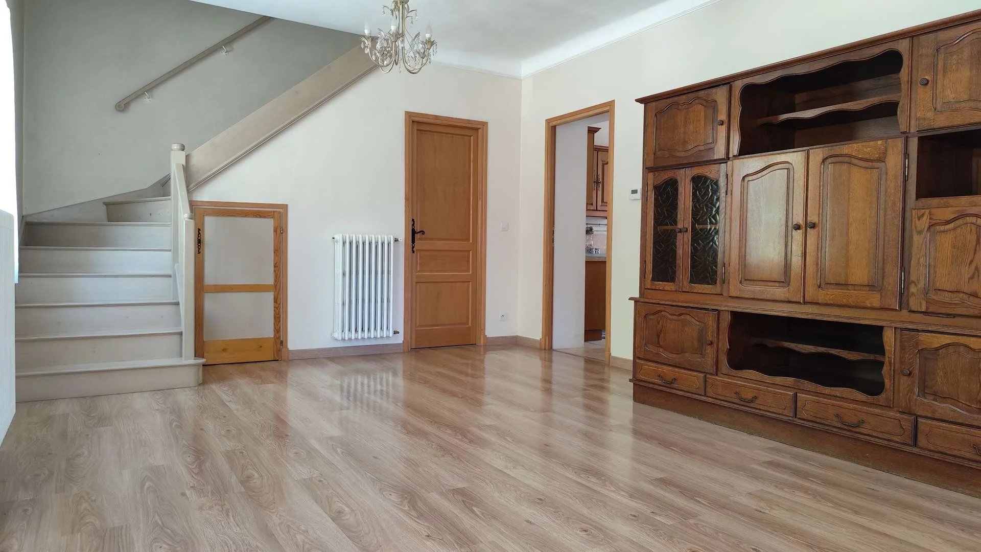 Ce bien se compose au RDC, d'un grand séjour/salon lumineux attenant à une cuisine indépendante aménagée et équipée, un toilette séparé avec lave-mains et rangements.
