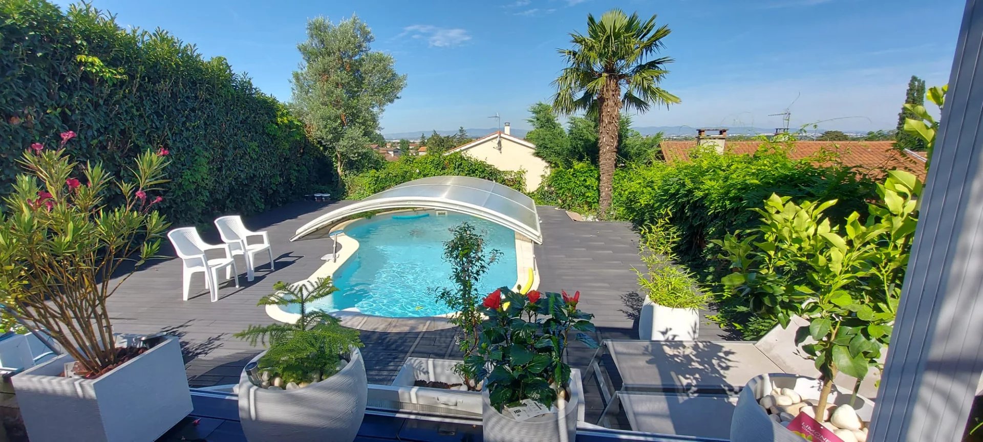 SOUS COMPROMIS - A Mions, proche du centre, nous vous proposons cette jolie maison de 106m² habitables (3 chambres avec placard) et un sous-sol complet. La cuisine (totalement équipée) et le séjour donnent sur la terrasse en composite et la piscine sécurisée... Le chauffage est au gaz de ville, alimentée par une chaudière récente. Toutes les pièces sont climatisées, les menuiseries en PVC et les volets roulants électriques Une maison suivie et très bien entretenue... A visiter sans tarder avec Chaponnay Immobilier !
