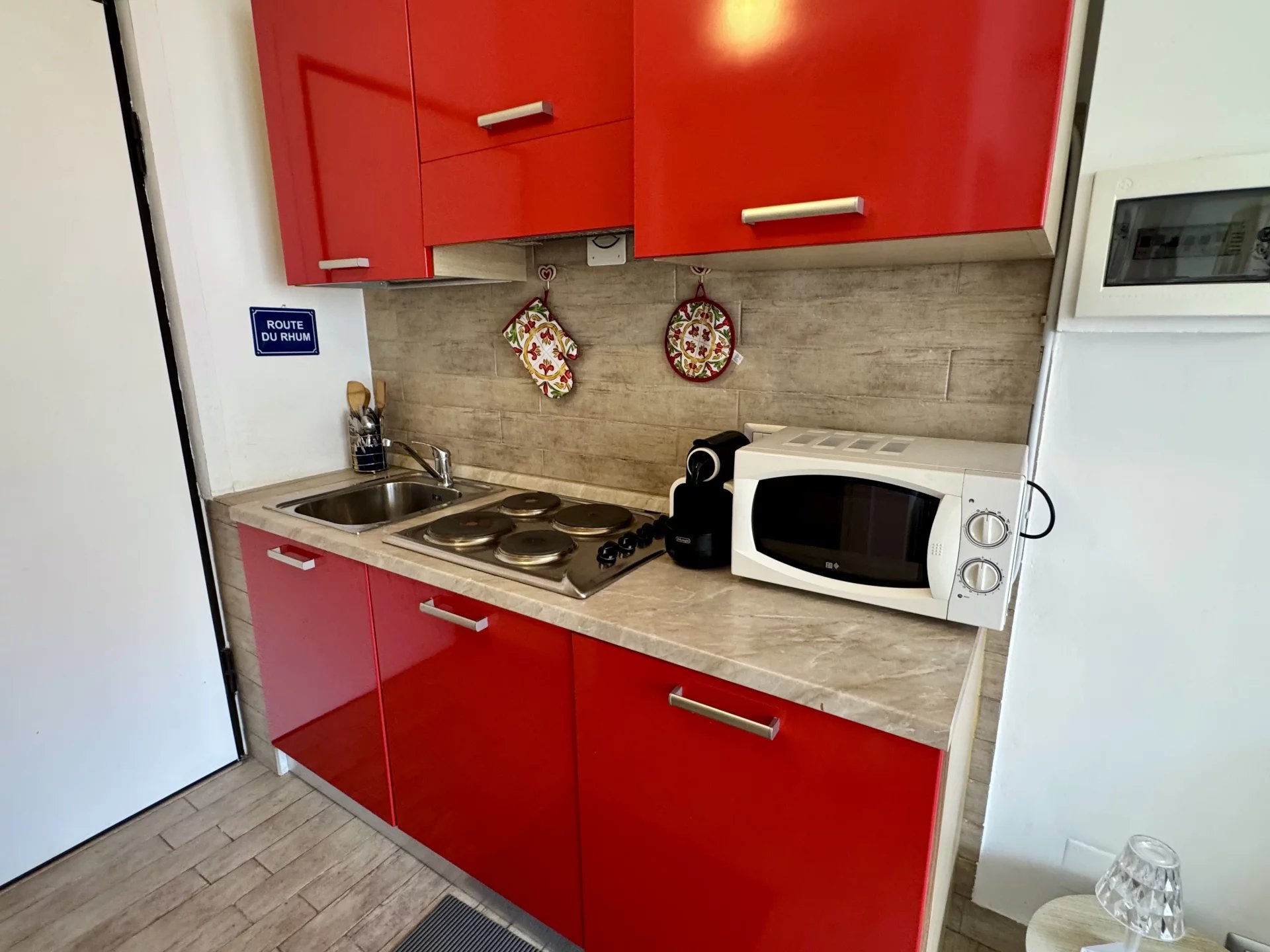 A Cannes, en 2e ligne Croisette, entre les hôtels Carlton et Martinez, dans une résidence sécurisée avec gardien et en avant dernier étage, joli studio d'une superficie d'environ 17 m2 avec terrasse plein Sud au calme. Entrée, kitchenette, salle douches avec WC et pièce principale ouvrant sur la terrasse.