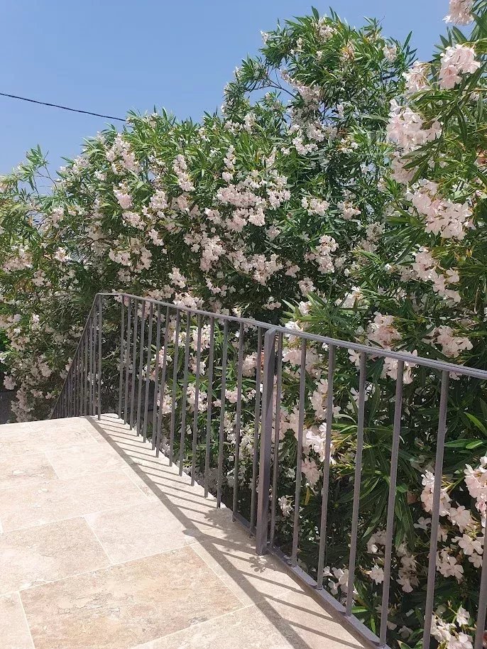 Vous y découvrirez également un joli balcon sous les lauriers.