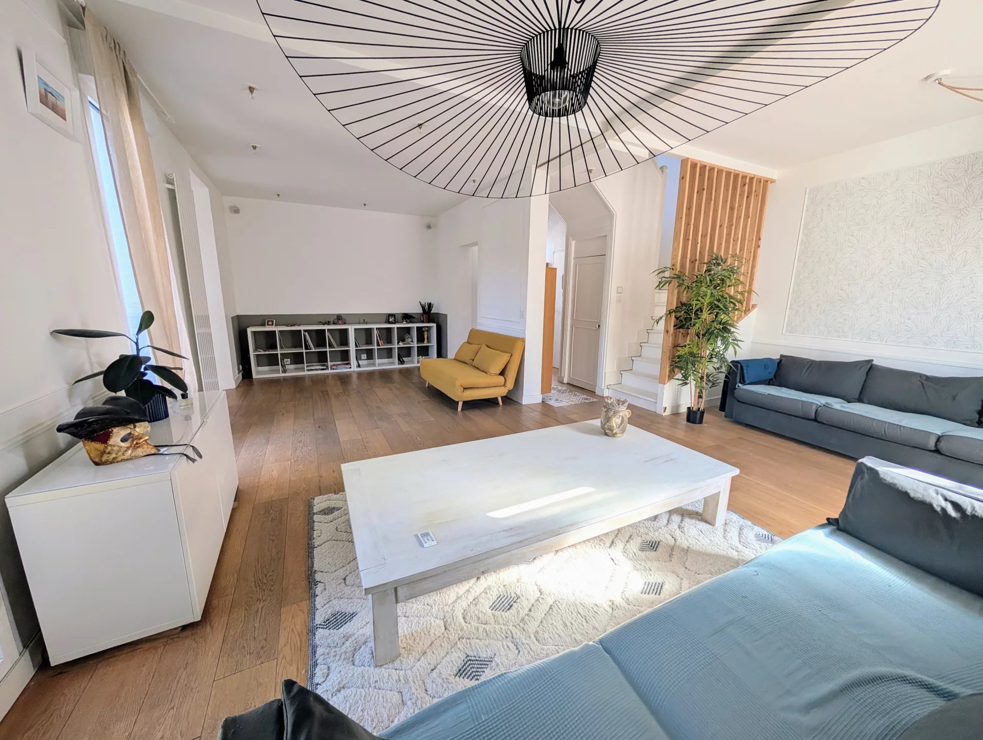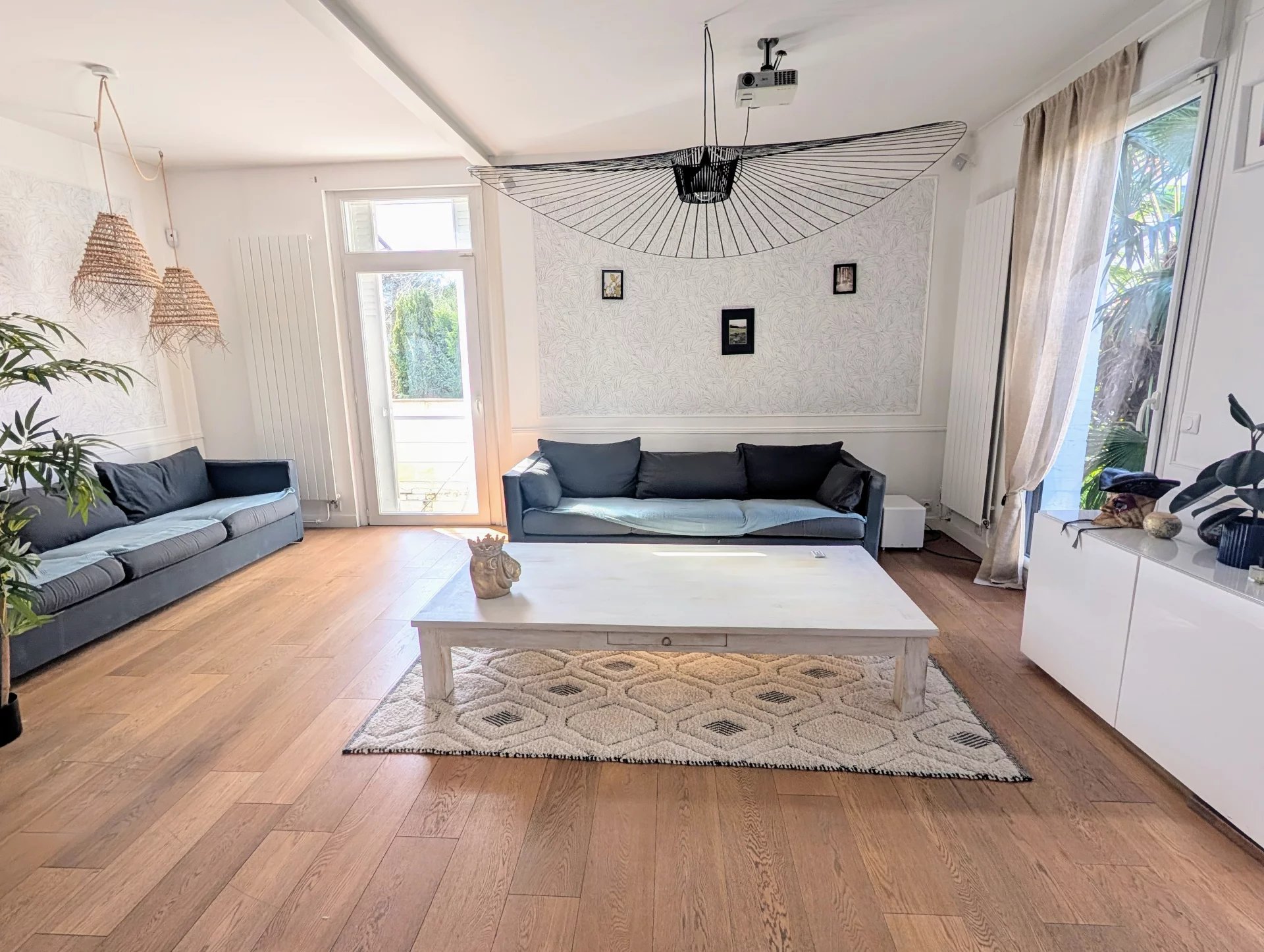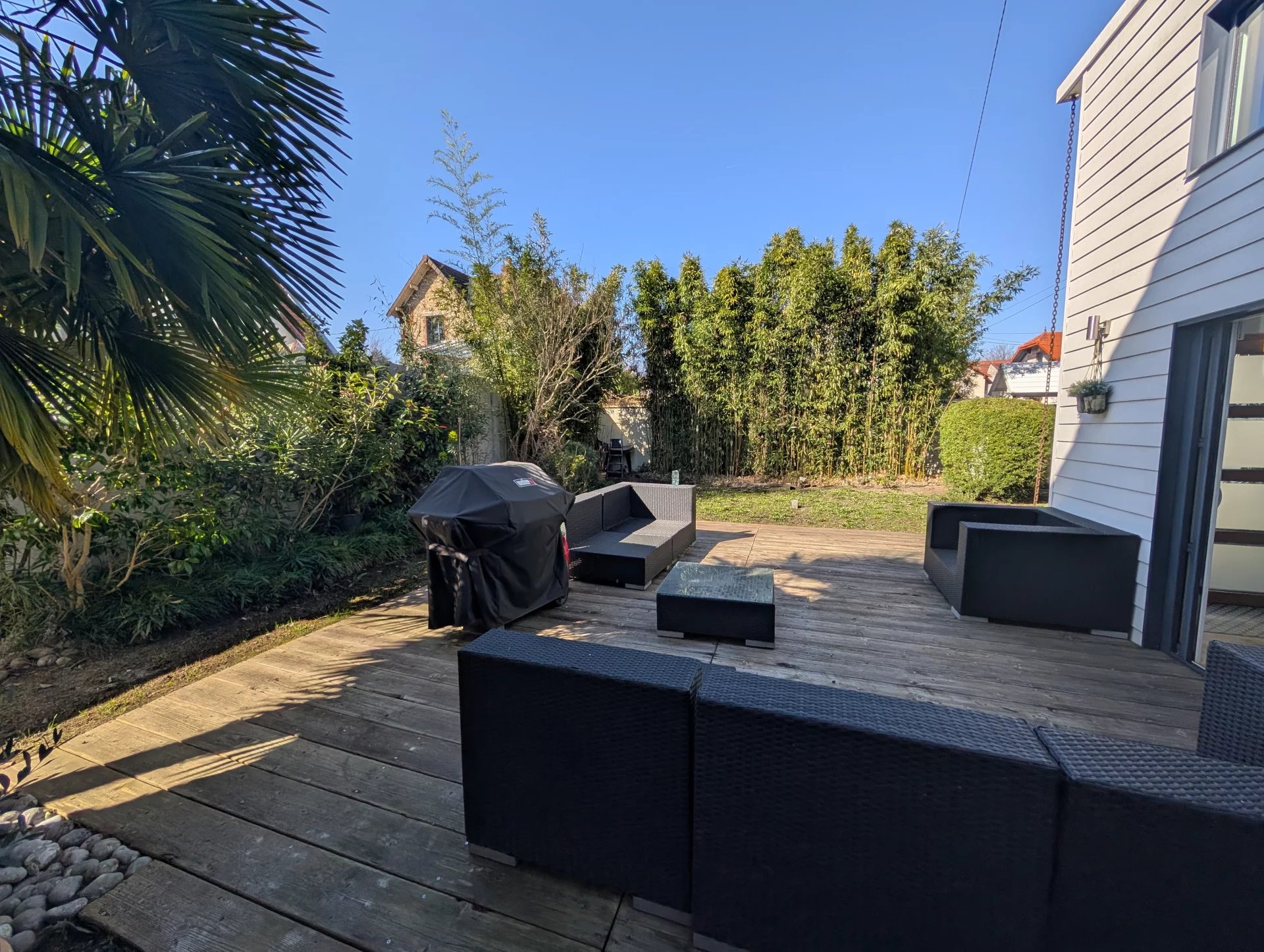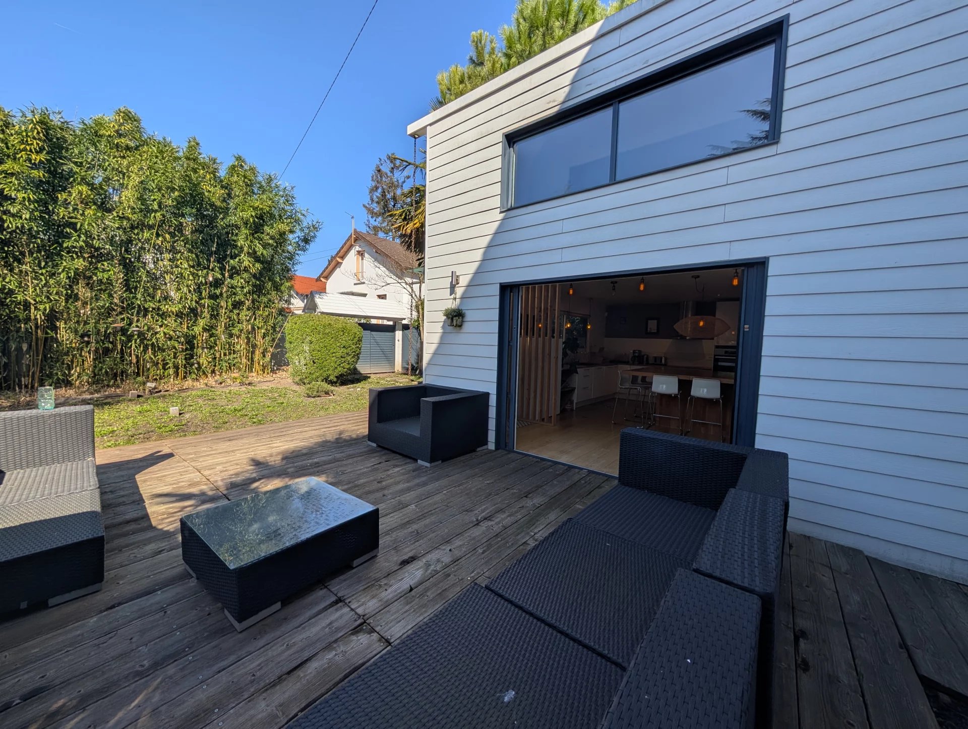 Villaret Immobilier vous propose, A 5mn à pied de la gare "La Barre Ormesson" (ligne H, 11mn de gare du Nord), et à 10mn à pieds du lac d'Enghien et du casino Barrière, dans la rue calme George Sand (les numéros pairs sont rattachés à Enghien les Bains, les numéros impairs à Deuil la Barre), Belle maison meulière traditionnelle transformée grâce à une extension récente construite en 2010. L'extension permet d'avoir un rez-de-jardin avec cuisine ouverte de 37 M2 sur l'espace extérieur (grande terrasses aménagée, jardin) sans vis-à-vis. - Grand salon de 35 M2 - 4 chambres : 3 chambres à l'étage (2 dans la partie traditionnelle, 1 dans la nouvelle extension) et une 4eme chambre avec salle de douche en RDC dans la partie récente. - 3 salles de bain dont 2 avec douches à l'italienne et 1 avec baignoire. 3 WC. La maison est à l'abri des regards, au fond d'une petite allée privée partagée avec 2 autres maisons, et sécurisée par un portail électrique. 2 places de parking. Toiture refaite en 2023. chauffe-eau neuf. Surface totale de la maison 216 m2 dont - 151 m2 habitable (loi carrez) - 35m2 de sous-sol aménagé et sain, avec fenêtres et accès direct depuis le jardin, possibilité d'aménager une salle de sport ou de cinéma. - 30 m2 non carrez