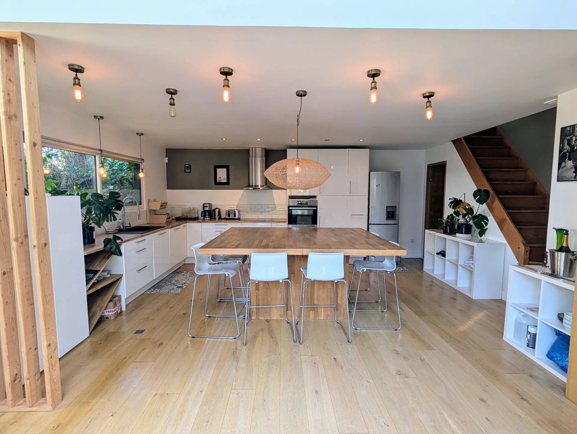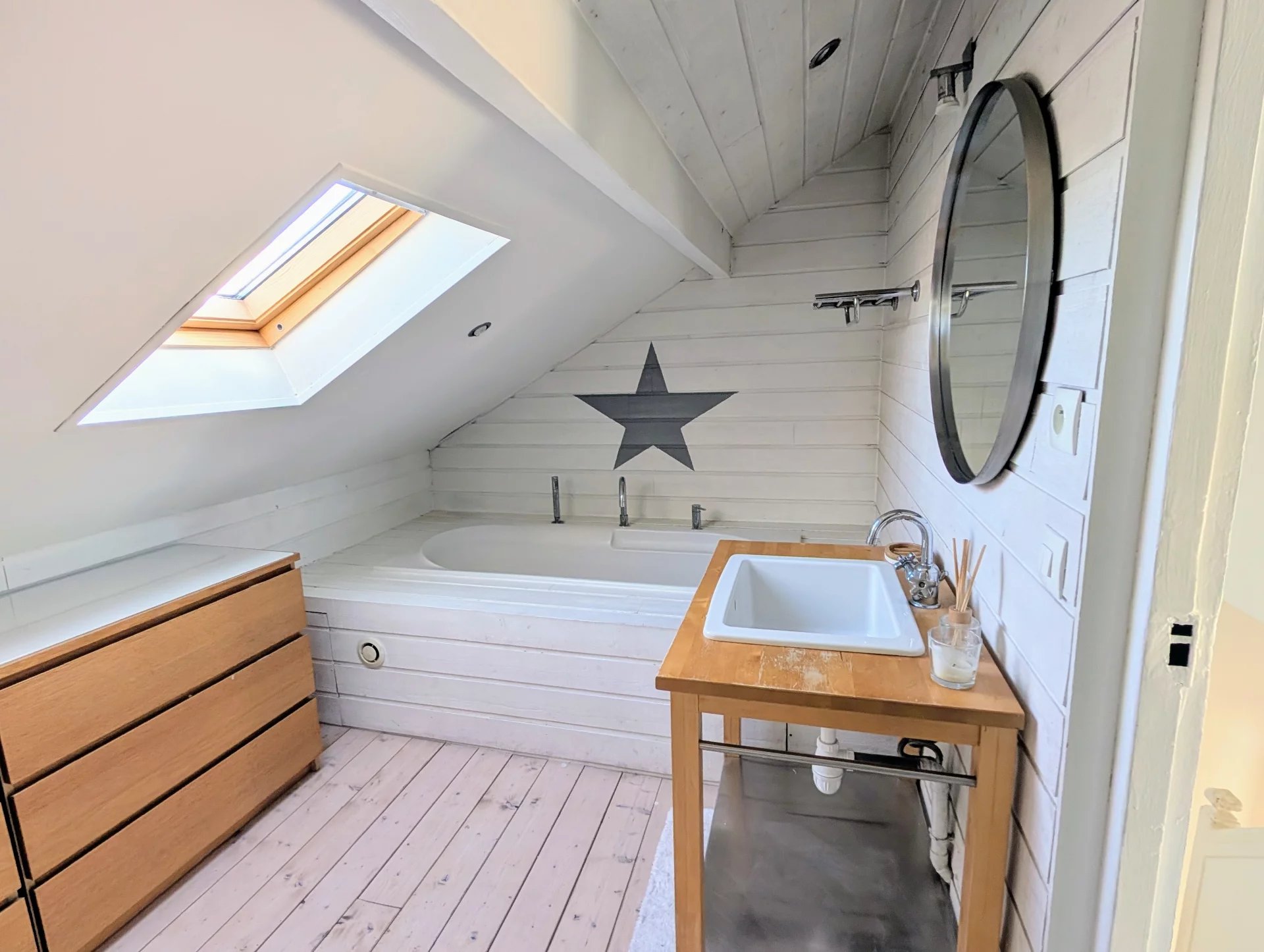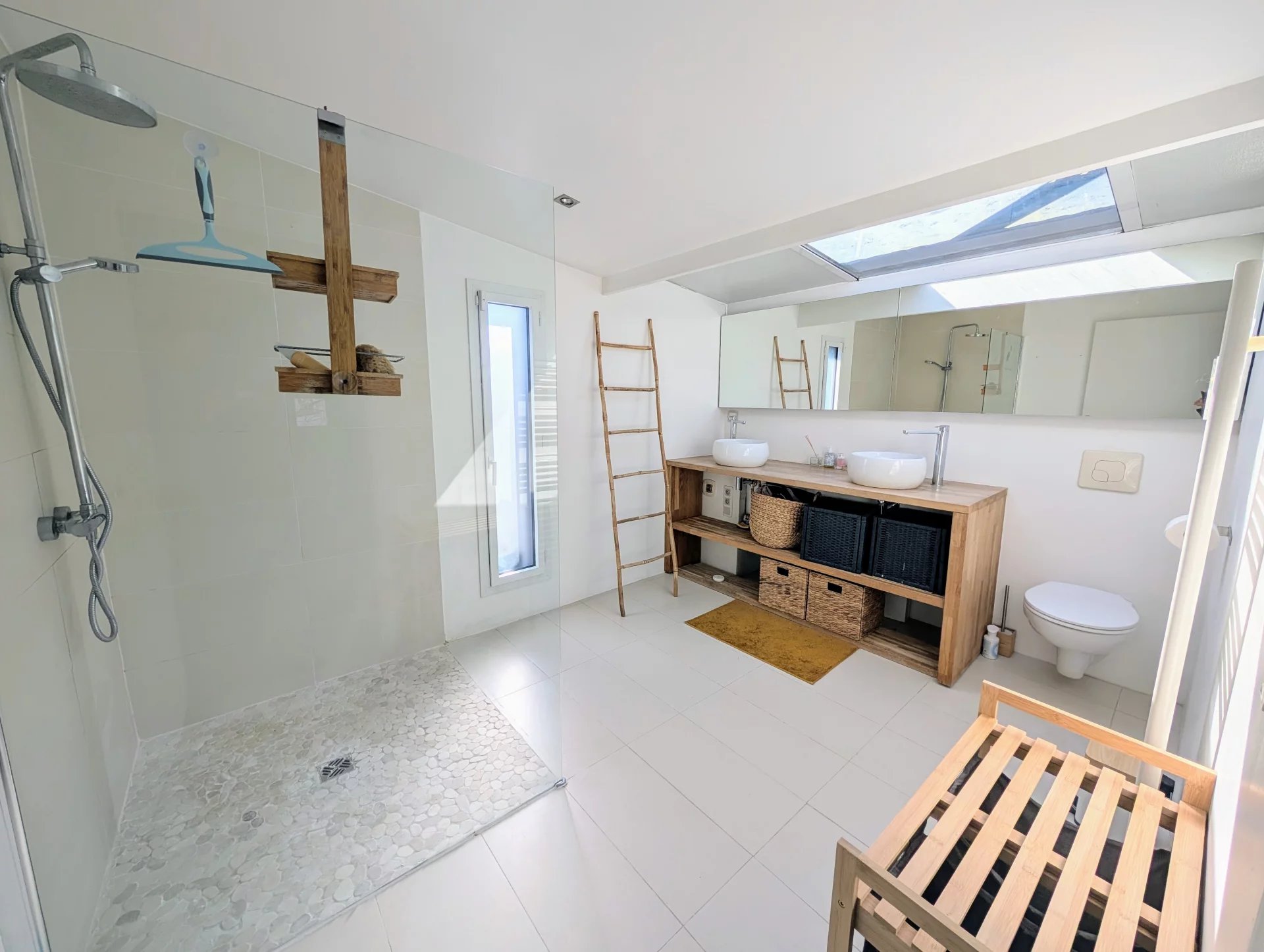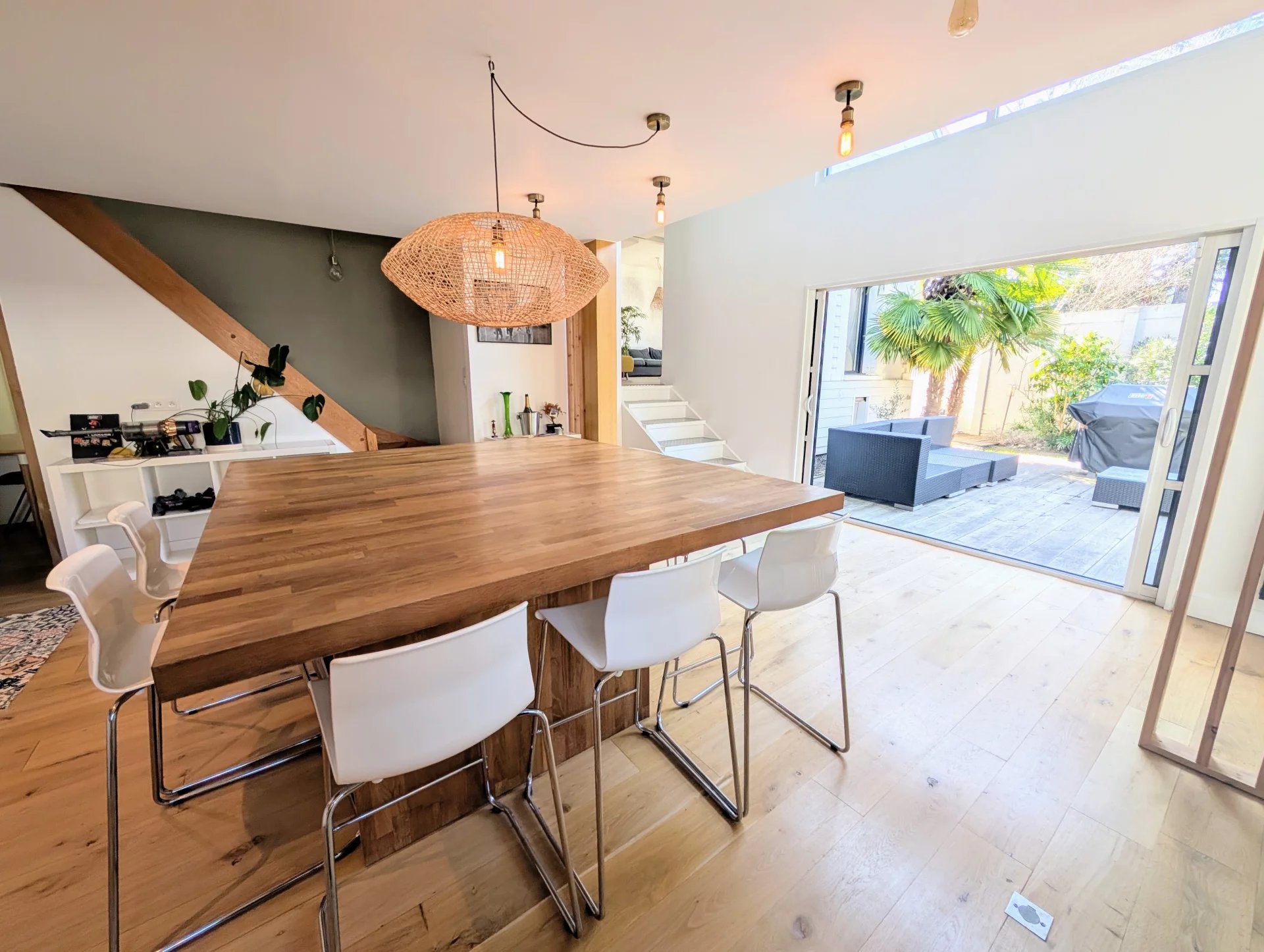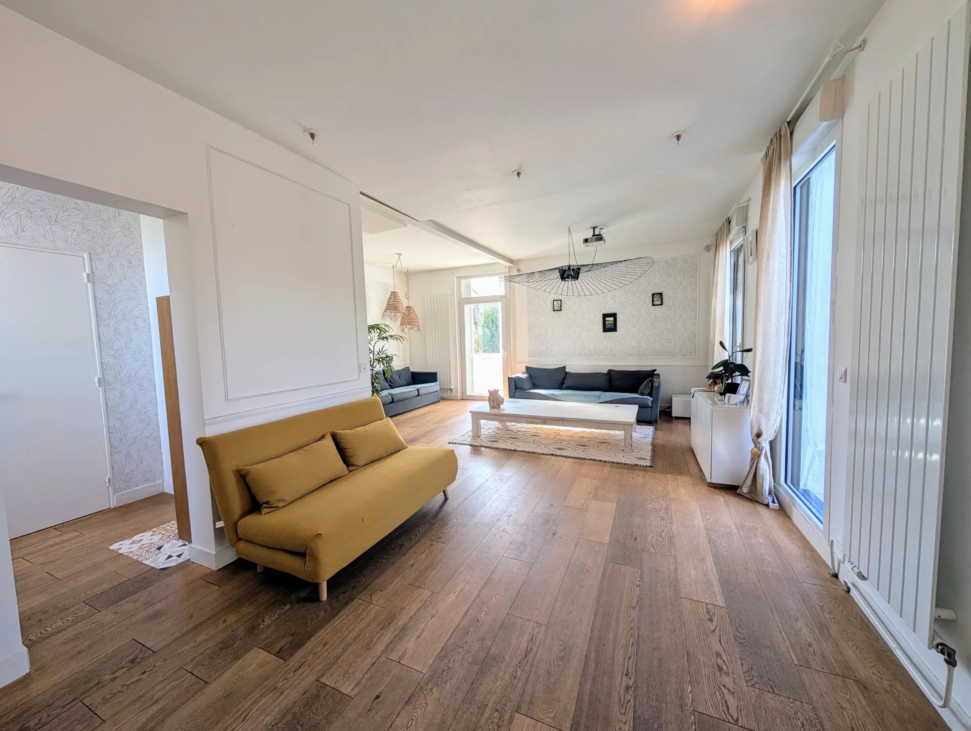 Villaret Immobilier vous propose, A 5mn à pied de la gare "La Barre Ormesson" (ligne H, 11mn de gare du Nord), et à 10mn à pieds du lac d'Enghien et du casino Barrière, dans la rue calme George Sand (les numéros pairs sont rattachés à Enghien les Bains, les numéros impairs à Deuil la Barre), Belle maison meulière traditionnelle transformée grâce à une extension récente construite en 2010. L'extension permet d'avoir un rez-de-jardin avec cuisine ouverte de 37 M2 sur l'espace extérieur (grande terrasses aménagée, jardin) sans vis-à-vis. - Grand salon de 35 M2 - 4 chambres : 3 chambres à l'étage (2 dans la partie traditionnelle, 1 dans la nouvelle extension) et une 4eme chambre avec salle de douche en RDC dans la partie récente. - 3 salles de bain dont 2 avec douches à l'italienne et 1 avec baignoire. 3 WC. La maison est à l'abri des regards, au fond d'une petite allée privée partagée avec 2 autres maisons, et sécurisée par un portail électrique. 2 places de parking. Toiture refaite en 2023. chauffe-eau neuf. Surface totale de la maison 216 m2 dont - 151 m2 habitable (loi carrez) - 35m2 de sous-sol aménagé et sain, avec fenêtres et accès direct depuis le jardin, possibilité d'aménager une salle de sport ou de cinéma. - 30 m2 non carrez