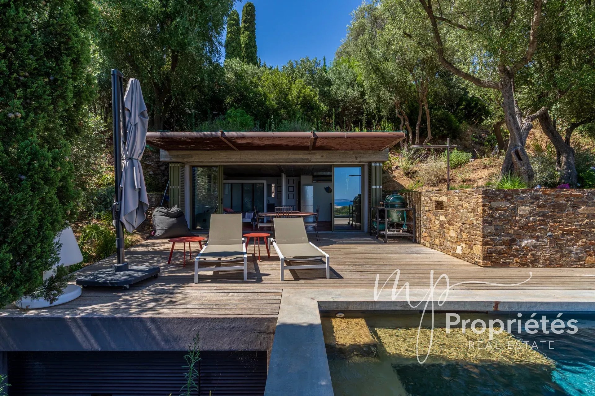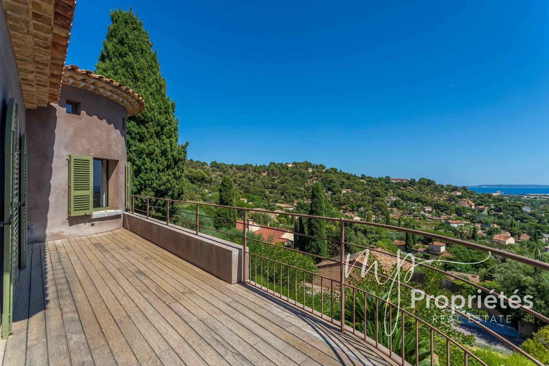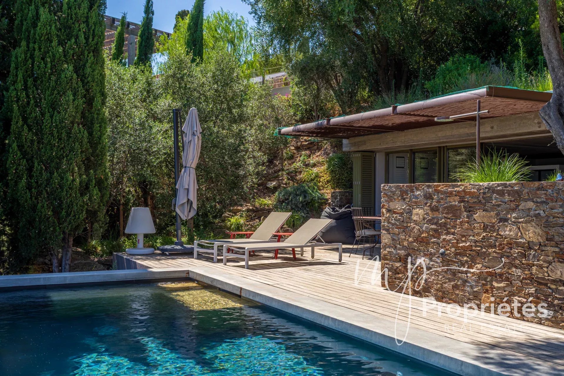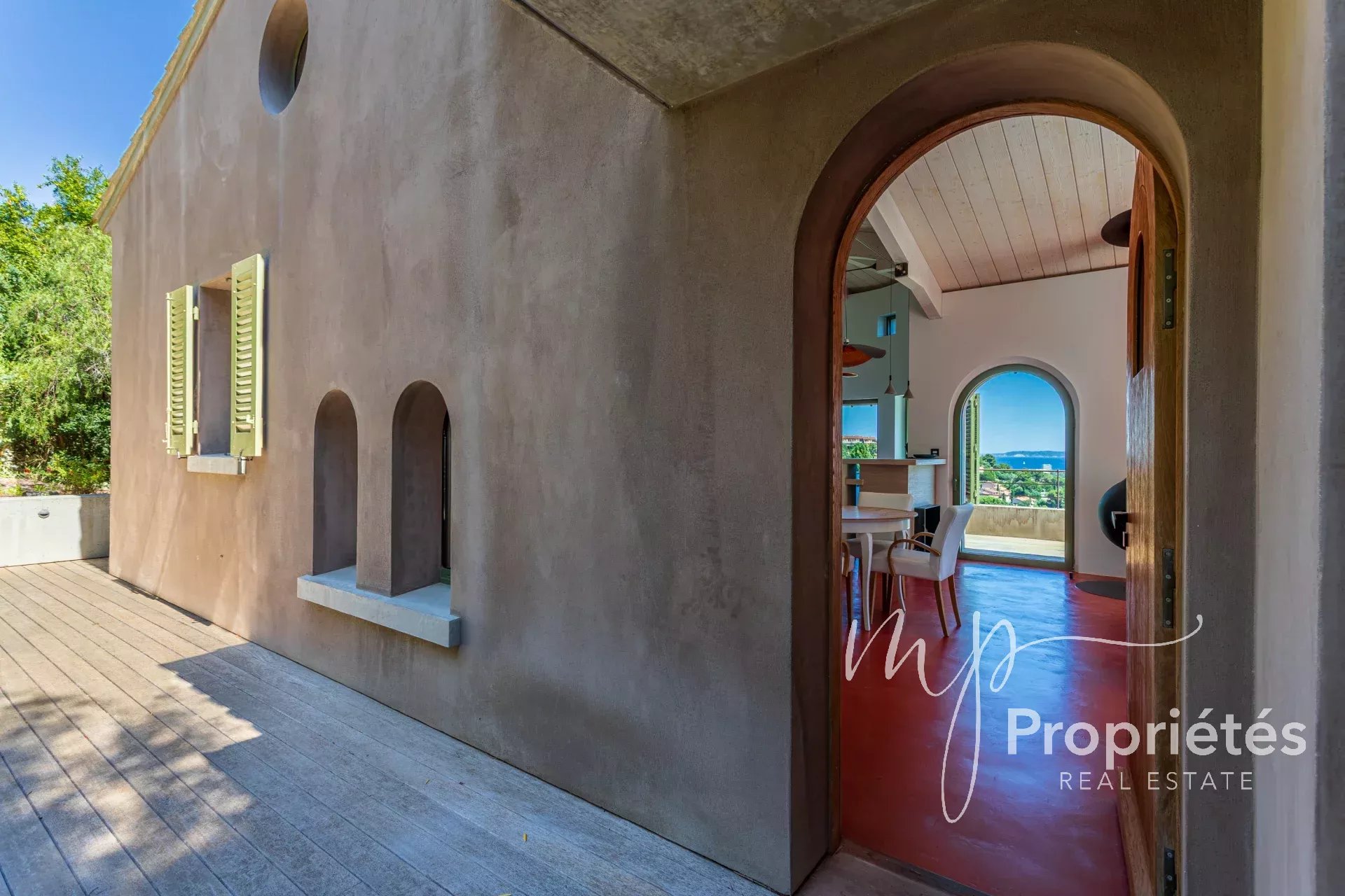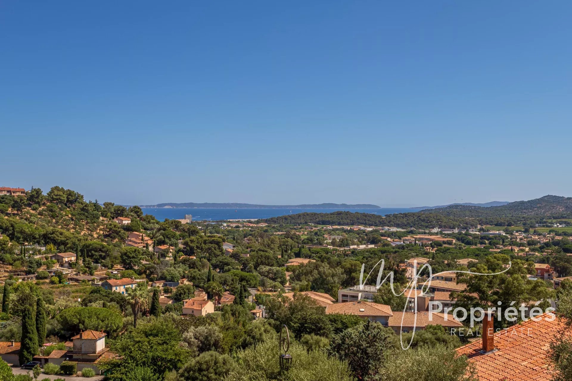 A vendre BORMES LES MIMOSAS-À quelques pas du pittoresque village médiéval de Bormes-les-Mimosas, cette villa entièrement rénovée de offrant une vue imprenable sur la mer, combine élégance et confort édifiée sur un terrain de 1500m² environs.