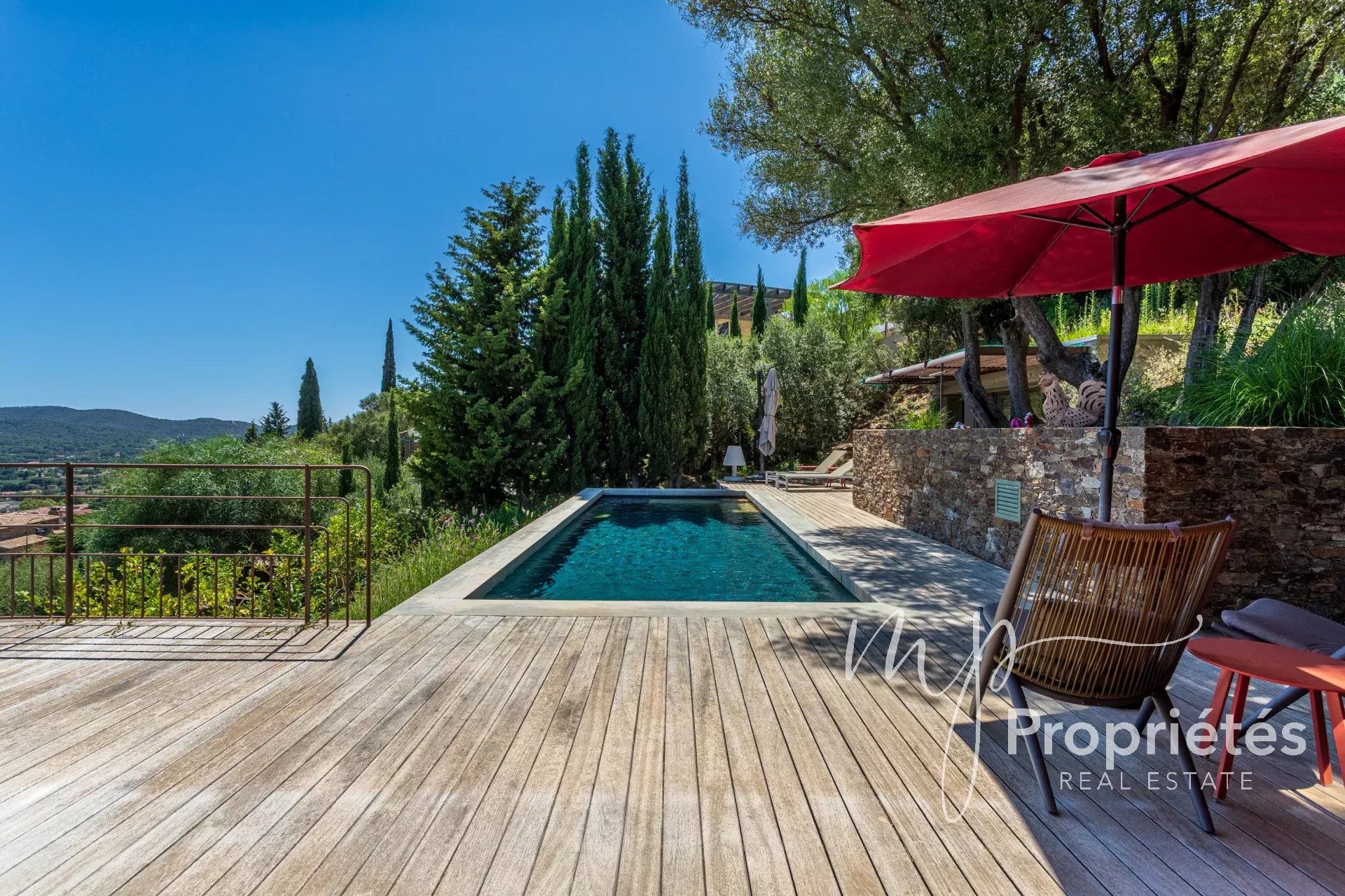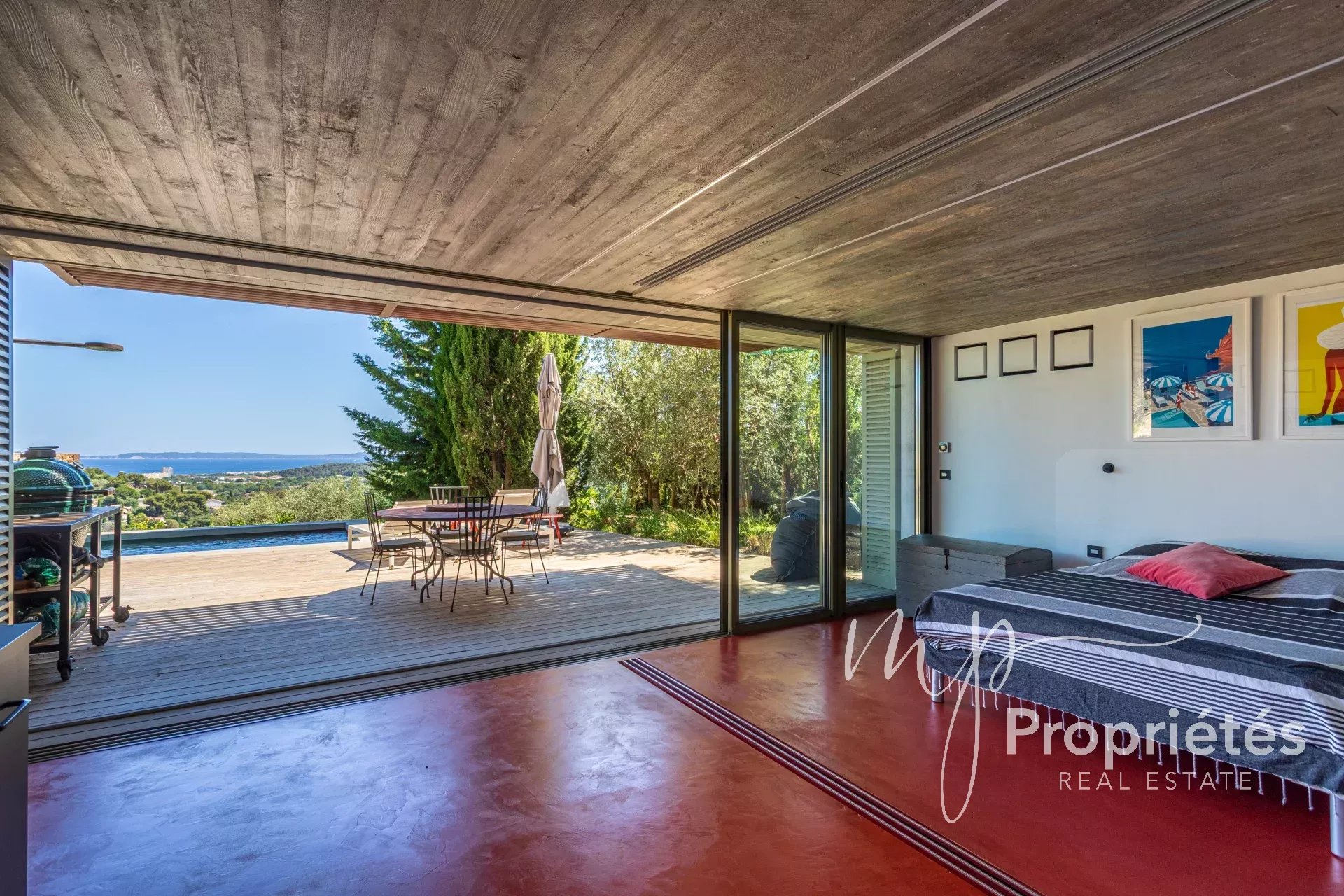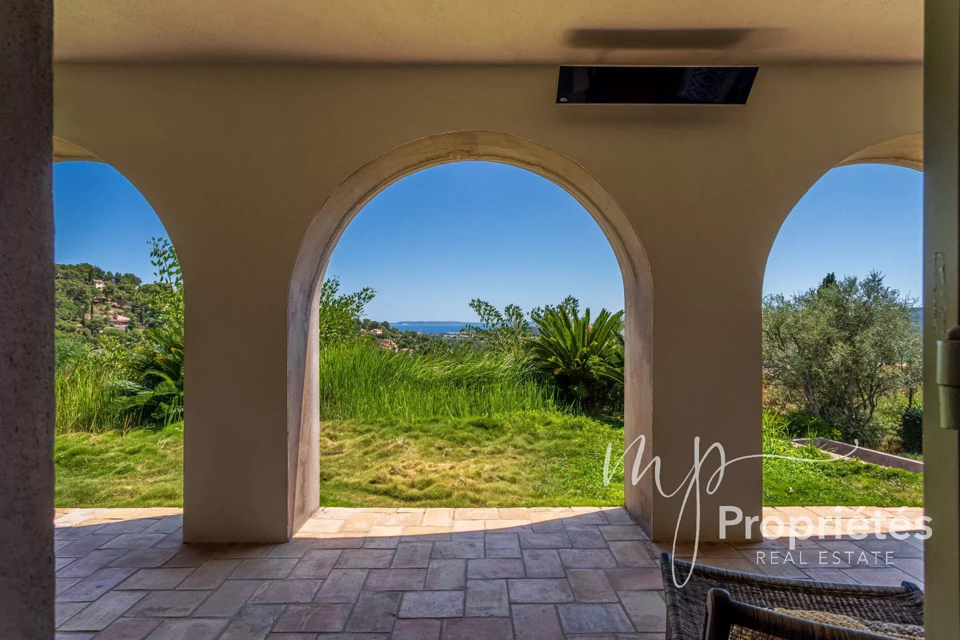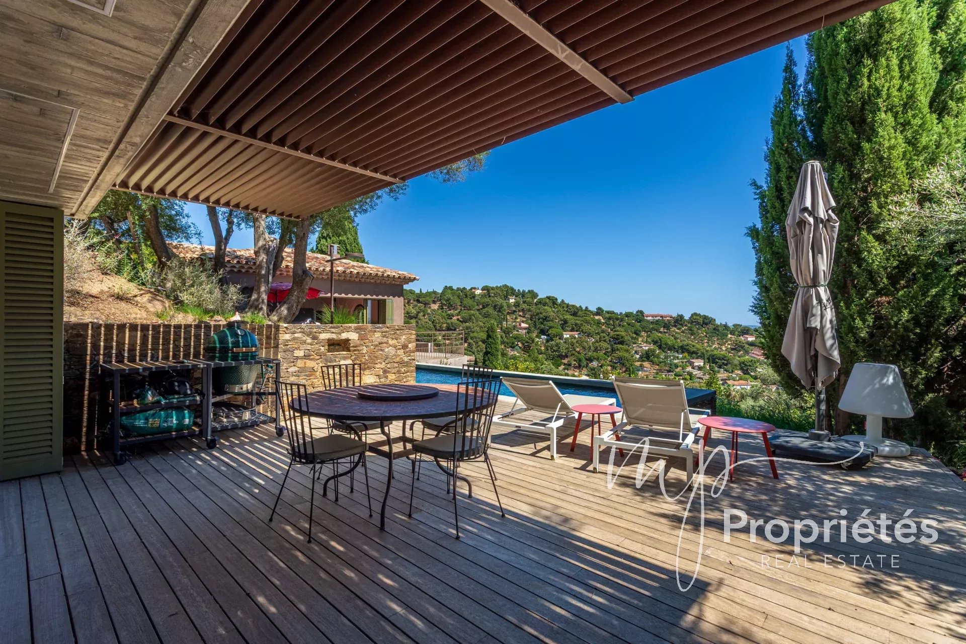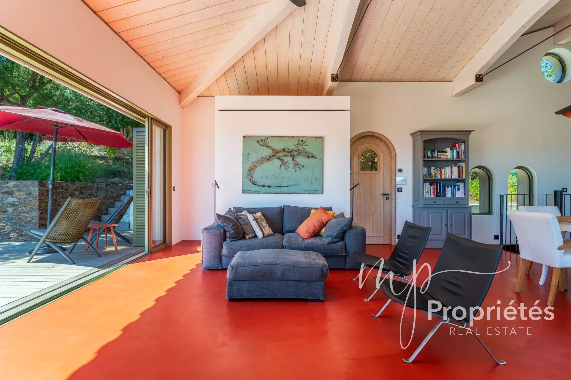A vendre BORMES LES MIMOSAS-À quelques pas du pittoresque village médiéval de Bormes-les-Mimosas, cette villa entièrement rénovée de offrant une vue imprenable sur la mer, combine élégance et confort édifiée sur un terrain de 1500m² environs.