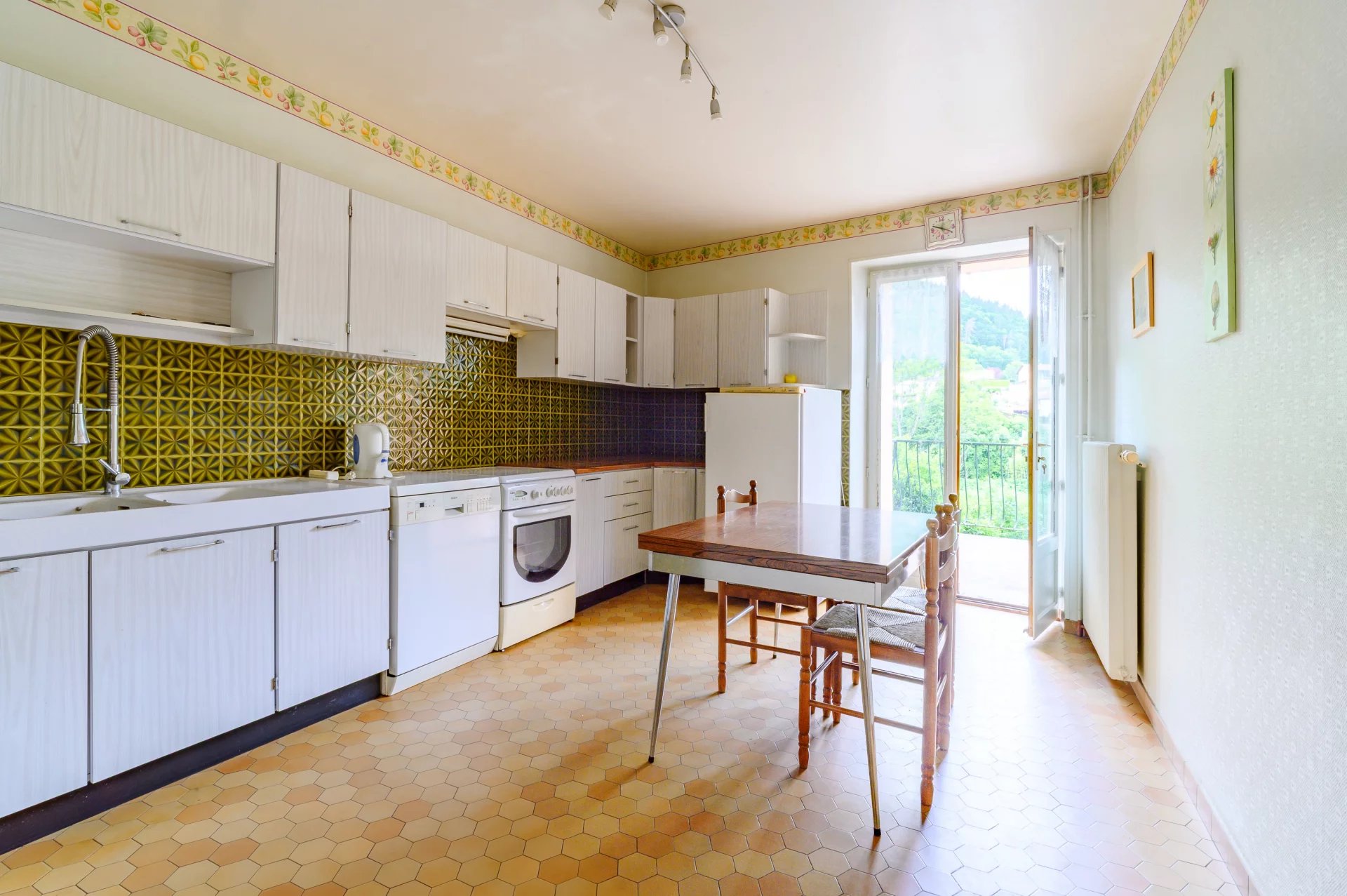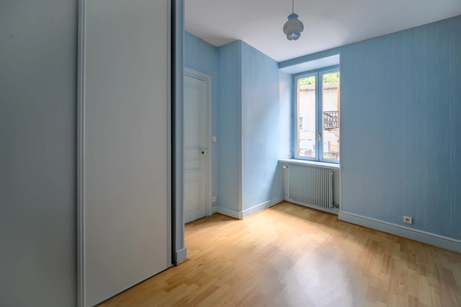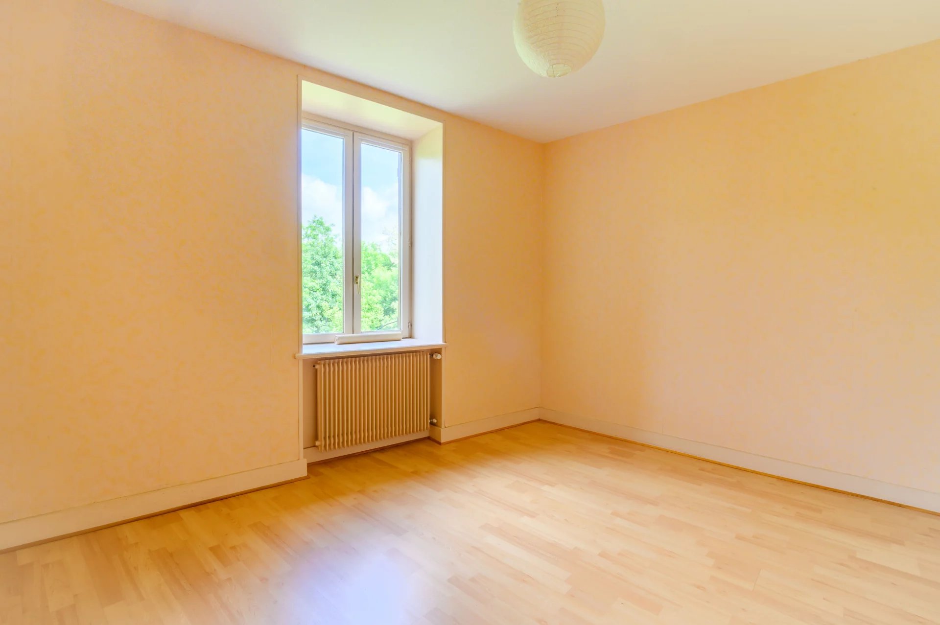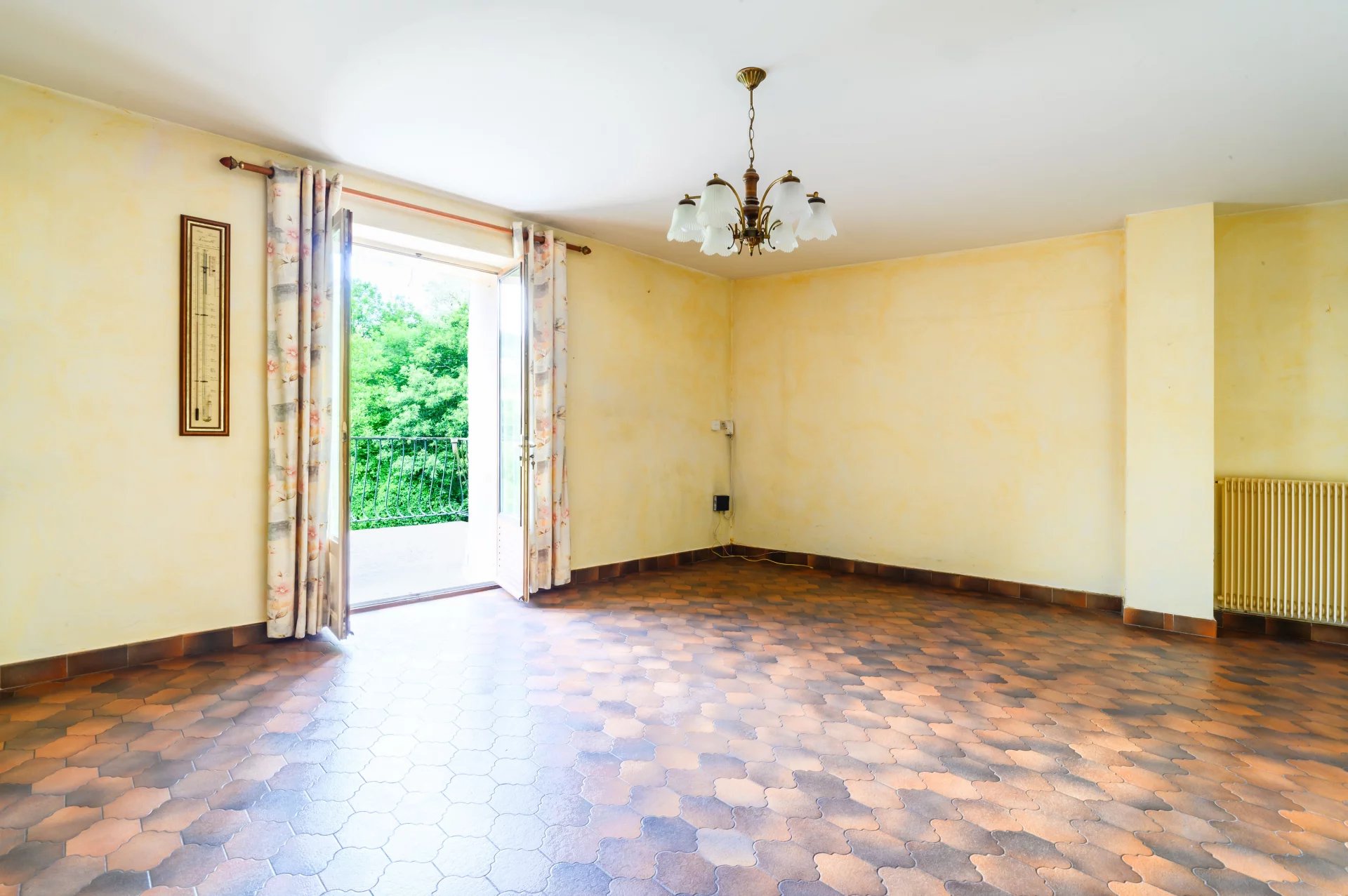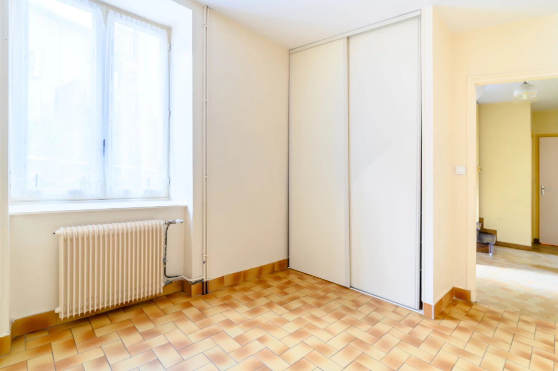 Une grande pièce de vie lumineuse avec sa cuisine séparée, une chambre, une salle de bain à moderniser ainsi qu'un WC indépendant.