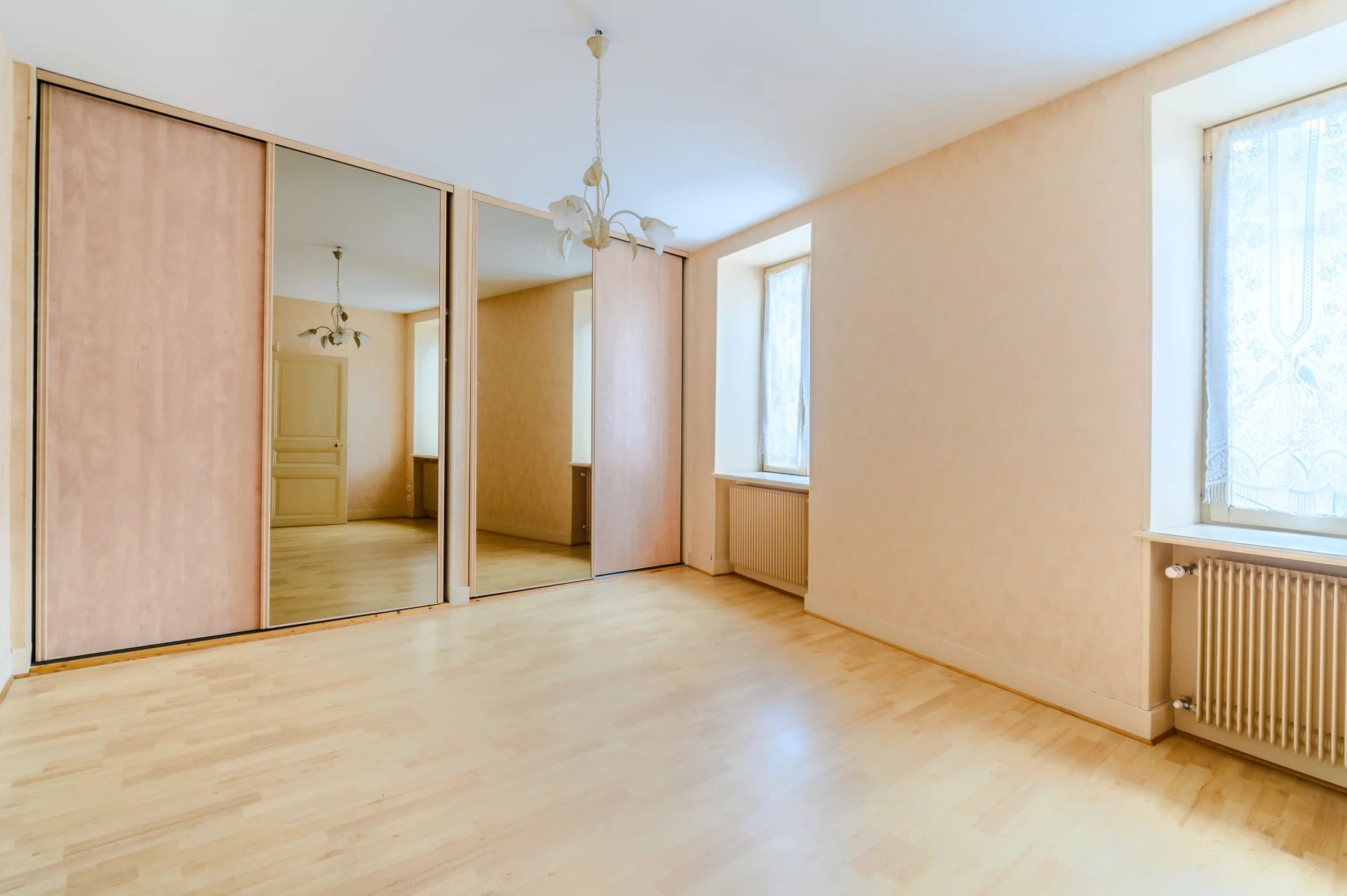 Trois chambres dont deux très spacieuses avec placards intégrés.