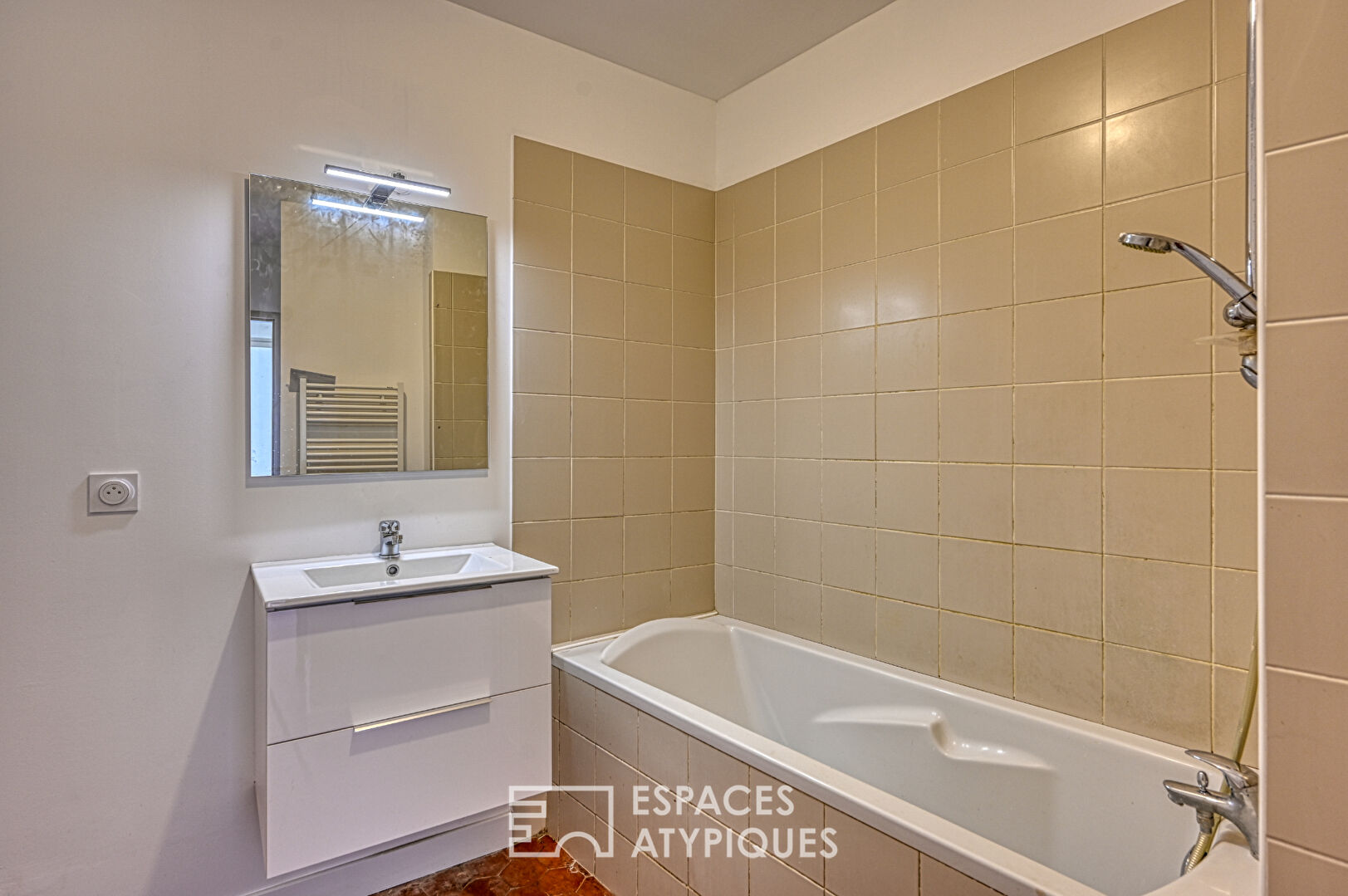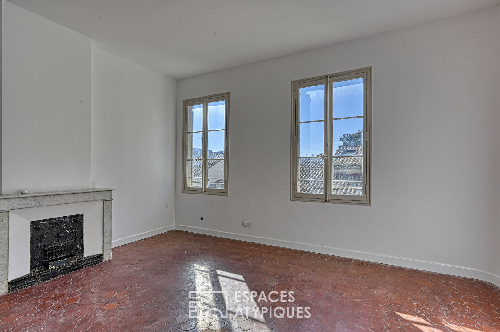 A quelques pas des Halles d'Avignon, ce bel appartement avec terrasse d'une superficie totale de 94m² dont 79,68m2 loi carrez se niche au troisième et dernier étage d'une petite copropriété de caractère, soigneusement rénovée pour préserver l'authenticité du lieu. Dès l'entrée, la luminosité traversante de la pièce de vie, baignée de lumière naturelle séduit. Elle donne accès à une belle terrasse de 8,24m², véritable havre de paix à l'abri des regards. La hauteur sous plafond et les matériaux d'époque apportent au lieu une élégance intemporelle, idéale pour créer un intérieur chaleureux et accueillant. L'appartement offre également deux vastes chambres revêtues de tomettes anciennes, une salle de bain et un WC indépendant . A l'étage, une mezzanine polyvalente pourra aisément se transformer en bureau et une troisième chambre prend place sous les combles. Ce bien rare en coeur de ville saura ravir les amateurs d'authenticité et de tranquillité. Parfait pour les citadins en quête de lumière et de sérénité, il conjugue le charme de l'ancien et le confort moderne pour un cadre de vie privilégié. Appartement en copropriété de 8 lots d'habitation. Quote part des charges annuelles : 1740 euros CLASSE ÉNERGIE : E / CLASSE CLIMAT : B Montant moyen estimé des dépenses annuelles d'énergie pour un usage standard, établi à partir des prix de l'énergie de l'année 2021, 2022, 2023 : Entre 1810 euros et 2520 euros Les informations sur les risques auxquels ce bien est exposé sont disponibles sur le site Géorisques : www.georisques.gouv.fr Copropriété de 9 lots - dont 9 lots habitation. Charges annuelles : 1743.76 euros. Sarah BARRE (EI) Agent Commercial - Numéro RSAC : 803 866 342 Avignon - Avignon.