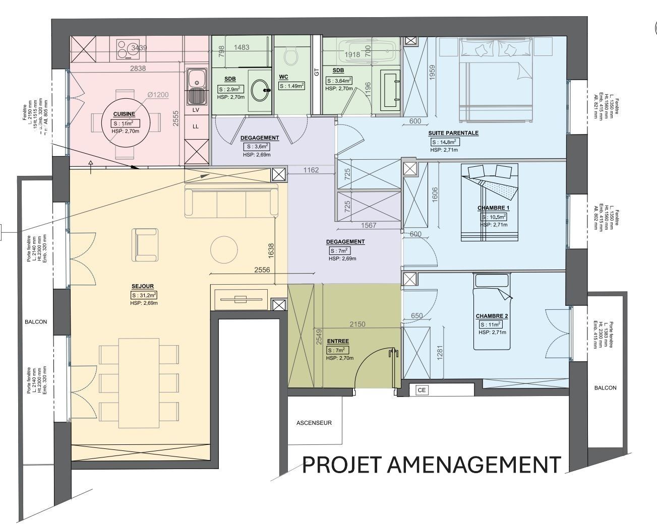 Situé rue Montgolfier en plein coeur du 6ème, il est à 2 min à pied du parc de la tête d'or, à proximité des commerces et transports et à 5 min à pied du lycée du Parc. Au 4ème étage avec ascenseur dans un immeuble de 1968 avec gardien Chauffage collectif 2 balcons - 1 cave DPE F Charges 350 euros mensuel chauffage inclus Pour visiter, merci de contacter Guillaume CORDIER au 0663065750, REGIE LESCUYER et ASSOCIES, 0663065750, 11 Place Maréchal Lyautey 69006 LYON Note : une estimation financière du projet présenté déjà réalisée. Pour exemple projet de rénovation totale Vues non contractuelles d'une proposition d'aménagement avec 3 chambres; visuels3D + Plan (3D)