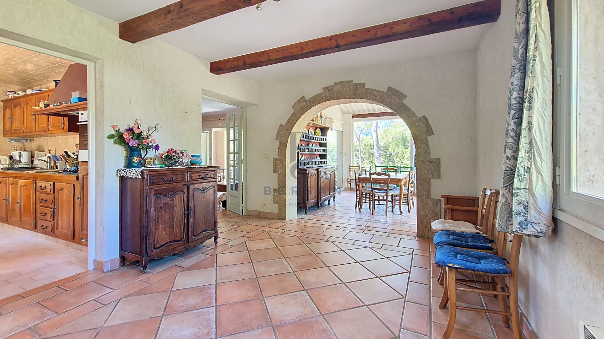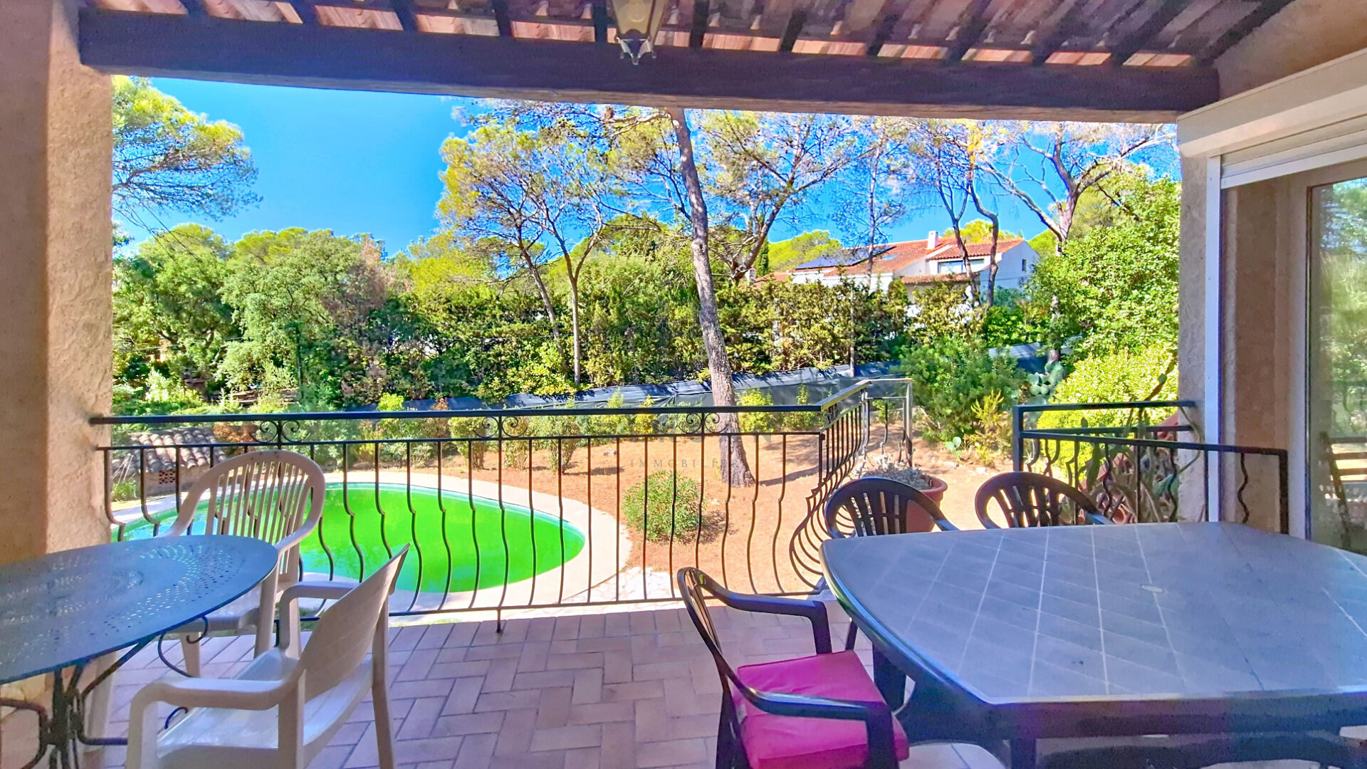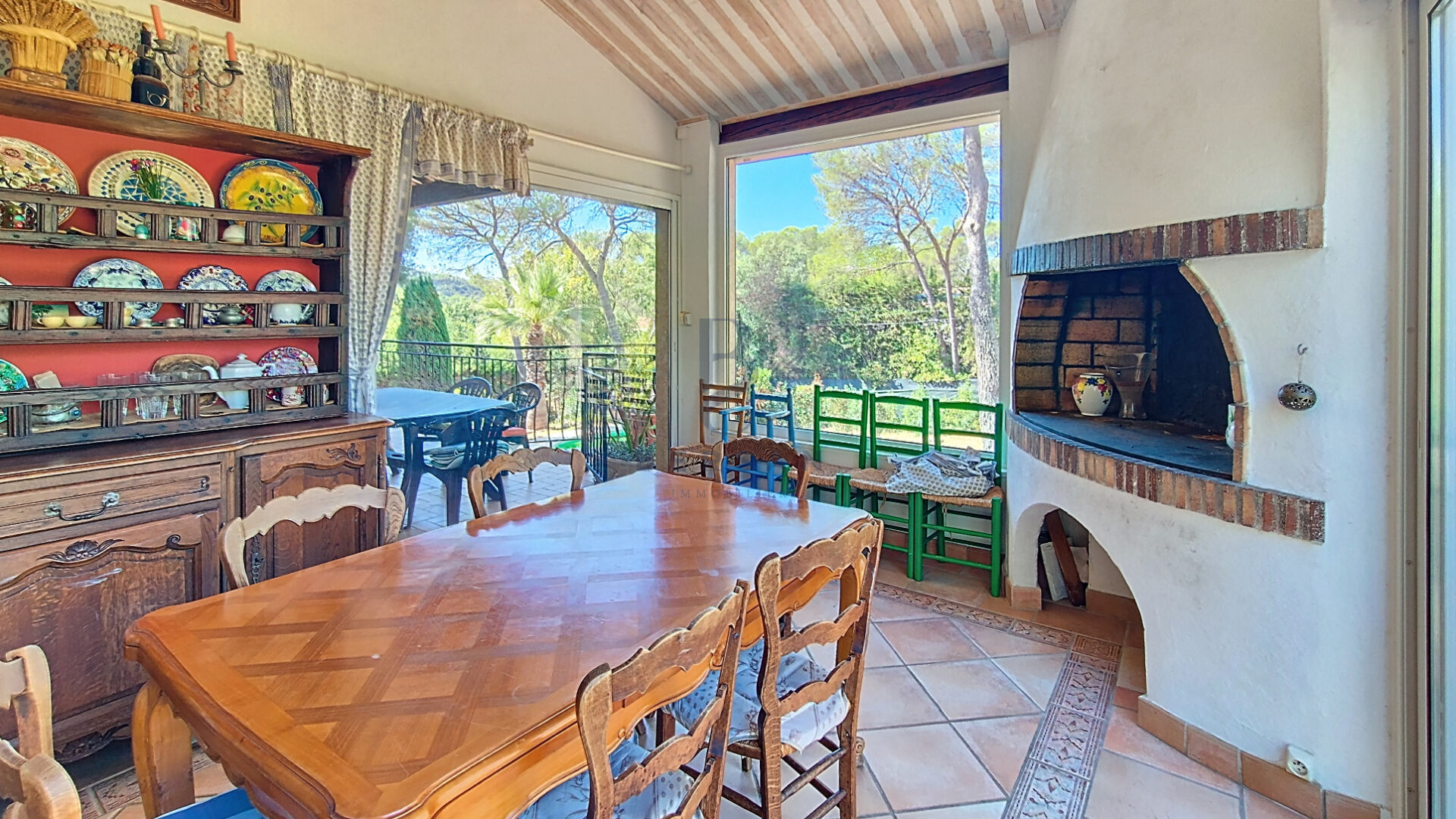 Votre agence BERSAN Immobilier vous propose en EXCLUSIVITÉ cette villa située dans le quartier résidentiel de Valescure, proche des golfs, commerces et plages, offrant de généreux espaces, une belle luminosité et un environnement paisible. Dès l'entrée, le rez-de-chaussée accueille un vaste séjour avec cheminée, prolongé par la salle à manger, tous deux reliés à une agréable terrasse couverte. La cuisine, équipée et fonctionnelle, bénéficie également d'un accès direct à une seconde terrasse, créant un espace supplémentaire pour profiter des beaux jours. Trois chambres de plain-pied, une salle de bains et deux toilettes indépendants complètent ce niveau. A l'étage, trois pièces supplémentaires offrent de multiples possibilités d'aménagement, l'une disposant d'un solarium avec vue dégagée sur la végétation environnante. Le rez-de-jardin communique naturellement avec le reste de la maison et peut, selon vos besoins, devenir un espace indépendant. Il comprend deux chambres donnant sur l'extérieur, deux salles d'eau, une buanderie et une grande pièce pouvant se transformer en salle de jeux ou double séjour. A l'extérieur, profitez d'un terrain arboré de plus de 1 800 m², agrémenté d'une piscine et de plusieurs coins détente dans un calme absolu. Un grand garage ainsi qu'un atelier viennent parfaire les prestations de cette villa familiale. Parmi ses nombreux atouts : un quartier recherché, une surface habitable rare sur le secteur, un environnement résidentiel paisible et un potentiel d'aménagement permettant notamment de créer deux appartements distincts. Un bien à découvrir sans tarder. L'équipe BERSAN Immobilier reste à votre disposition pour toute information complémentaire ou pour organiser une visite. Une visite virtuelle ?Live' est disponible sur demande. Honoraires à la charge du vendeur