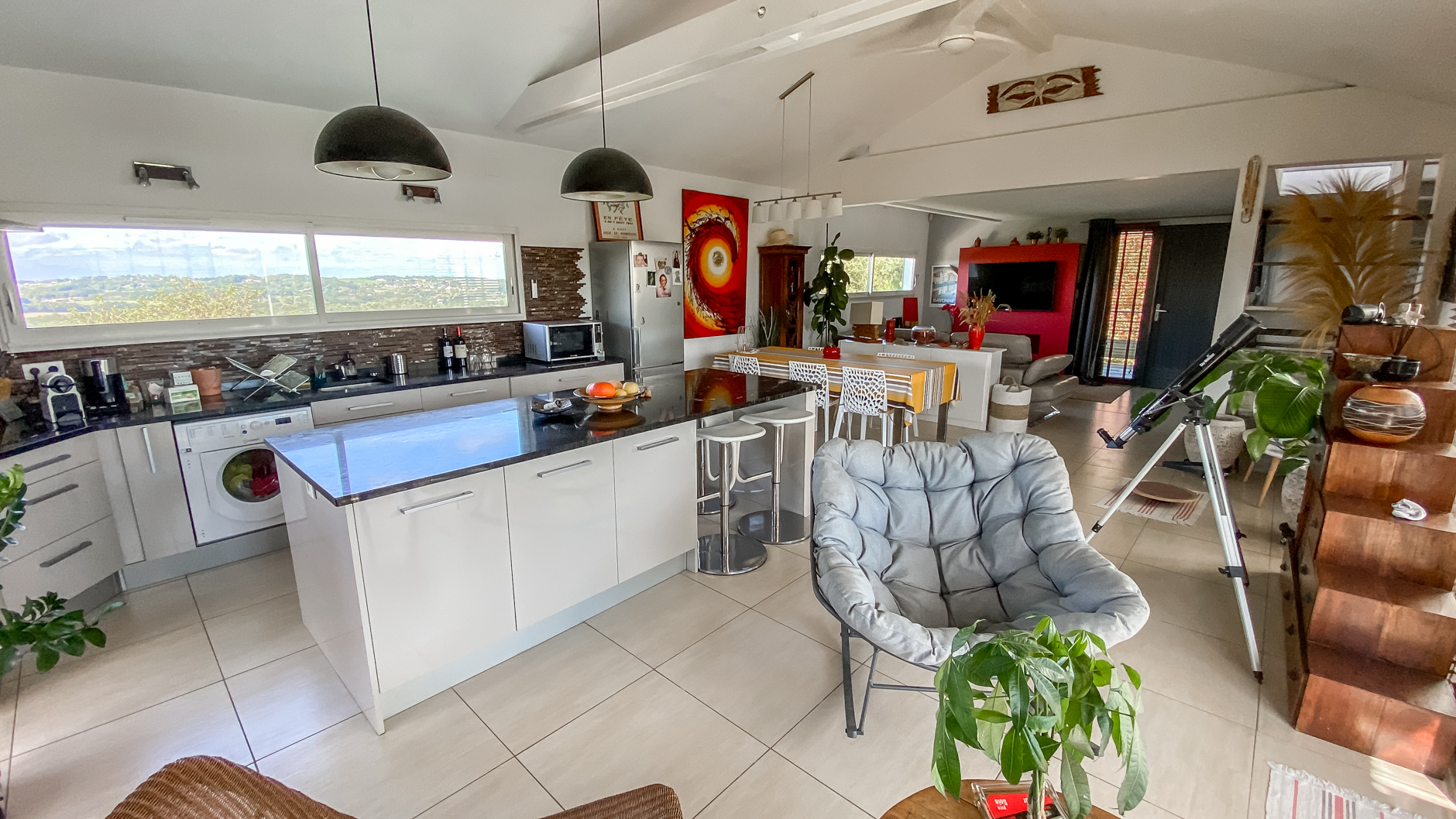 EXCLUSIVITÉ - VILLA CALIFORNIENNE A MOUGUERRE. A seulement 10 minutes de l'entrée de Bayonne et de ses commerces, sur les hauteurs de Mouguerre, profitez d'une vue dominante sur les vallées alentour. Villa de style "californien" et éco-responsable construite en 2008, offrant 147 m² habitables et des prestations de qualité. Pour la partie habitable de la maison, pour 122 m² habitable sur deux niveaux. - Espace de vie : Superbe pièce à vivre lumineuse de plus de 62 m² exposée plein sud Cuisine américaine entièrement équipée Suite parentale avec dressing et WC séparé - A l'étage : Deux chambres spacieuses Salle de bains + WC - Sous-sol et Extérieurs pour 54 m² : Garage de 29 m² Appartement indépendant d'environ 25 m² avec un petit extérieur, idéal pour un revenu locatif complémentaire ou pour loger quelqu'un de votre famille. Parcelle de 1 170 m² avec coin piscine à l'abri des regards et vue sur les montagnes. - Équipements modernes et de confort : Maison ossature bois Panneaux solaires et pompe à chaleur air/eau Borne de recharge électrique Piscine chauffée 10 X 4 mètres. Honoraires à la charge de l'acquéreur de 2,70%. DPE incroyable en B et en A. Vidéos disponibles sur simple appel! Un cadre de vie exceptionnel, alliant confort et modernité pour cette villa éco-responsable. Contactez-nous pour une visite ! (2.70 % honoraires TTC à la charge de l'acquéreur.)
