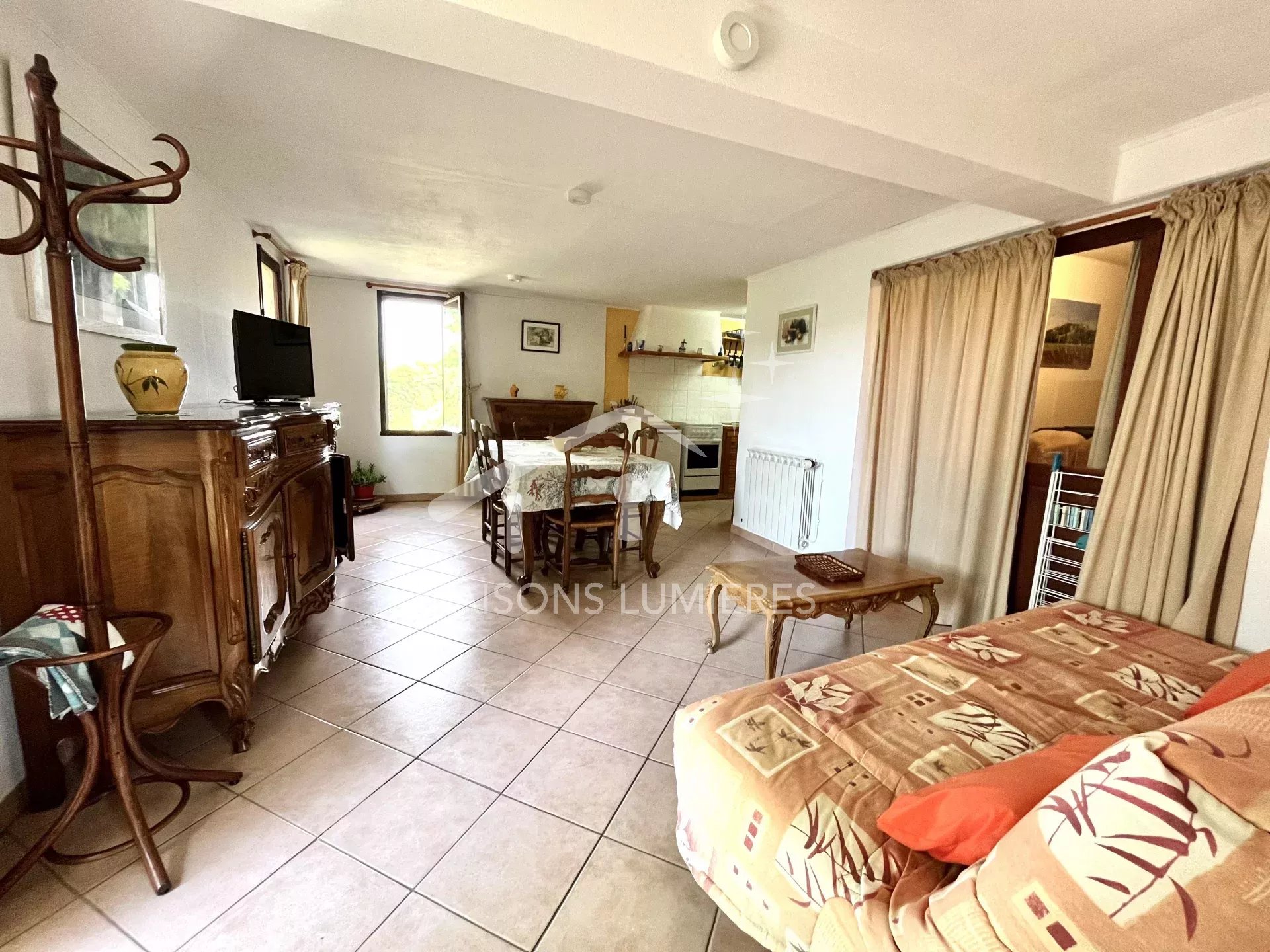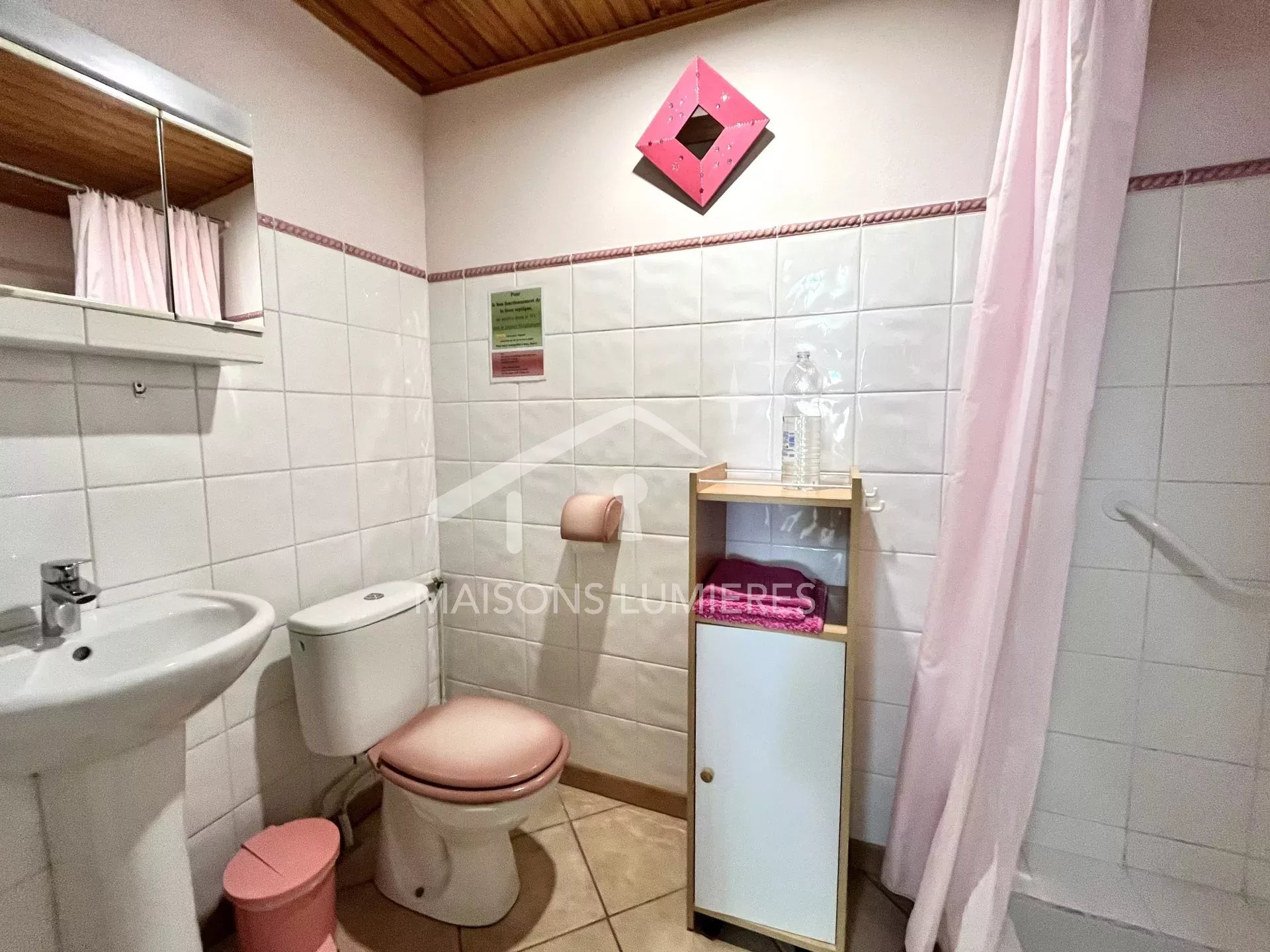 Une dépendance d'environ 40m² avec une pièce de vie ouverte sur un coin cuisine, une chambre ainsi qu'une salle d'eau avec WC. Cette partie de l'habitation étant actuellement proposée à la location saisonnière, elle est donc source de complément de revenus.