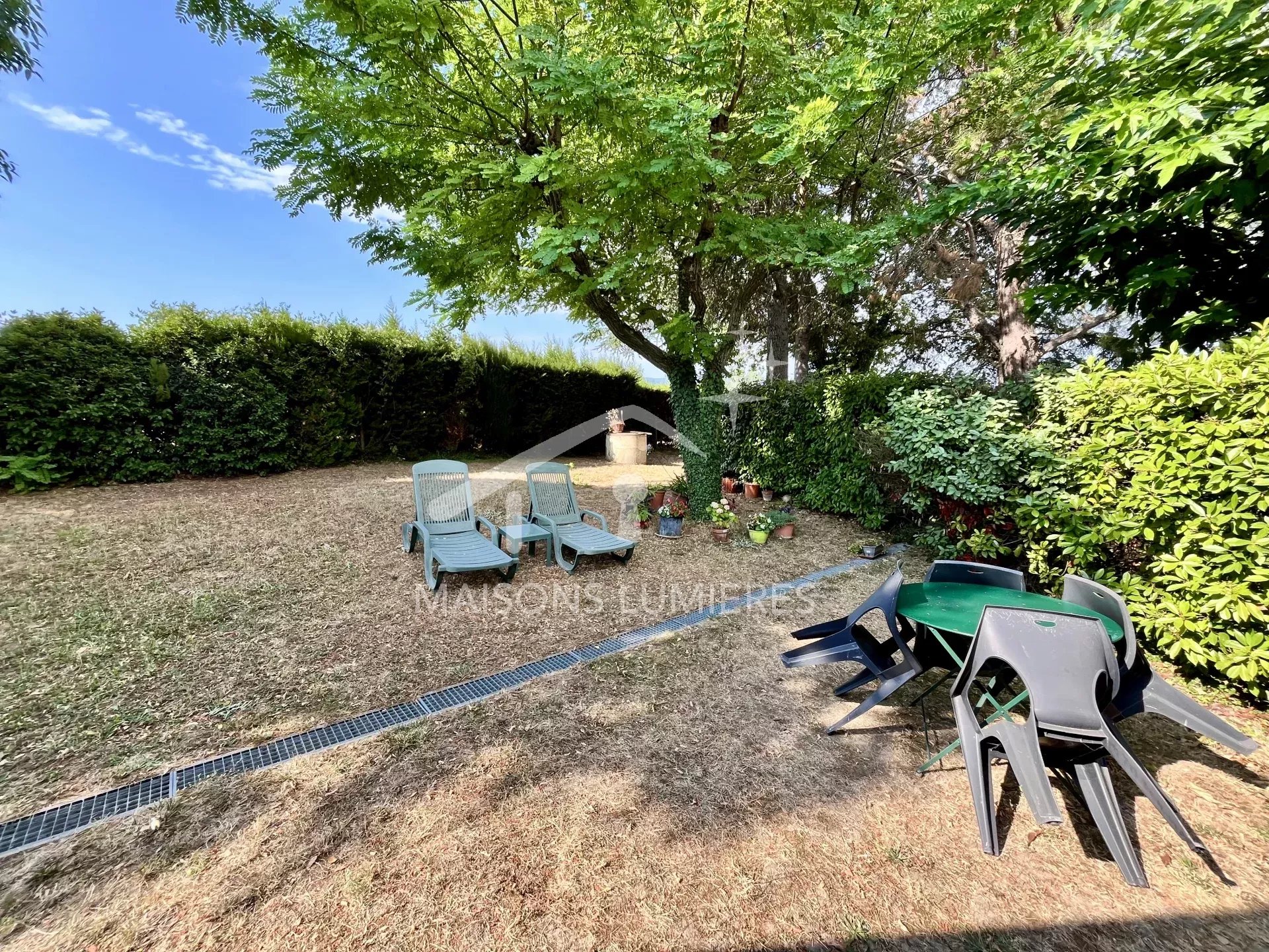 Un agréable jardin arboré et bordé d'une haie vous séduira par sa simplicité d'entretien, ainsi qu'un abri voiture.