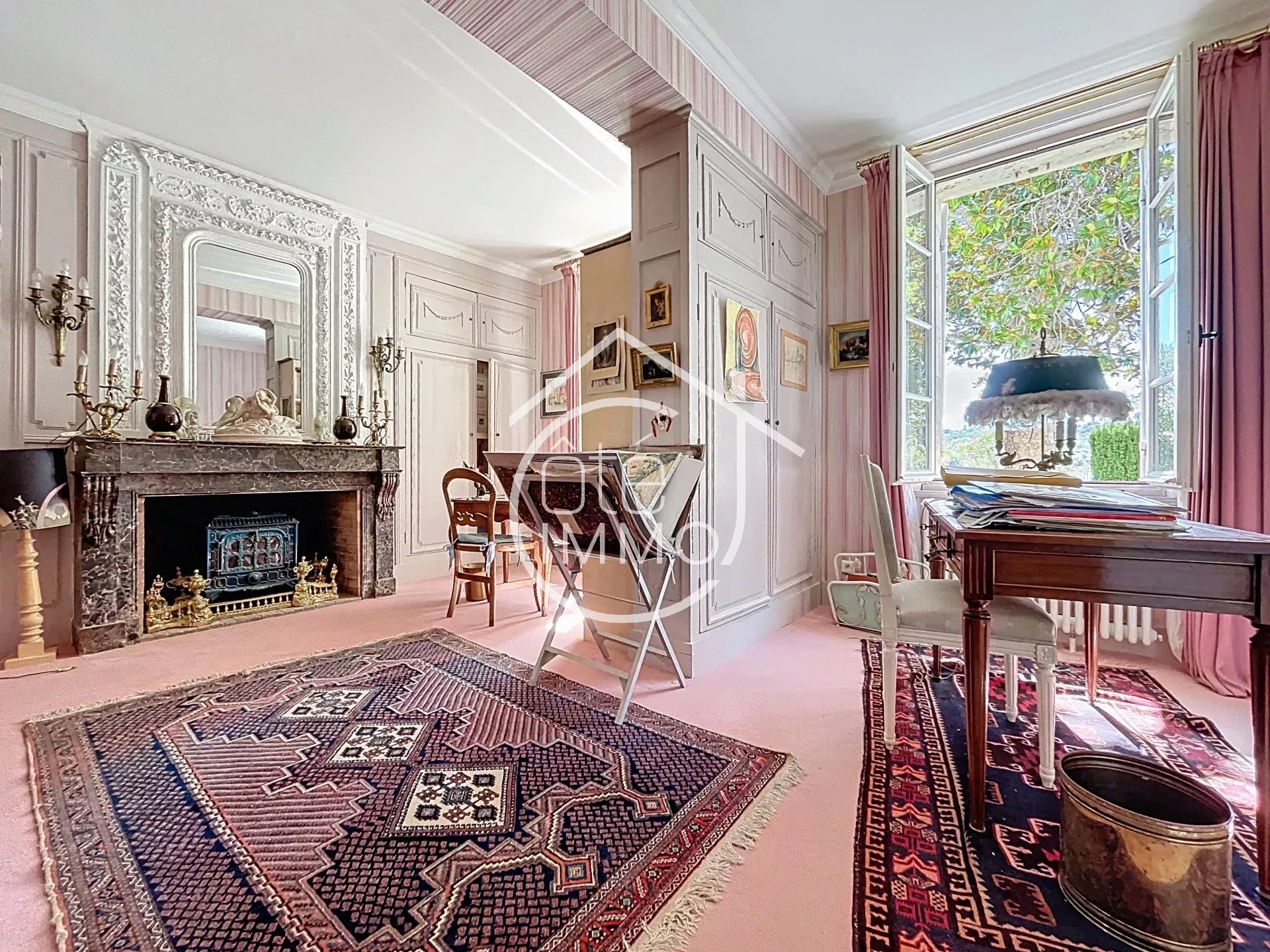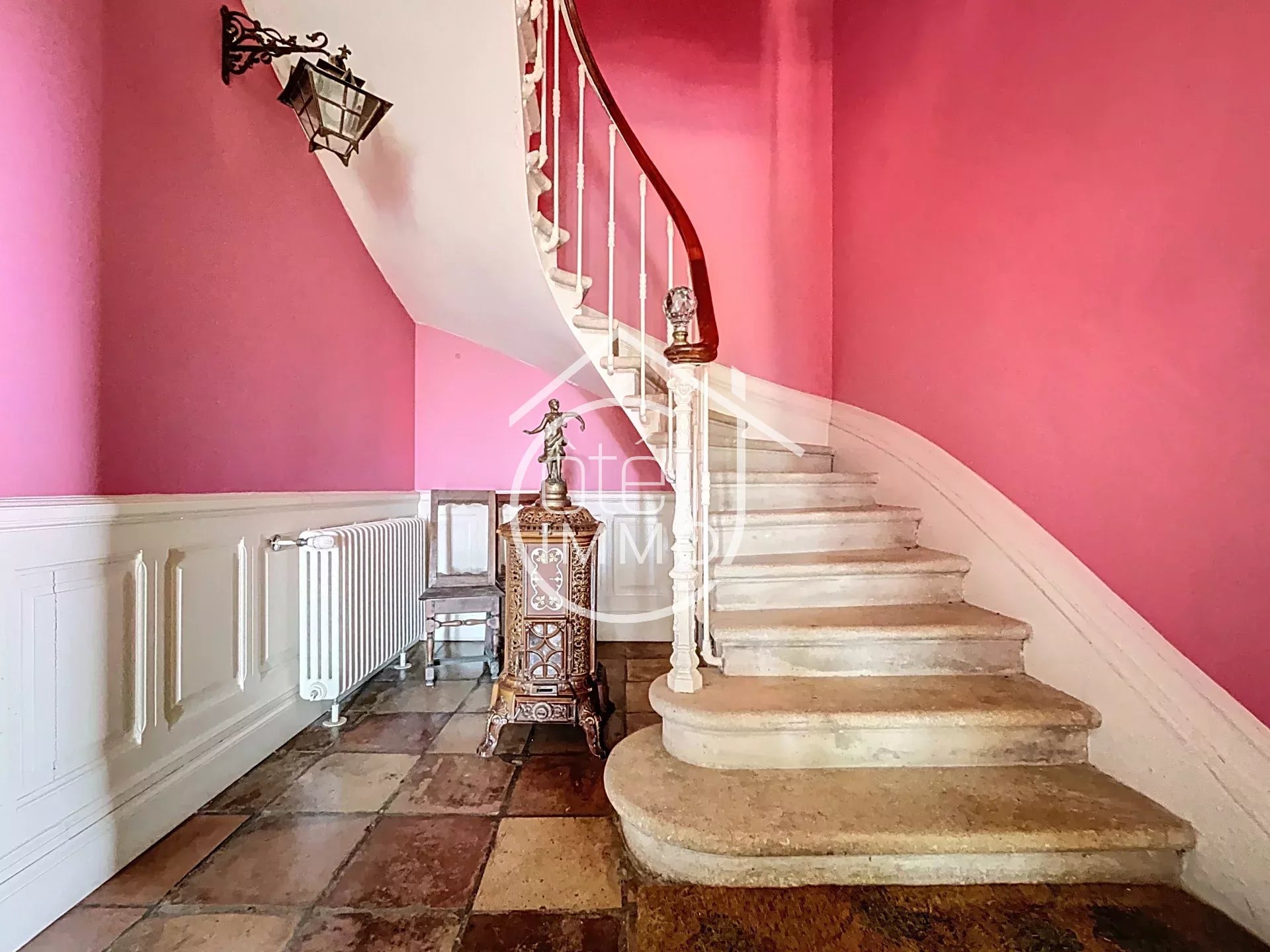 Dès l’entrée, le regard est attiré par un bel escalier ancien qui donne le ton de la visite. On découvre ensuite un séjour/salle à manger de 60 m², impressionnant par ses proportions et son atmosphère conviviale. De larges ouvertures mènent à une superbe véranda qui prolonge la pièce et s’ouvre sur un jardin d’hiver au charme romantique, animé par la présence d’un bassin. La cuisine, moderne et entièrement équipée, se prolonge par une arrière-cuisine fonctionnelle et un cellier/buanderie qui facilitent le quotidien. Une suite parentale avec sa salle de bain privée et une grande bibliothèque avec cheminée complètent le rez-de-chaussée.