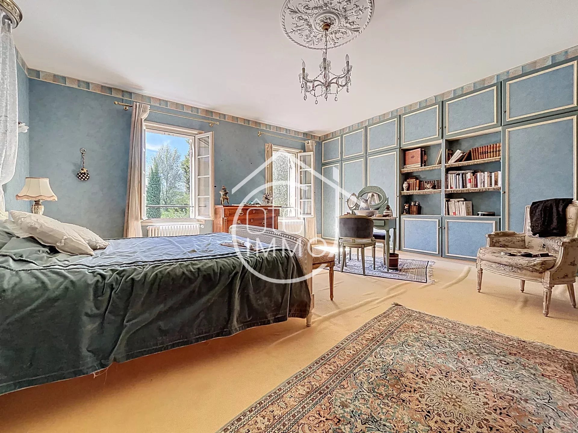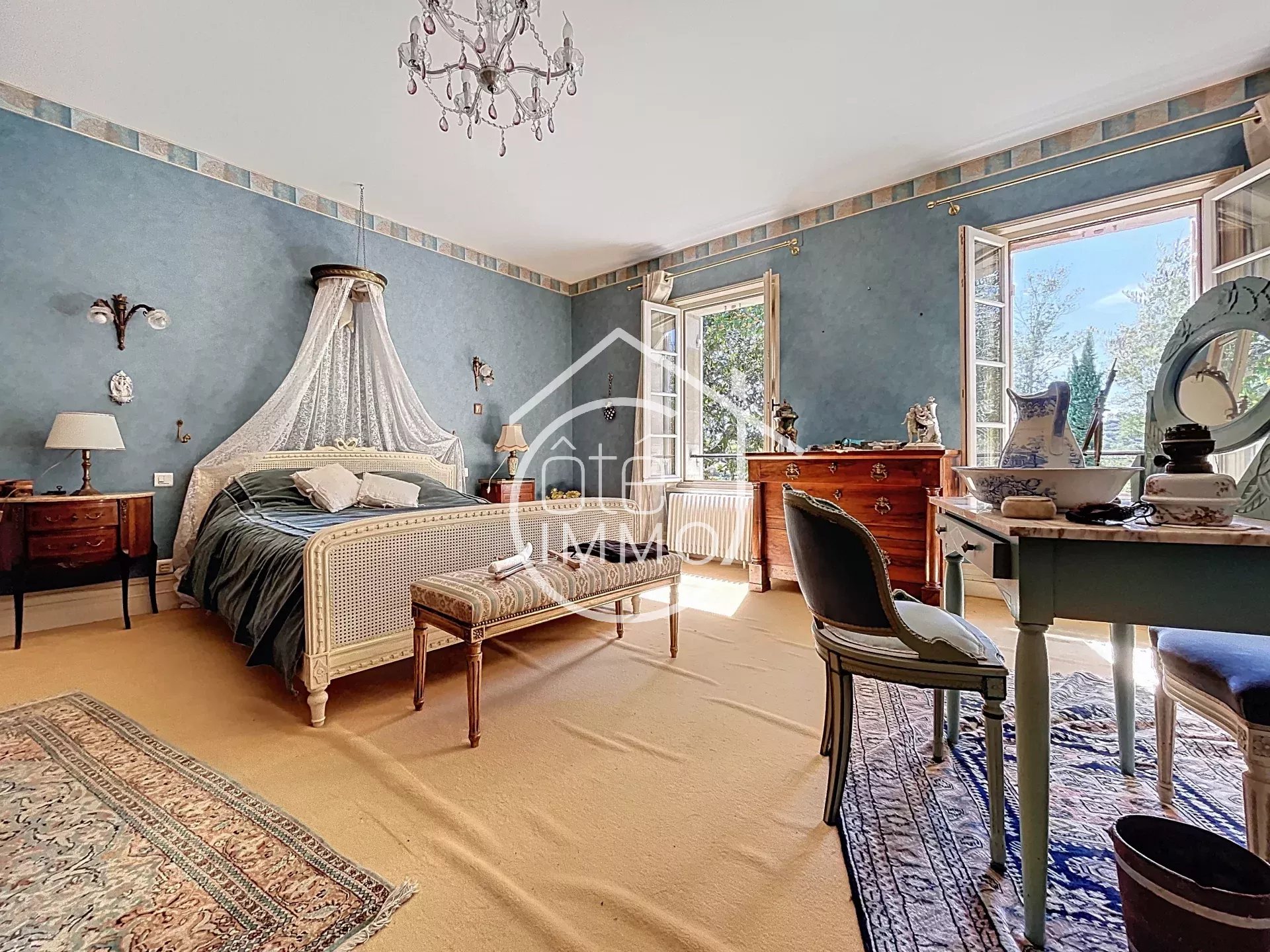 À l’étage, le palier dessert quatre chambres immenses, toutes dotées de rangements spacieux. Un espace bureau et une petite bibliothèque créent des lieux propices au travail et à la lecture, complétés par un grenier pour encore plus de potentiel. Le séjour ainsi que deux chambres à l'étage ont une vue imprenable sur la Dordogne et le parc arboré à l'avant de la bâtisse.