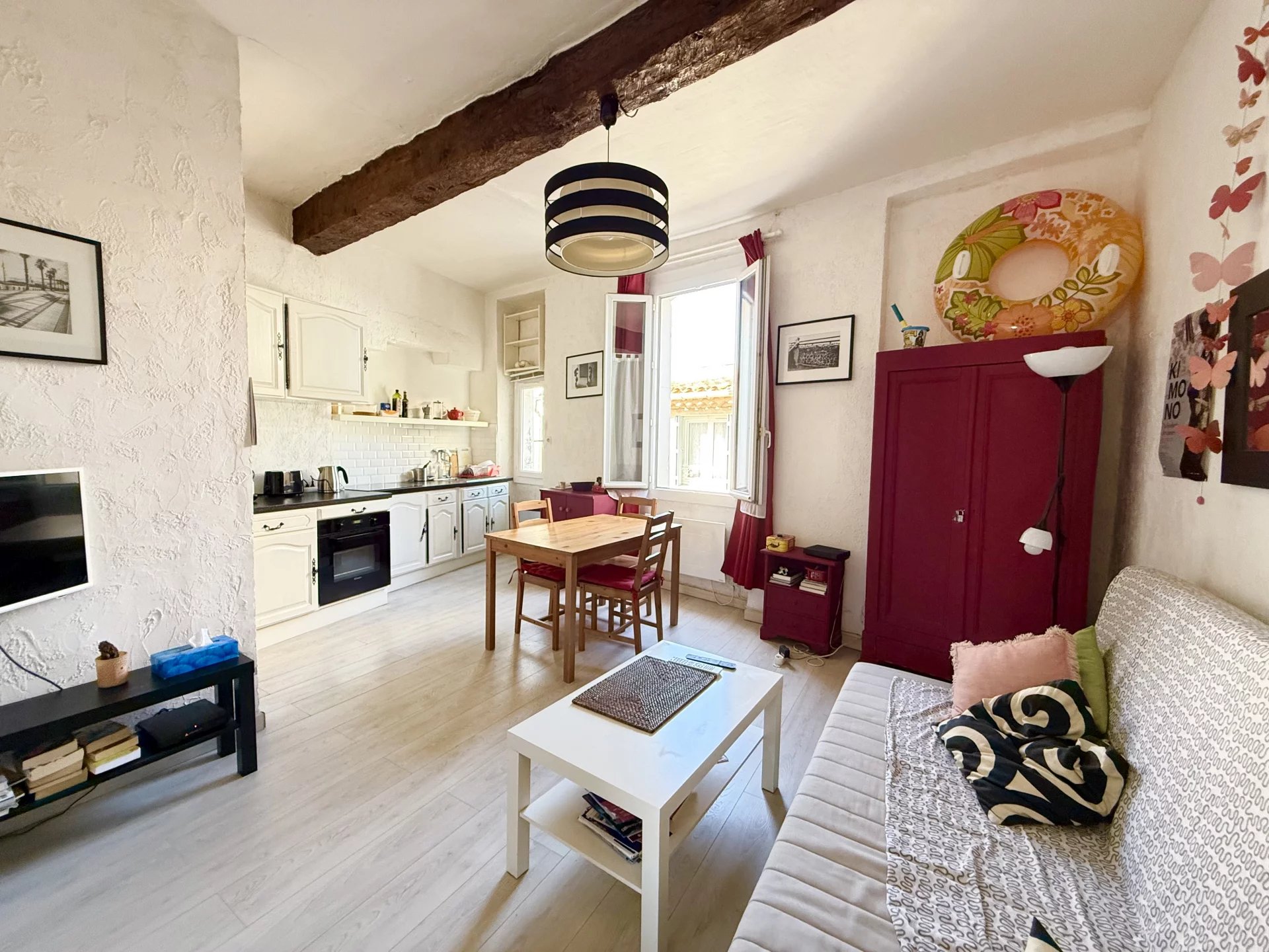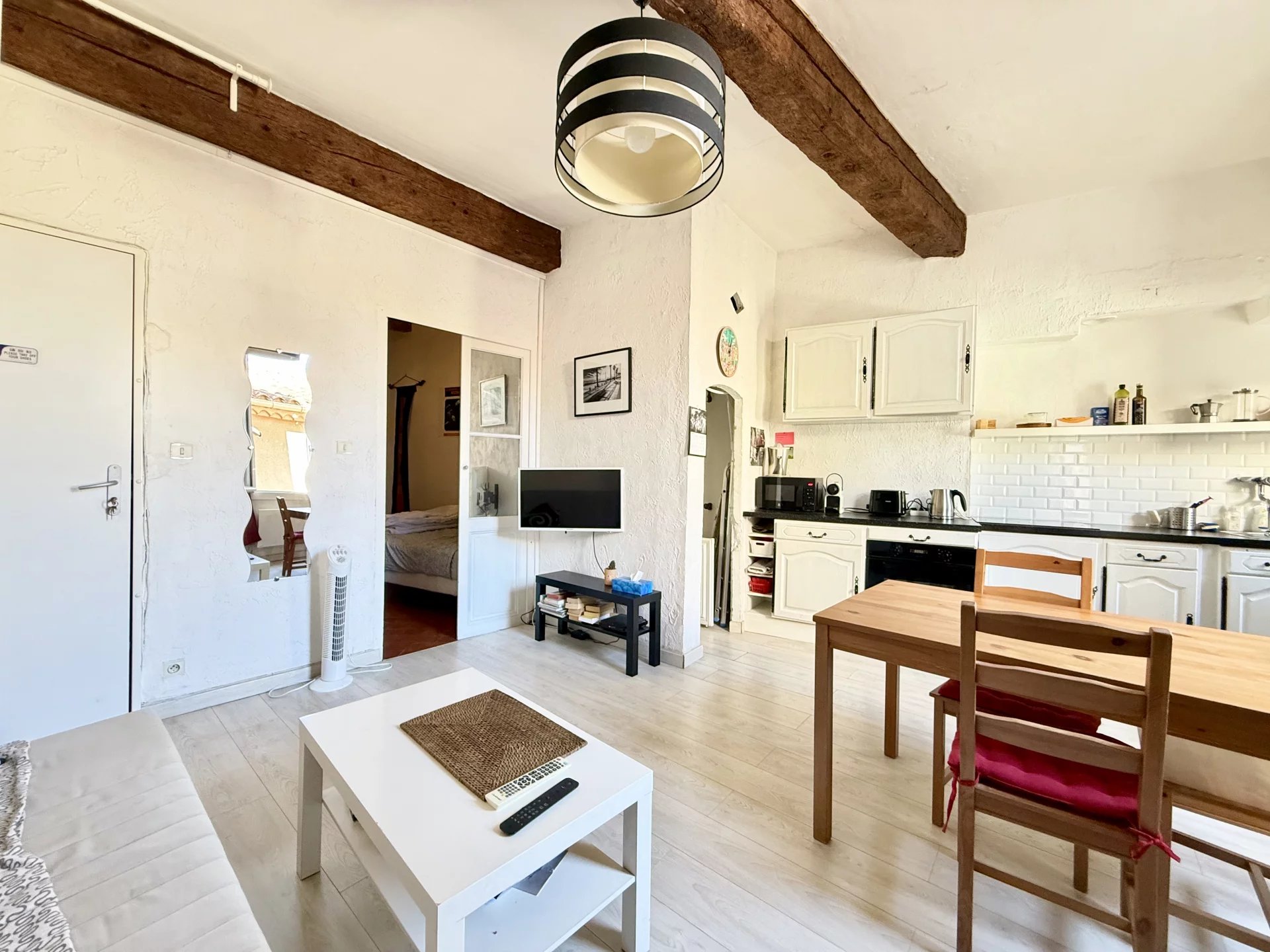 Composé d'une pièce principale spacieuse avec cuisine ouverte, il dispose également d'un espace nuit ou bureau, et d'une salle d'eau avec WC rénovée récemment.