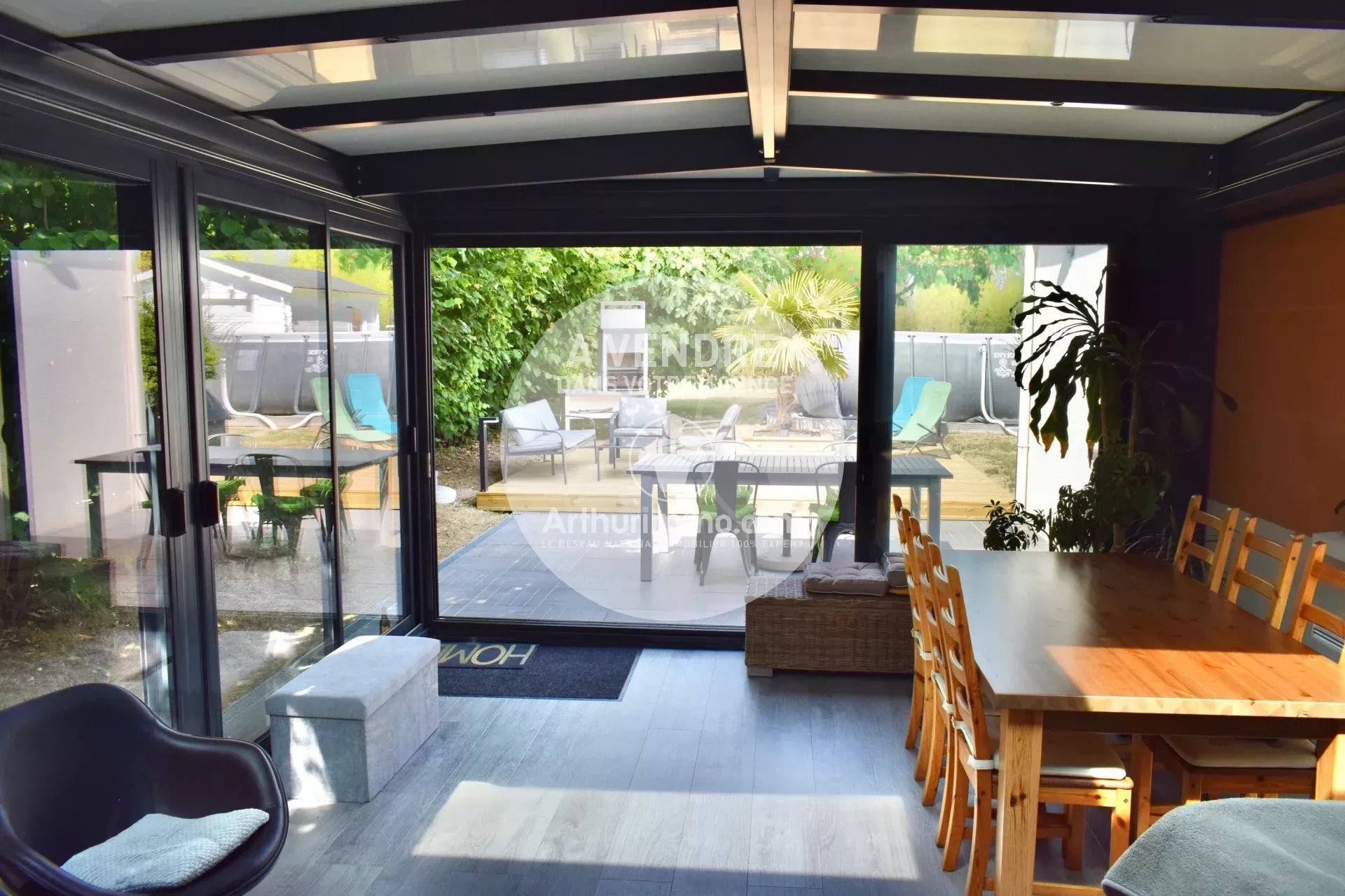 Sur une parcelle de 1083 m² dans un environnement calme et sans vis-à-vis, cette maison d’environ 125 m2 habitables est composée d’une entrée sur une grande pièce de vie lumineuse prolongée par une véranda chauffée donnant sur jardin et grande terrasse de plus de 40 m2. La cuisine ouverte est entièrement aménagée et équipée. Un couloir dessert le coin nuit composé de 3 chambres avec placards, 1 grand bureau, 1 salle de bain avec douche et baignoire et 1 WC séparé. Un garage isolé permet d’envisager divers aménagements, rendant cette maison évolutive si besoin.