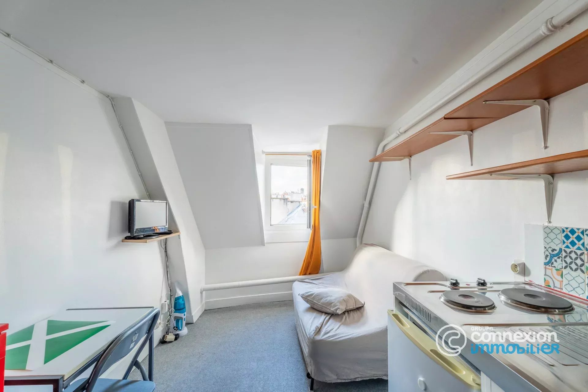 Votre Agence Connexion immobilier Trudaine vous propose, dans le 9ème arrondissement, dans la très recherchée rue de la Chaussée d'Antin, quartiers des bureaux et des grands magasins, dans un immeuble ancien, au 6ème et dernier étage par escalier, avec gardien Un studio 10m² au sol (8.50m² LC) comprenant une pièce avec kitchenette et douche. WC sur le palier. Parfait pour un pied à terre ou un investissement. A voir rapidement !