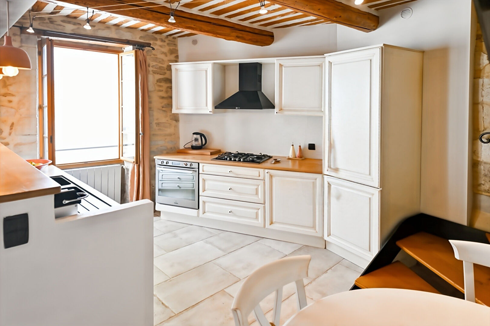 Avec ses murs en pierre apparente, son plafond à la française, ses poutres en bois et son sol en pierre, cette maison séduira sans aucun doute les amoureux de l'ancien. Au rez-de-chaussée, vous profitez d'un bel espace de vie convivial. A l'étage, deux chambres, une salle d'eau avec WC ainsi qu'un vaste pallier pouvant devenir un bureau ou un coin TV. Enfin, au dernier niveau, la suite parentale s'ouvre sur un superbe toit-terrasse sans aucun vis-à-vis. Un garage ainsi qu'une buanderie complètent ce bien rare, idéalement situé en plein coeur du village, avec des parkings gratuits à proximité immédiate. Lien vidéo disponible